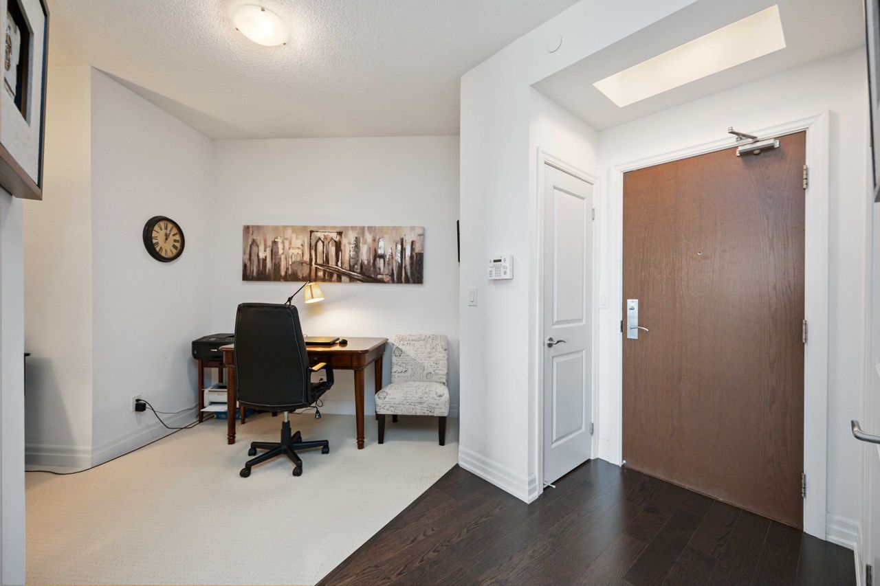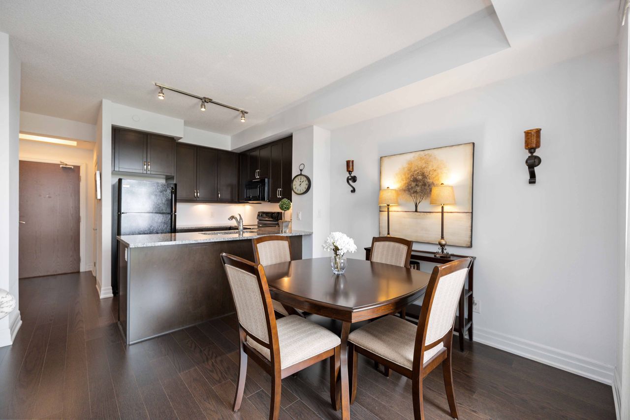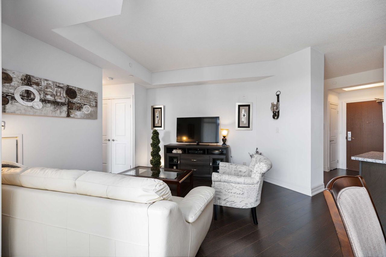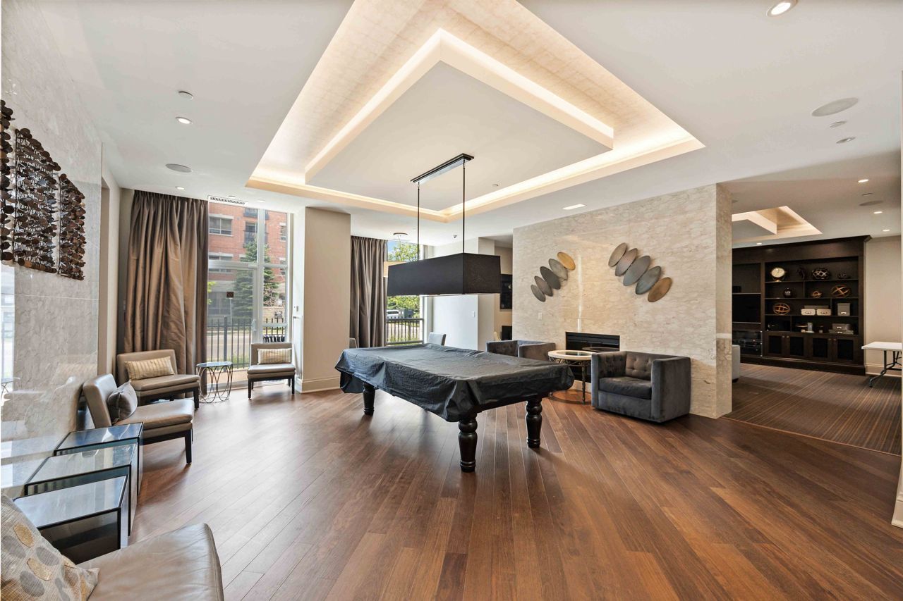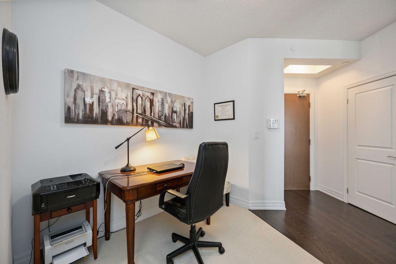 Welcome to the sought-after Ridgewood 2 Condos! Discover this beautiful, light-filled 1-bedroom plus den unit, complete with granite countertops and engineered hardwood floors. Enjoy the benefit of tandem parking for 2 cars and a large north-east facing balcony with unobstructed views. The unit boasts a spacious layout with room for a dining table and features 9-foot high ceilings. The desirable building, set next to a park, offers resort-like amenities such as an outdoor saltwater pool, fitness centre, party room, theatre, Guest suites, BBQ area, Concierge, bike storage, garden plot and a pet spa! Ideally located, it's just a short walk to stores, banks, a movie theatre, restaurants, and transportation including Aurora Go Station. Easy access to Hwy 404 is an added bonus. The unit comes with a conveniently located parking spot near the elevator and a full storage locker.Includes all appliances: Fridge, Stove, Dishwasher, Washer/Dryer. All Light Fixtures. All Window Coverings. Also Includes all Furniture and Finishings (Please see Schedule of Included Items).