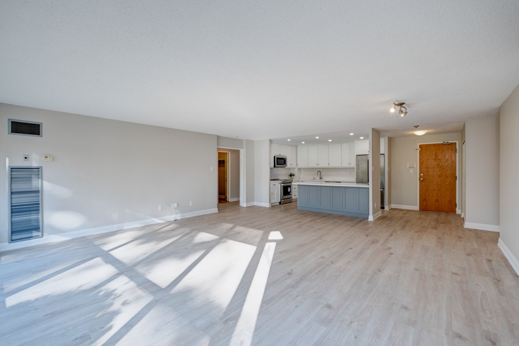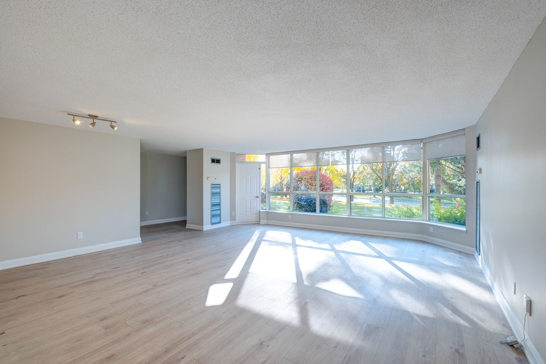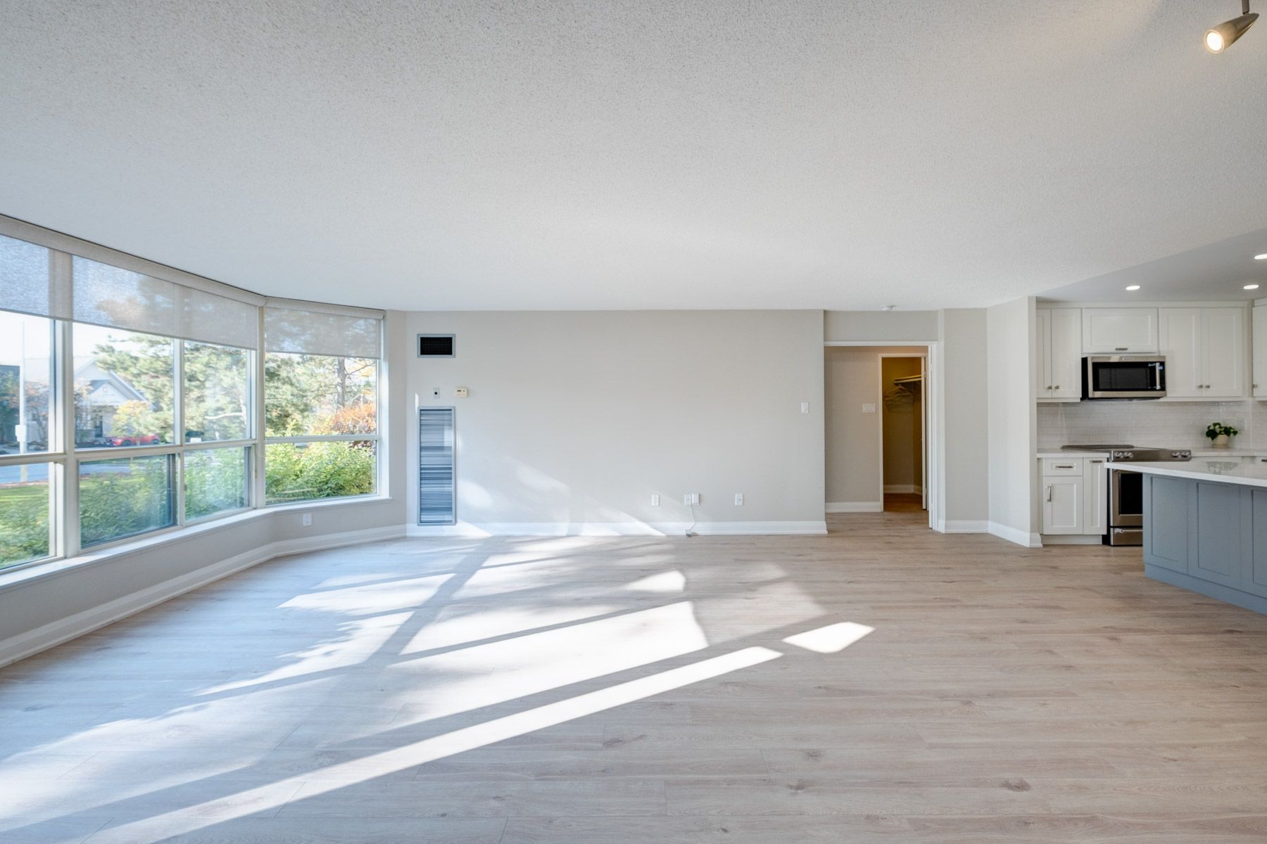 Welcome To This Bright And Spacious Newly Renovated Condo Nestled At The Prestigious “Highland Green Building” In The Heart Of Downtown Aurora. This Rarely Offered Over 1,200 Sq Ft 1+1 Bedroom Unit With A Private Walk-Out Boasts A Host Of Recent Upgrades. The Open-Concept Kitchen Exudes Elegance With Its Timeless White Cabinetry, Quartz Countertops, White Subway Tile Backsplash, And Brand New Top-Of-The-Line Stainless Steel Appliances, Complemented By Ample Bar Seating At The Expansive Island. The Combined Living And Dining Area Offers New Flooring Throughout, Ample Natural Light Through Large Windows, And A Walk-Out To The Sizable, Private South-Facing Terrace Overlooking A Serene Greenspace. A Discreetly Positioned Den Serves As An Ideal Home Office Space. The Primary Bedroom Is Adorned With A Well-Appointed Walk-In Closet And A Luxurious Newly Renovated Ensuite. A Powder Room For The Convenience Of Guests And A Laundry Room Equipped With A Rare Full-Size Sink For Added Practicality.Within Walking Distance To Vibrant Downtown Aurora's Amenities, Including Charming Coffee Shops, Boutiques, Salons, & More. Concierge, Gym, Party Room, Library. 1 Parking Spot & 1 Oversized Storage Locker. All-Inclusive Maintenance Fee.