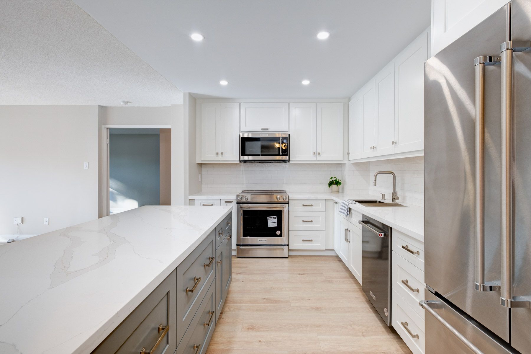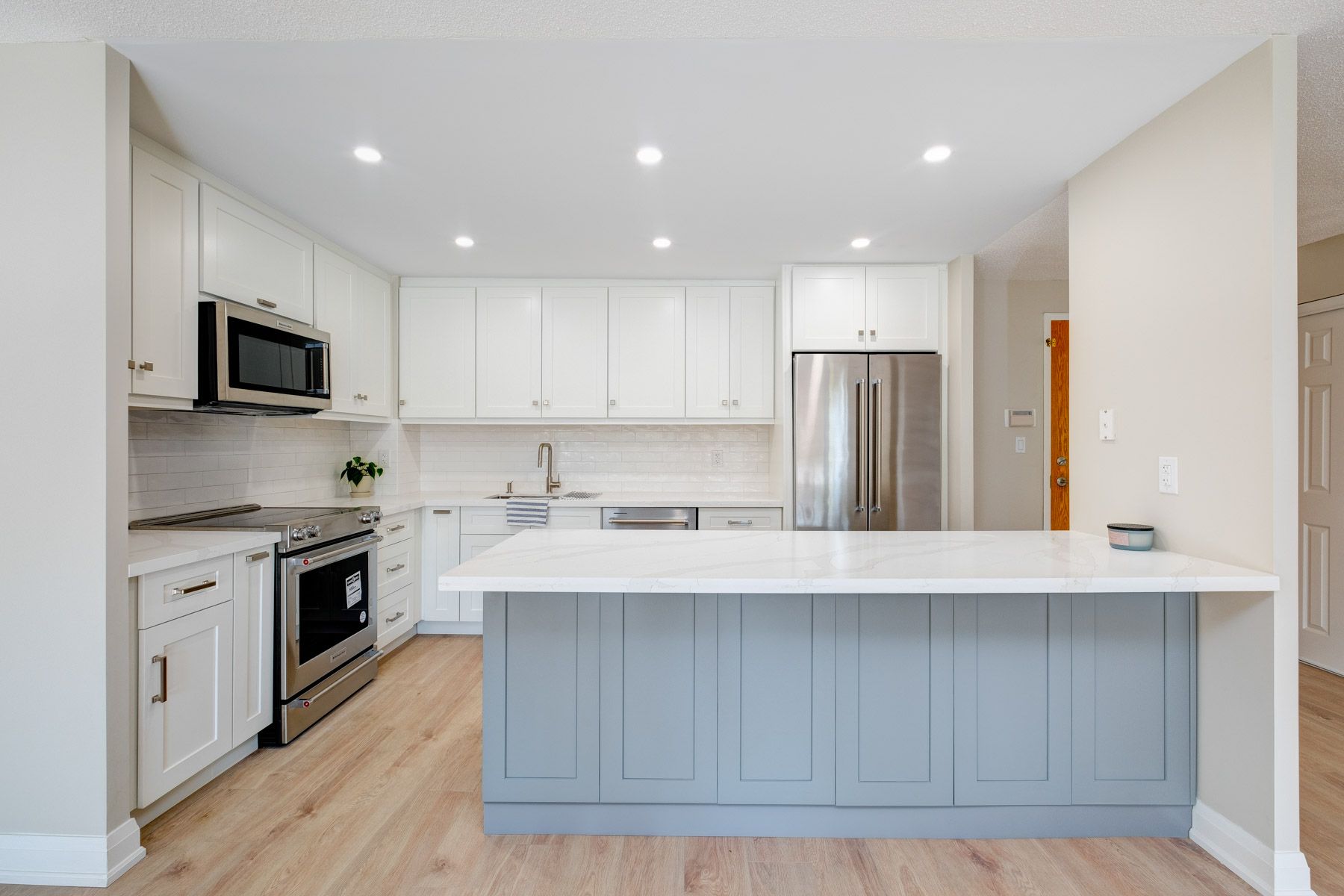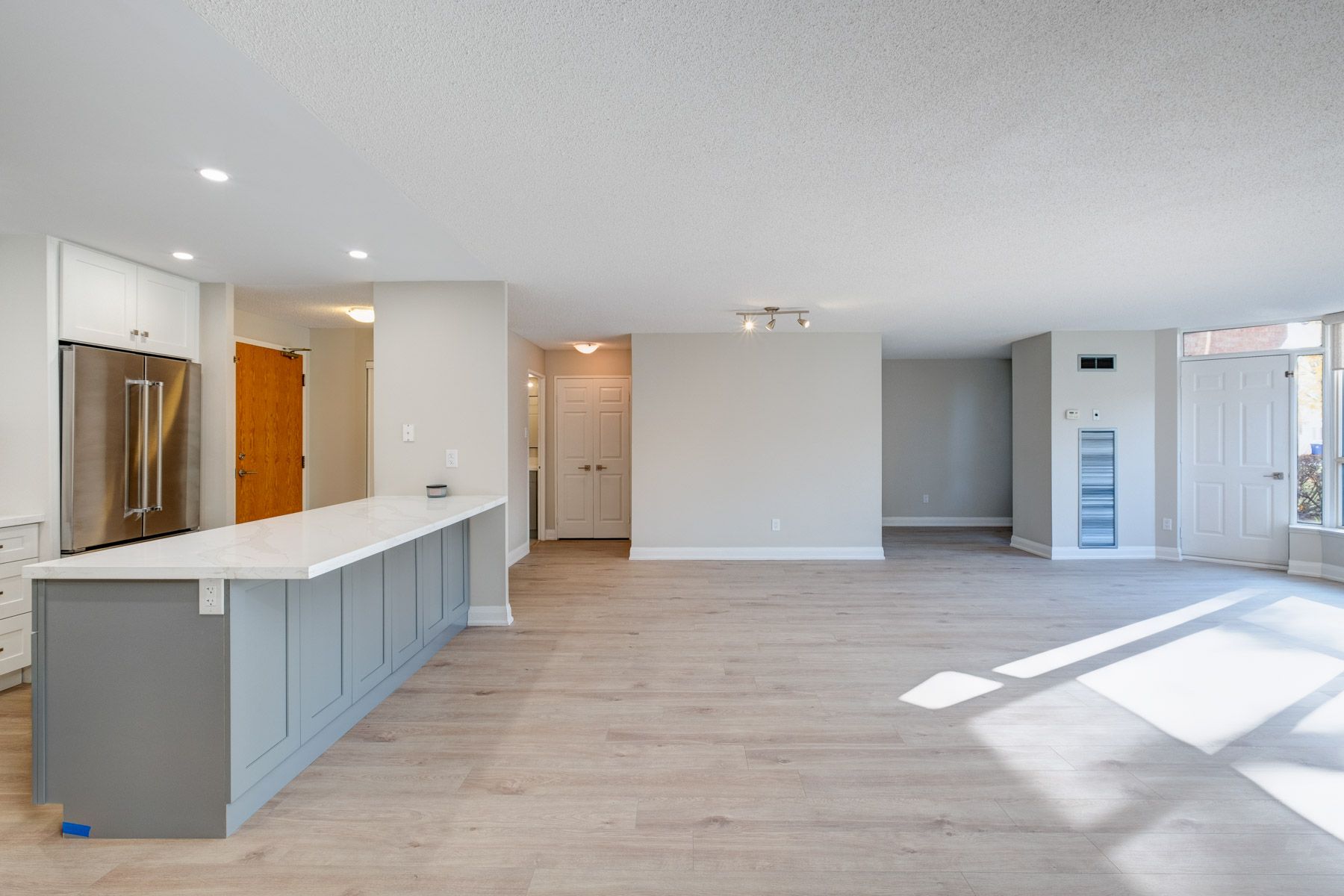 Welcome To This Bright And Spacious Newly Renovated Condo Nestled At The Prestigious “Highland Green Building” In The Heart Of Downtown Aurora. This Rarely Offered Over 1,200 Sq Ft 1+1 Bedroom Unit With A Private Walk-Out Boasts A Host Of Recent Upgrades. The Open-Concept Kitchen Exudes Elegance With Its Timeless White Cabinetry, Quartz Countertops, White Subway Tile Backsplash, And Brand New Top-Of-The-Line Stainless Steel Appliances, Complemented By Ample Bar Seating At The Expansive Island. The Combined Living And Dining Area Offers New Flooring Throughout, Ample Natural Light Through Large Windows, And A Walk-Out To The Sizable, Private South-Facing Terrace Overlooking A Serene Greenspace. A Discreetly Positioned Den Serves As An Ideal Home Office Space. The Primary Bedroom Is Adorned With A Well-Appointed Walk-In Closet And A Luxurious Newly Renovated Ensuite. A Powder Room For The Convenience Of Guests And A Laundry Room Equipped With A Rare Full-Size Sink For Added Practicality.Within Walking Distance To Vibrant Downtown Aurora's Amenities, Including Charming Coffee Shops, Boutiques, Salons, & More. Concierge, Gym, Party Room, Library. 1 Parking Spot & 1 Oversized Storage Locker. All-Inclusive Maintenance Fee.