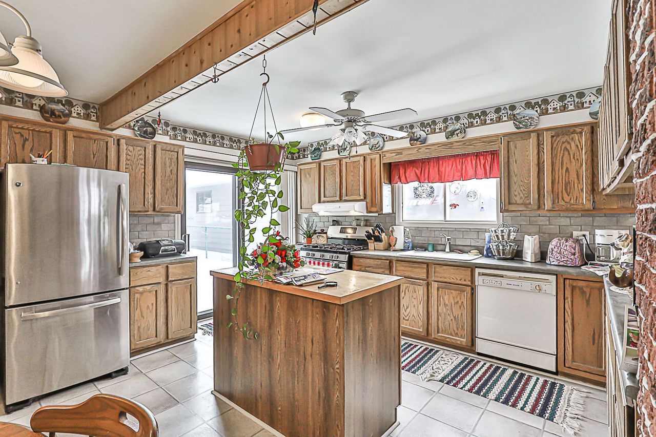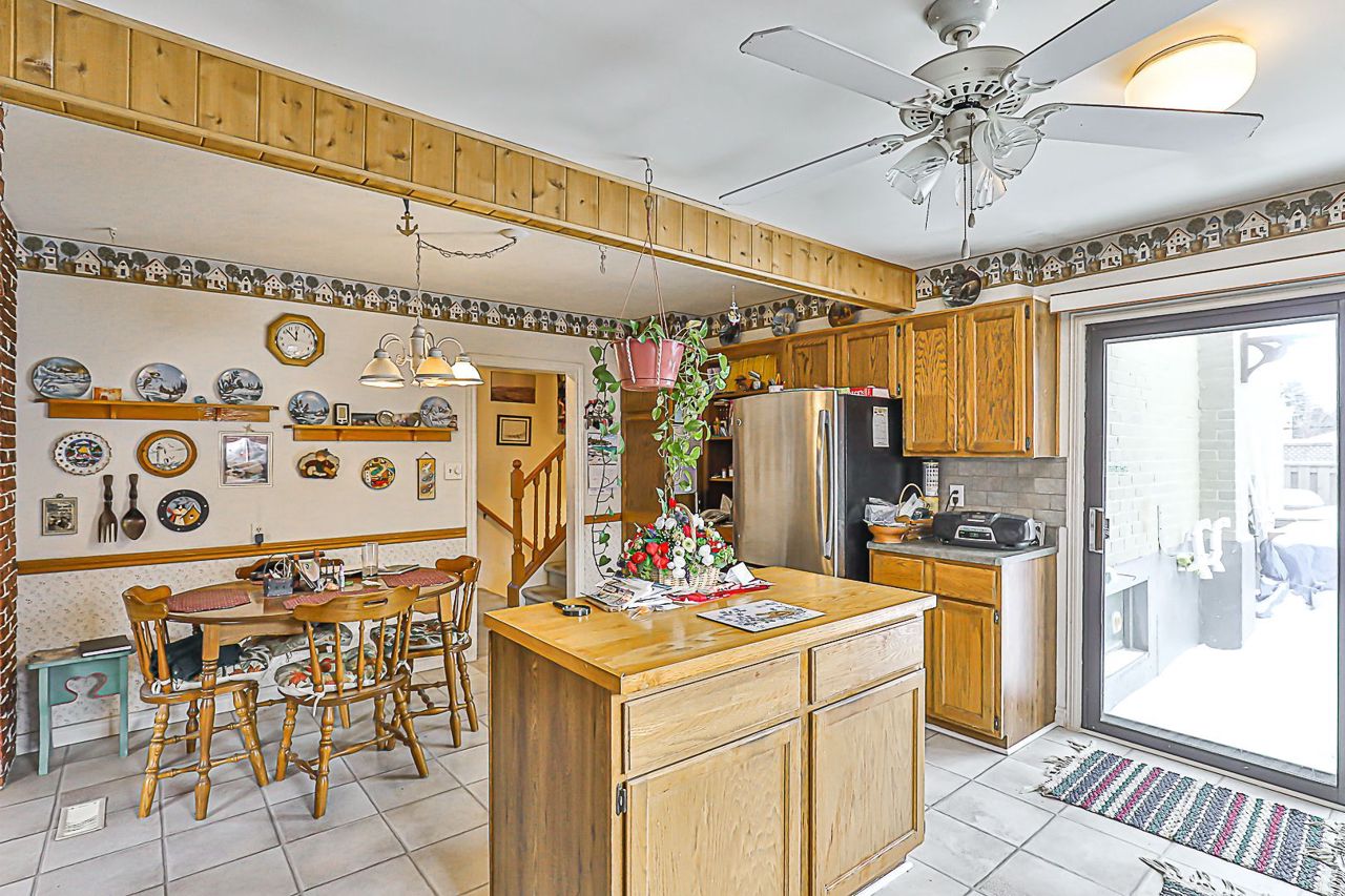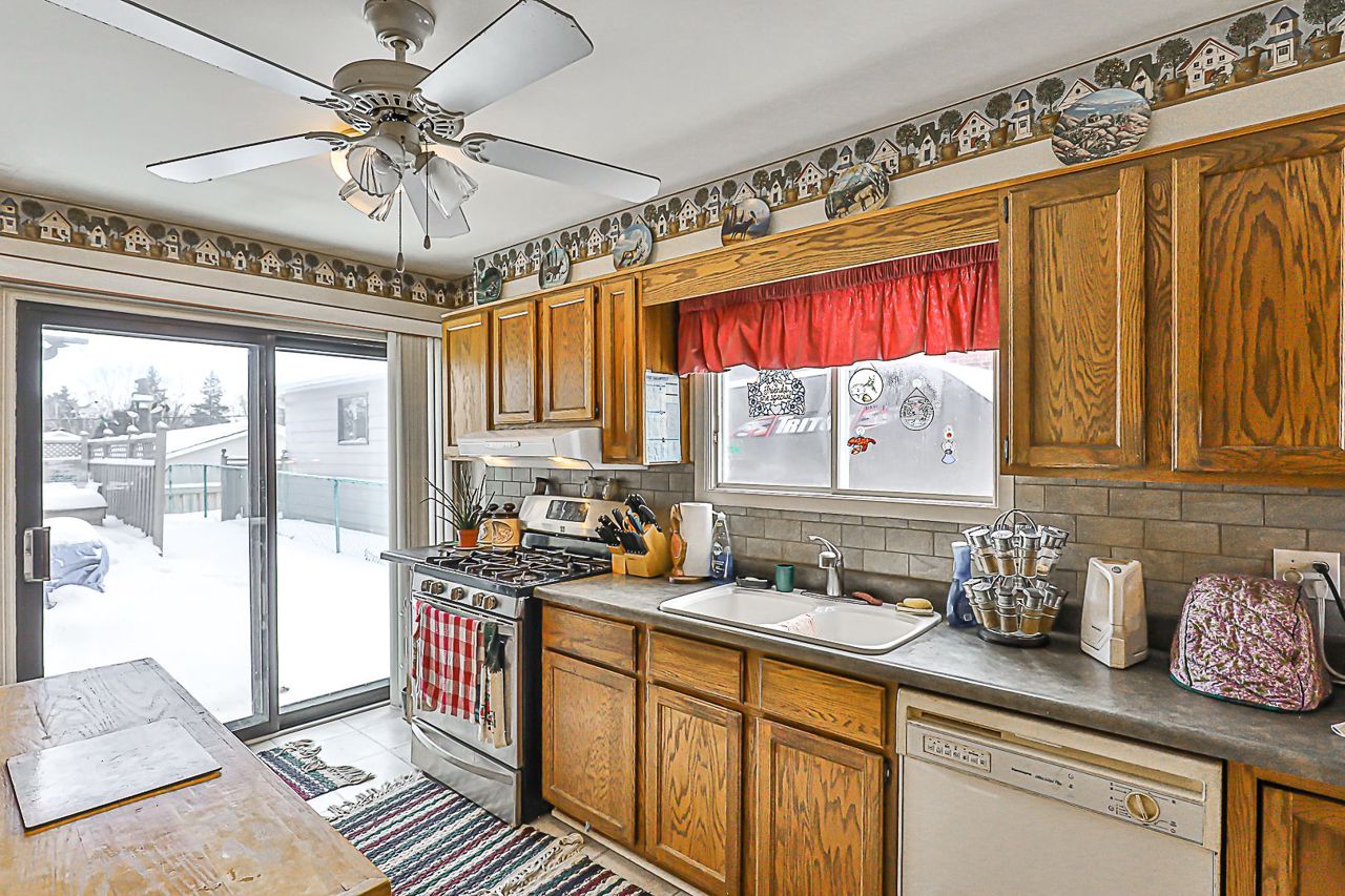 Welcome to this cherished family home, where the same owners have lovingly maintained this property since 1971. Two additions on house, double car garage, oversized deck, workshop and so much more to offer. Needs your decorating skills but in demand area on 65 x 110 ft lot walking distance to schools, trails and shops. Owner heats with wood stove but has newer FAG furnace, plus tankless hot water heater both owned (2023) Gas fireplace in lower level, lots of storage in crawl space. Three bedroom 2 bath home, Upper level hardwood under broadloom, oversize eat in kitchen with walk out to patio and deck plus fenced yard with formal dining room and large living space. Workshop with loft 16x16 with loft, some furniture available.