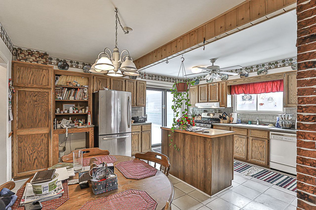 欢迎来到这个备受珍爱的家庭住宅,自1971年以来,同一业主一直悉心维护着这处房产。房屋经过两次扩建,配有双车位车库、超大露台、工作间等众多设施。虽然需要您的装饰技巧,但该地段需求旺盛,占地65 x 110英尺,步行即可到达学校、步道和商店。业主使用木炉取暖,但已配备较新的FAG暖气炉和无罐热水器(均为2023年购置)。地下室设有燃气壁炉,爬行空间提供大量储物空间。这是一套三卧两卫的住宅,上层硬木地板覆盖着宽幅地毯,宽敞的厨房设有用餐区,可通往露台和甲板,还有带围栏的院子、正式餐厅和宽敞的起居空间。工作间带阁楼,尺寸为16x16英尺,部分家具可提供。