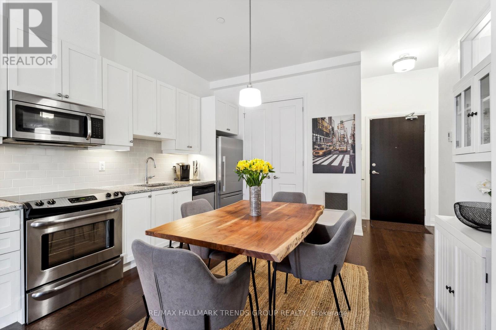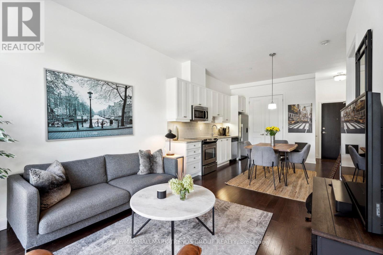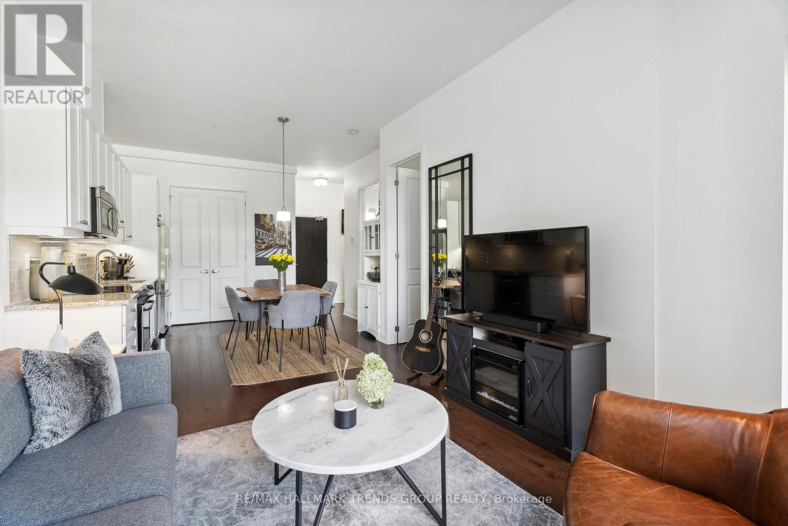 Located in the core of Aurora Village this condo unit offers you a modern open concept design with a covered balcony, and plenty of natural light. The one bedroom features a double closet and walkout to a large balcony and views of the Village. The den is perfect for an office, and the kitchen features granite counters, stainless steel appliances, and plenty of counter space. The 4 pc bathroom is updated with marble counter, shower/bath. One indoor parking spot close to the access entry door. Bldg amenities include a large exercise room with updated equipment and a massive party room. This condo unit gives you to the best of both worlds, picturesque views, walking trails, parks, and steps to Go Transit and amenities (fine dining, shopping, & movie theatre). Located close to highway 404, - a 40min drive to T.O.**** EXTRAS **** Gym / Exercise Room, Concierge, Visitor Parking and BBQs. Included in your monthly condo maintenance fees are Common Element Maintenance, Building Insurance, Parking and Water. (id:22211)