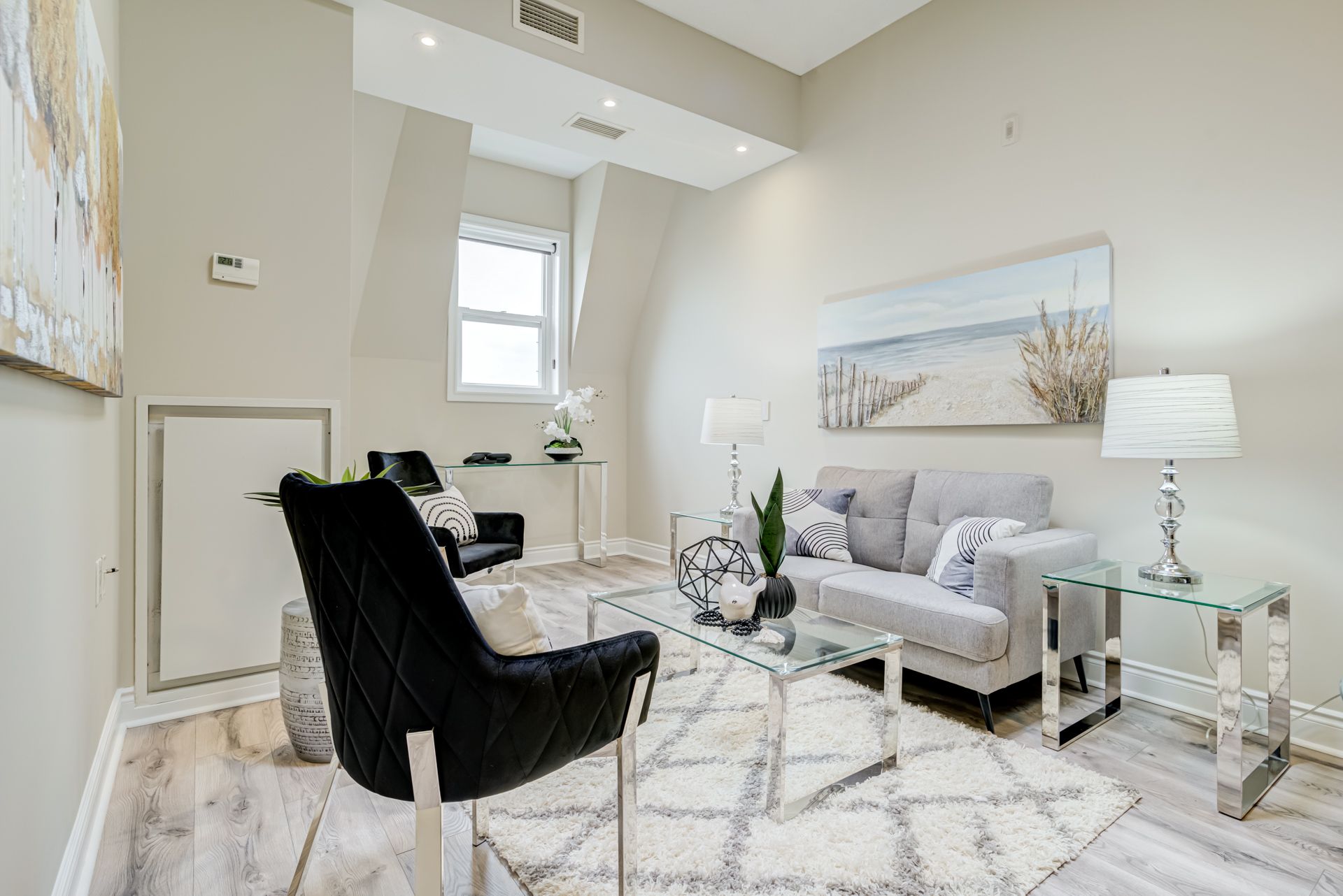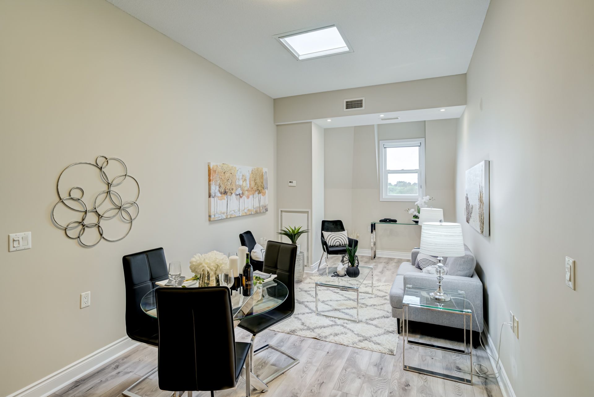 Welcome to this 876 Sqft, 2 Bedroom Penthouse on the top floor of this 5 Story Boutique Building "The Victorian". Exclusive & Luxurious 11 Ft Ceilings w/ Potlights & your very own Skylight w/ Remote Controlled Shade. Brand New Laminate Floors (2023) throughout Bedrooms & Living Area & Upgraded Bath w/ Glass Rain Shower, Granite Counters in Kitchen & Baths. Stainless Steel Appliances, Lutron Remote Controlled LED Lighting & More!Close to Aurora Go Station, Shoppers Drug Mart, Restaurants & More!