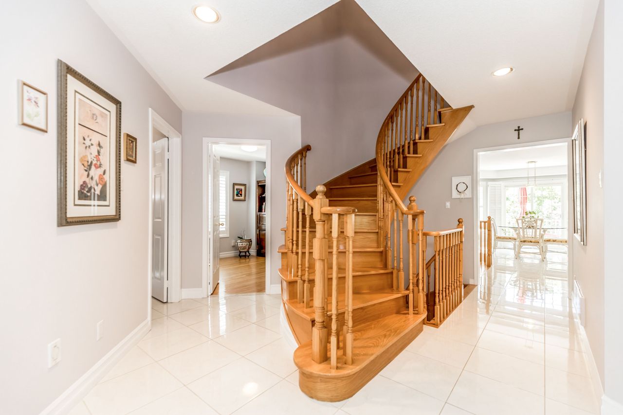 Welcome Home! Over 4000sqft Of Stunning Living Space That Has Been Meticulously Maintained Settled In A Highly Sought After, Mature, Family Friendly Neighbourhood! You Will Feel The Love In This Home. Main Flr Hosting Updated Oversized Tiles, Cali Shutters Thru-Out, New Powder Room, Bonus Separate Office, Cozy Sitting Room w/ Vaulted Ceilings, Spacious & Bright Eat In Kitchen W/ w/o To Backyard & Open To Living Room. Laundry Doubling As Mud Room W/ Garage Access. Make Your Way Up The Wooden Spiral Staircase To 4 Great Sized Bdrms. Grand Primary Bdrm W/ Tons Of Natural Light, Raised Sitting Area, 5 pc Ensuite & Custom Built In + W/I Closet! It Does Not End There! The Basement Is Fully Finished W/ Quality Renovations, 2 More Bdrms, Full 3pc Bath, Extra Lrg Windows Above Grade To Easily Transition To A W/O. Outside Boasting Beautiful Gardens, Large Sun Deck & Updated Stone Patio Exuding Gorgeous Curb Appeal.Location Is A+, Just Steps To Schools, Minutes To The Highways, Surrounded By All Amenities & Parks, Less Than 30 Mins To Toronto. Central Vac (2022). Furnace, A/C, HRV (2021) & Humidifier (2021) All Owned.