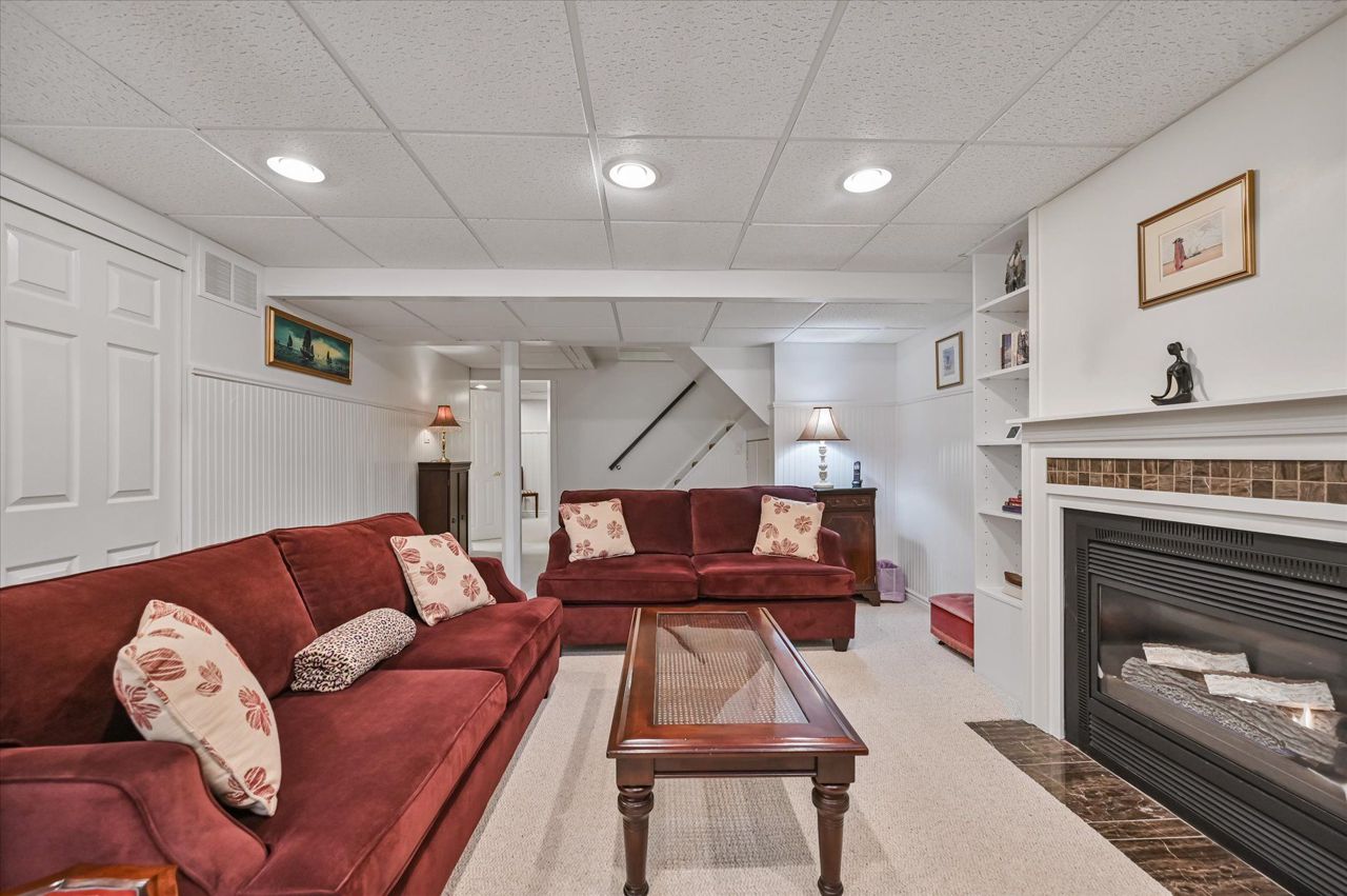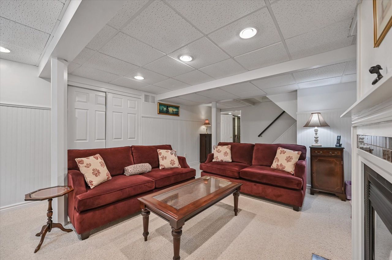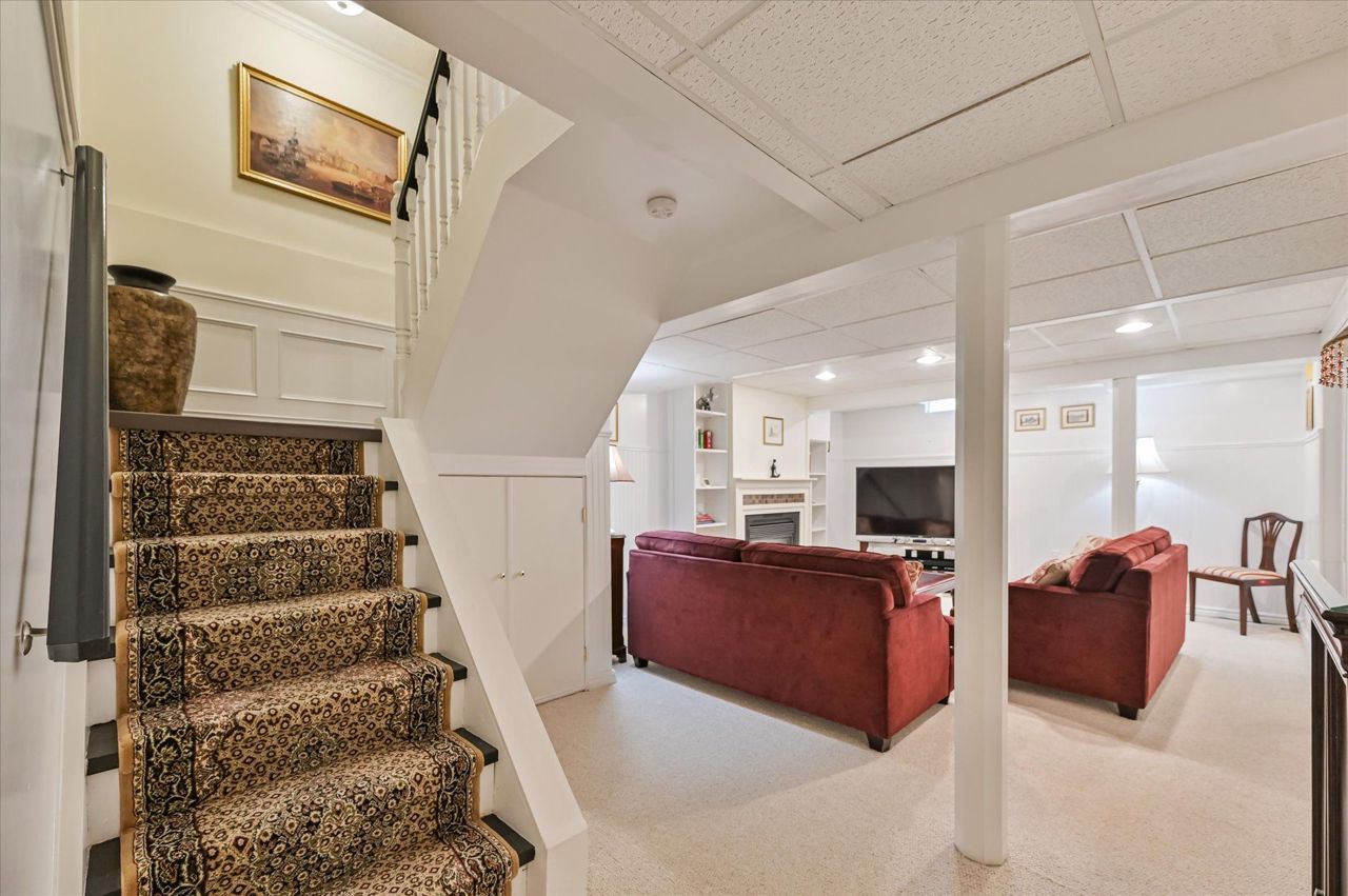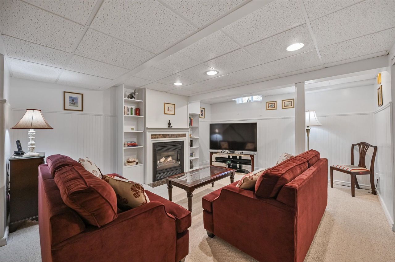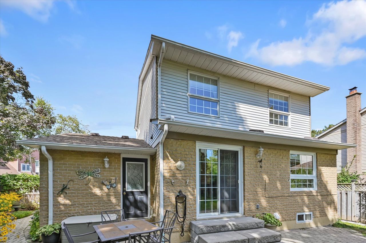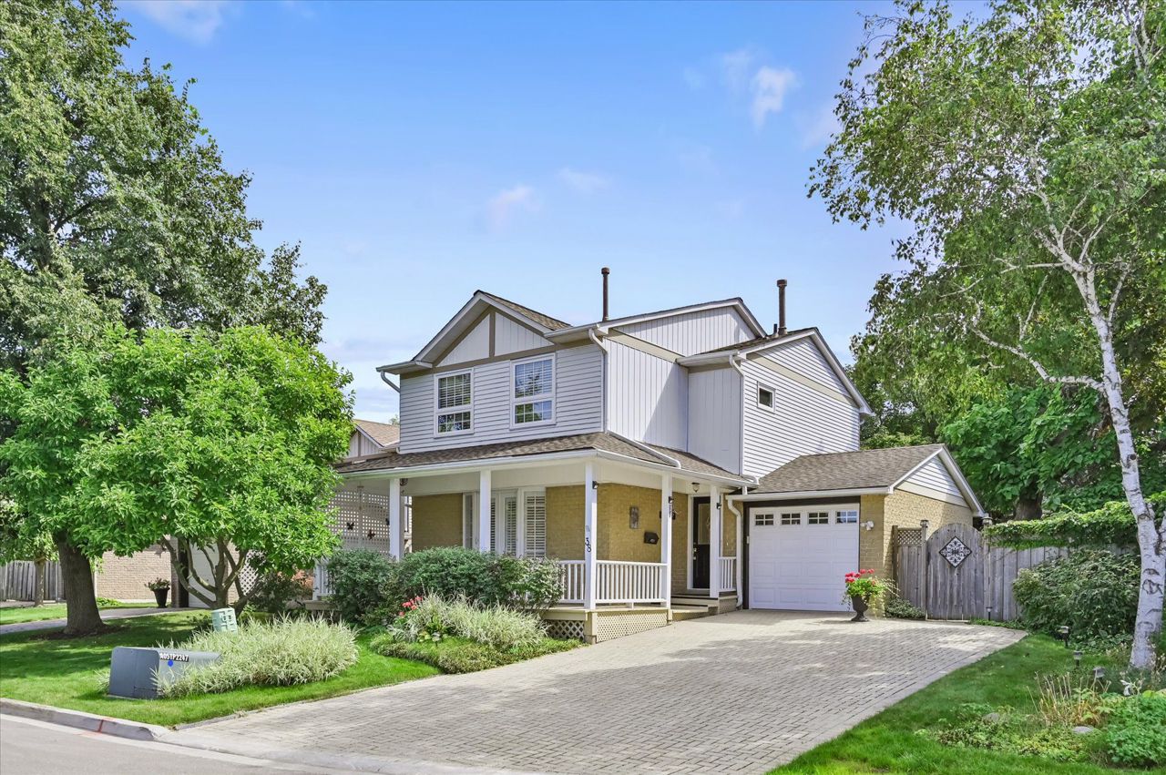 a gas fireplace, 4th bdrm in lower level has 3 piece ensuite & wall closet. This home boasts pot lights, wainscoting,, chair rail, crown mouldings,hardwood floors t/out. W/O from liv.rm to front Veranda and from kitchen to large and private interlocking patio and rear yard Oasis, with perennial gardens. Rear yard is fully fenced and has mature treed surround.Include: fridge, stove, b/in dishwasher, wash/dry, wine cooler "as is", stand up fridge freezer in