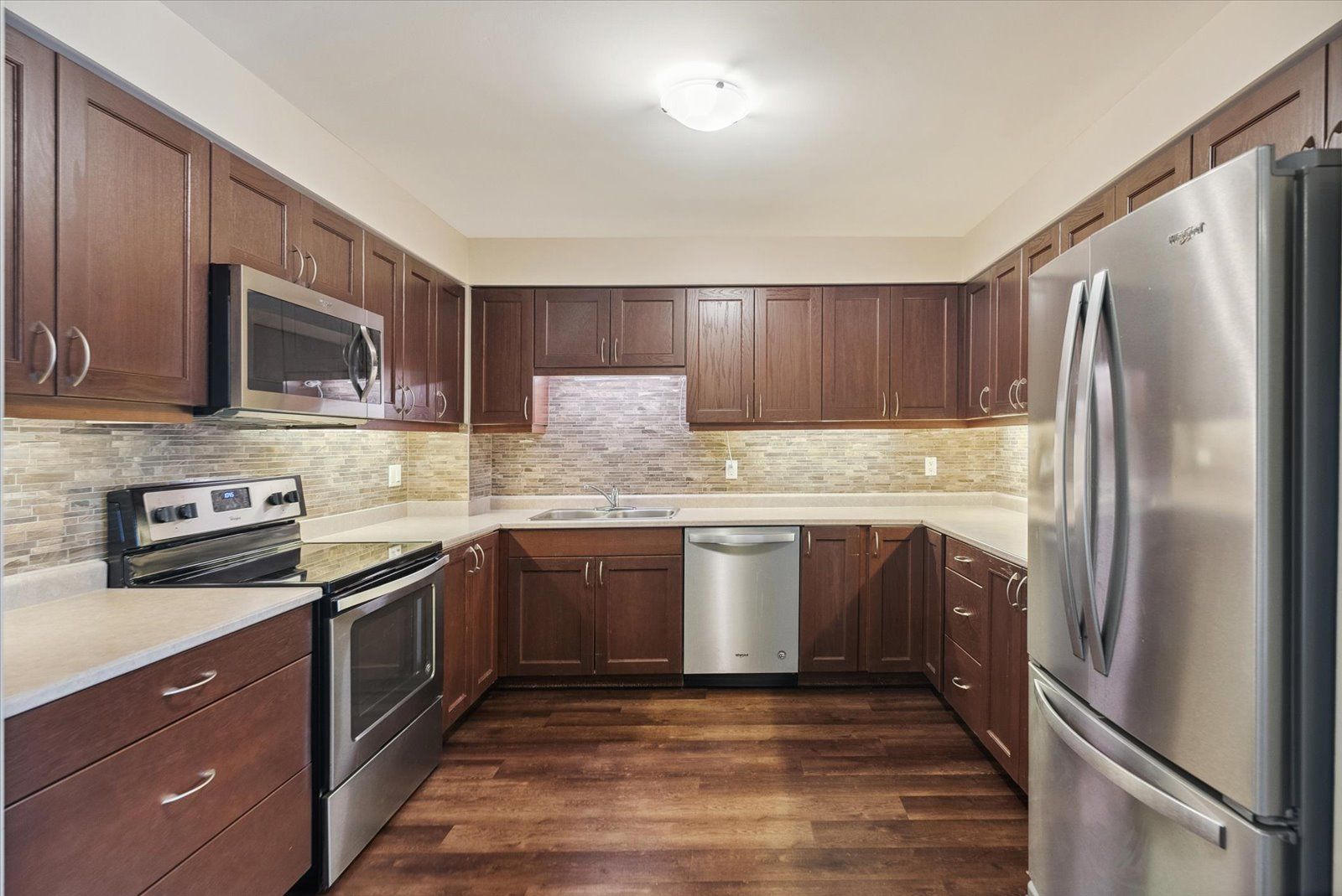 Welcome to the Meadows of Aurora! Aurora's finest Senior Lifestyle community, dedicated to cultivating relationships that allow seniors(55+) to live together. With a state-of-the-art resort style facility located on 25 acres, enjoy your retirement surrounded by lush greenery in a building with amenities not found elsewhere. Living in the Meadows is an experience unparalleled, featuring a full activity calendar with exciting exercise classes, game days, movie screenings and more, entertainment is plentiful with the plethora of amenities provided (see Extras for list). This spacious 1 bed,1 bath, ground floor suite provides a great floor plan that assists with seamlessly transitioning into senior living. This unit features a spacious kitchen with plenty of cupboard and countertop space, full stainless steel appliances, and a walkout to your beautiful patio space. Unit comes with underground parking spot and locker. Maintenance fees include property taxes, cable/internet, water, heat/ac.Amenities include: Activity Room, Party Room, Family Lounge, Games Room, Meadows Cafe, Arts and Crafts Room, Pickle Ball Court, Library, Outdoor Patio Lounge and BBQ, Fireside Lounge, Hair Salon, Fitness Center, Car Wash and many more!