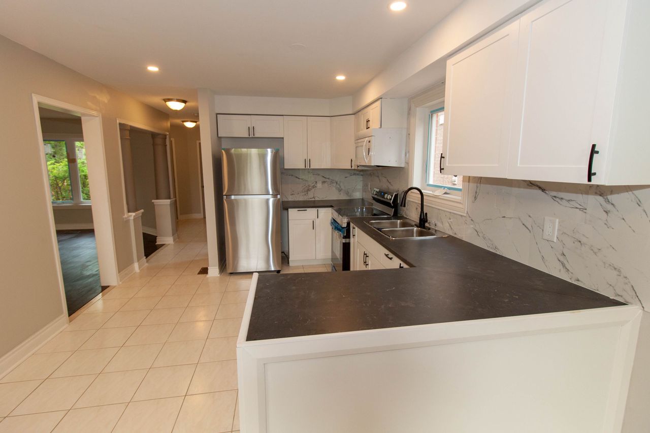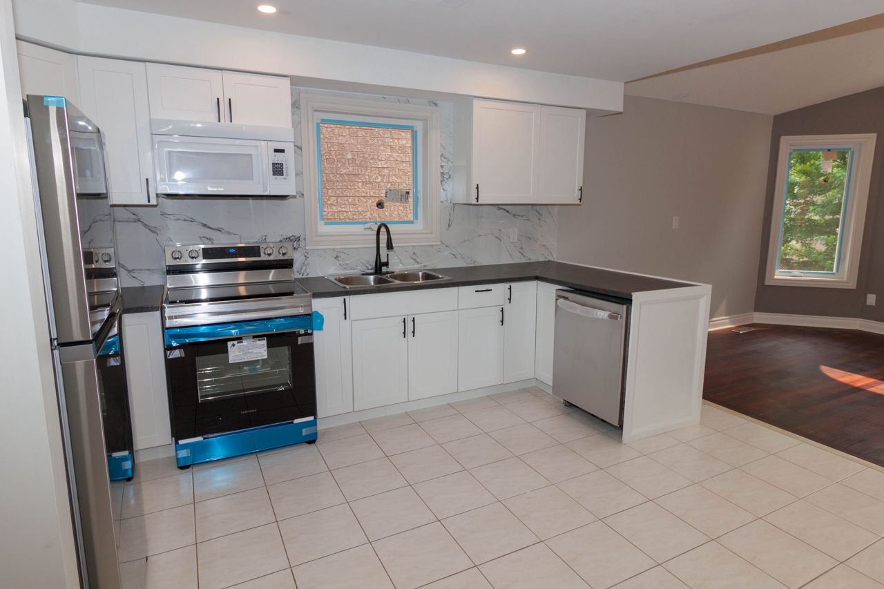 Newly renovated, bright and spacious main and 2nd floors feature three bedrooms, three bathrooms and second-floor laundry. Hardwood and laminate floors thru-out. Combined living and dining room, open concept updated kitchen overlooking the family room with a gas fireplace and walk-out to deck. Direct entry from garage. New appliances. Quiet and friendly neighbourhood! Close to Hwy 404, Go transit, shopping, schools & parks. *Please note lease is for main and upper floor only*. **** Utilities are included in the rent****