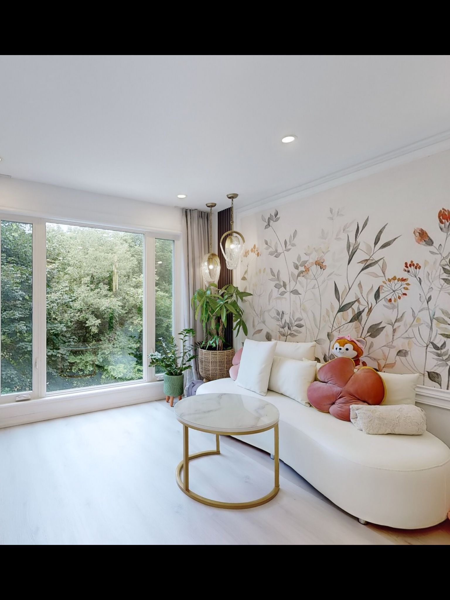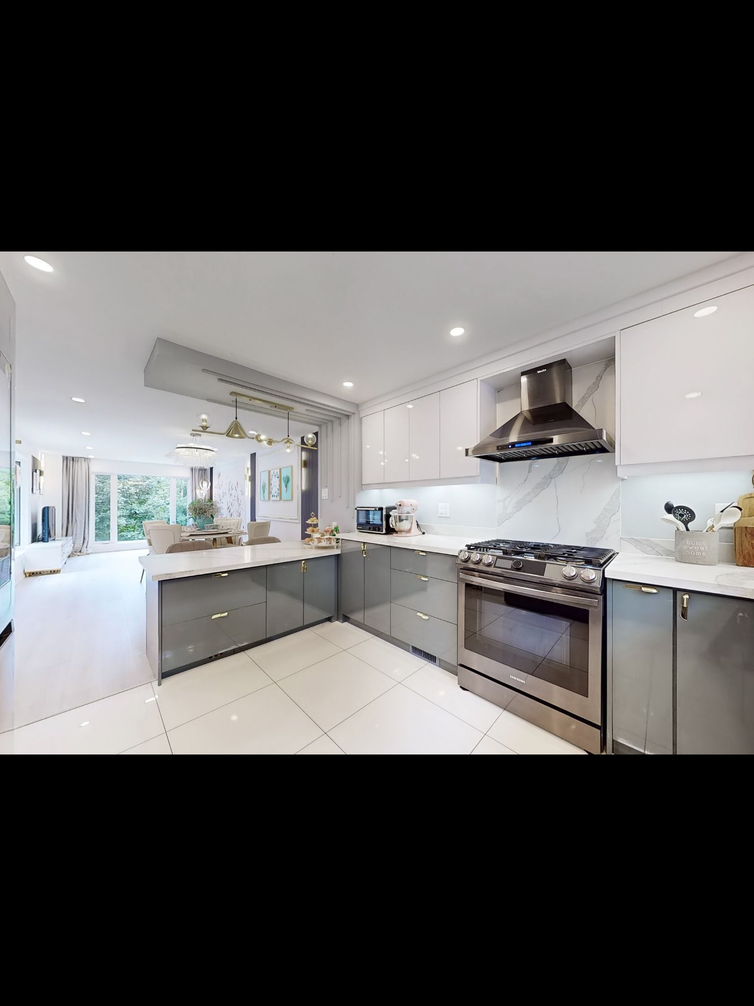 Welcome to the prestigious Aurora community, where you'll find this stunning freehold townhouse that has been meticulously renovated from top to bottom and front to the back with lots money spent in 2022. This luxury house features high-end finishes and professional interior design throughout. As you enter, you are greeted by a grand foyer with high ceilings, a hallmark of the elegance that continues throughout the home. The entire house with vinyl flooring and a striking glass staircase railing, blending sophistication with modern design. The kitchen is a chefs dream with its open-plan layout, premium cabinetry, and high-end s/s appliances. It features large, upscale tiles and a designated eat-in area, perfect for casual dining. The formal dining room is a statement of luxury, complete with an elegant feature wall and a dazzling chandelier, setting the scene for refined dinners. In the living room, a massive piece of art takes center stage, complemented by a bay window that offers serene views of the surrounding trees. The main level impresses with a 11.5ft ceiling height, enhancing the sense of space and grandeur. Upstairs, you'll find three bedrooms. The master suite includes a luxurious ensuite 4-piece bathroom and a large double-door closet, along with a cozy study area. All the bedrooms are bright and spacious. The basement is a highlight of the home, featuring high-end finishes and a walk-out design that opens directly to the backyard. It offers a versatile space ideal for entertainment and relaxation. The backyard is elegantly paved, making it both stylish and easy to maintain, and backs onto the ravine area for added privacy. The house is ideally situated next to the prestigious St. Andrews College, one of the top private schools in GTA. Enjoy easy access to several large plazas, which provide a variety of shopping, dining, and entertainment options.Additionally, nearby parks and green spaces enhance the quality of life, offering beautiful outdoor areas for leisure and recreation. This blend of natural beauty and accessibility makes the community an exceptional place to live.