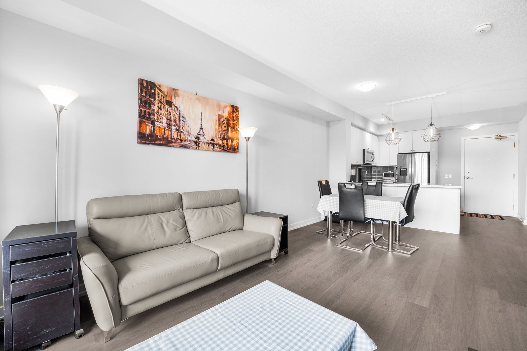 This stunning Arbors condo offers a myriad of desirable features that make it stand out from the rest. To start with, it comes with the rare two tandem parking and two lockers, providing ample storage space and convenience. As you step inside, the open kitchen is sure to impress any aspiring chef, with S/S appliances, sleek quartz countertops, and ample cabinet space.The layout seamlessly blends the kitchen with dining and living area that bathe in natural light. The primary bedroom boast its own 4pc- ensuite and spacious den W/large closet has endless possibilities. Top Tier amenities Pet mud room, Fitness, guest suites, Yoga room, BBQ & Terrace etc…