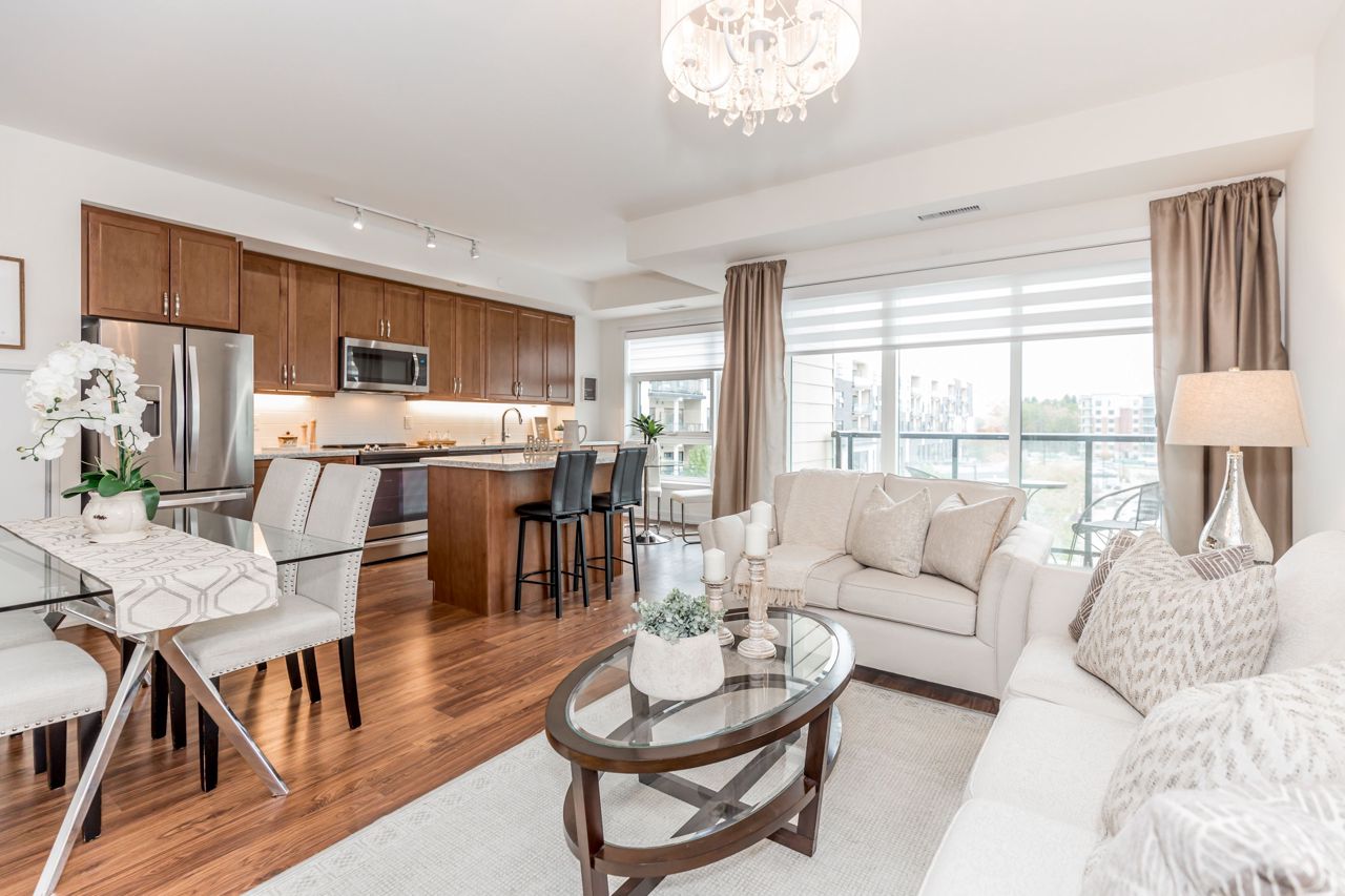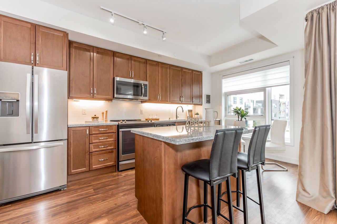 Impeccably Maintained 2 Bedroom 2 Bathroom Condo In Highly Desirable Neighbourhood In Prestigious Aurora! This Bright Open Concept Unit Offers An Airy Floor Plan Including Upgraded Kitchen With Stainless Steel Appliances, Centre Island With Breakfast Bar & Granite Counters. Spacious Sun-Filled Living Room With Walk-Out To Balcony With Southern Exposure. Huge Primary Bedroom With Walk-In Closet & 4-Piece Ensuite. Features Including Laminate Floors Throughout, Insuite Laundry, 2 Lockers & 1 Parking Space. Located Near Transit, Trails, Parks, Shops, Highway 404 & All Amenities. This Is The One!