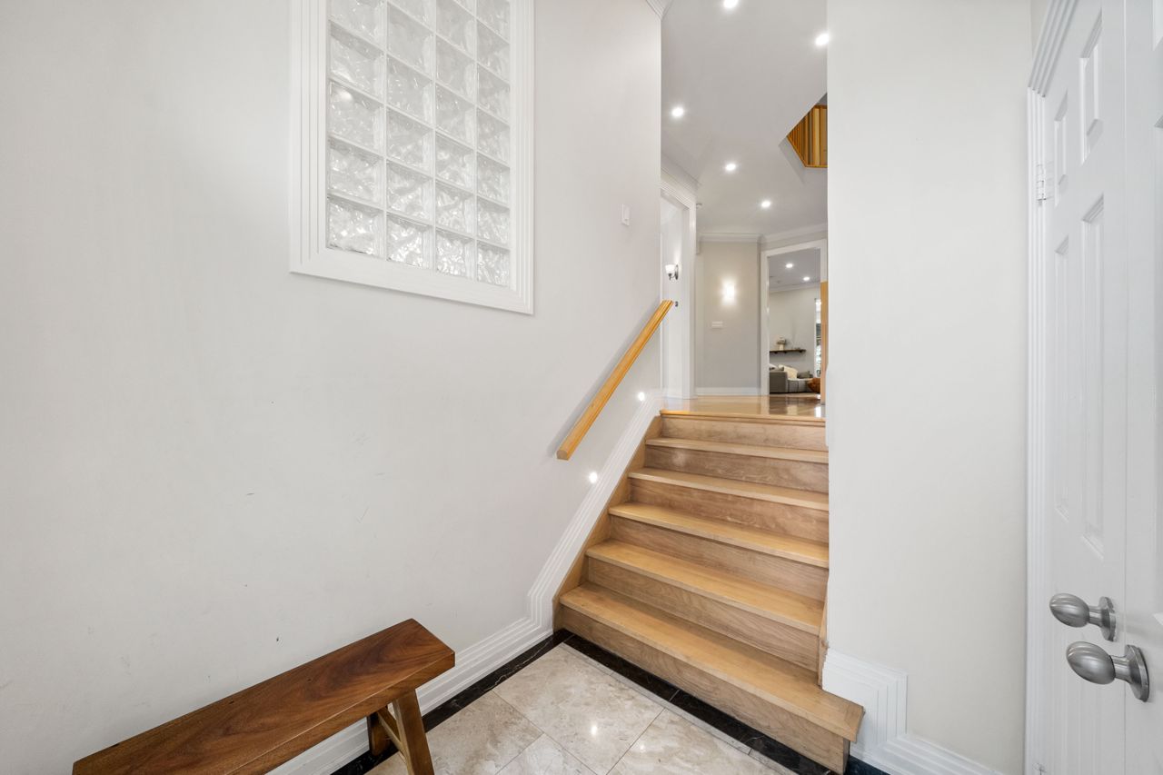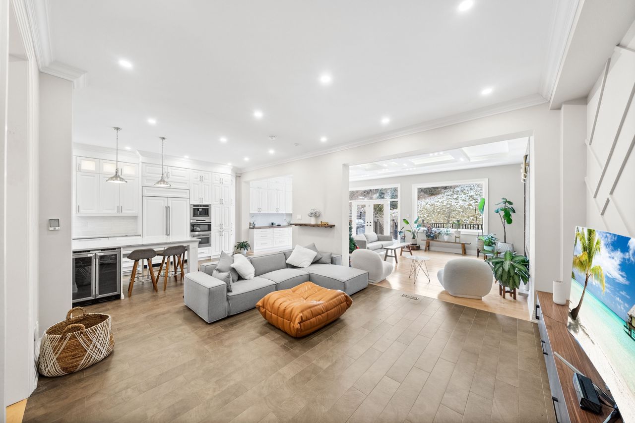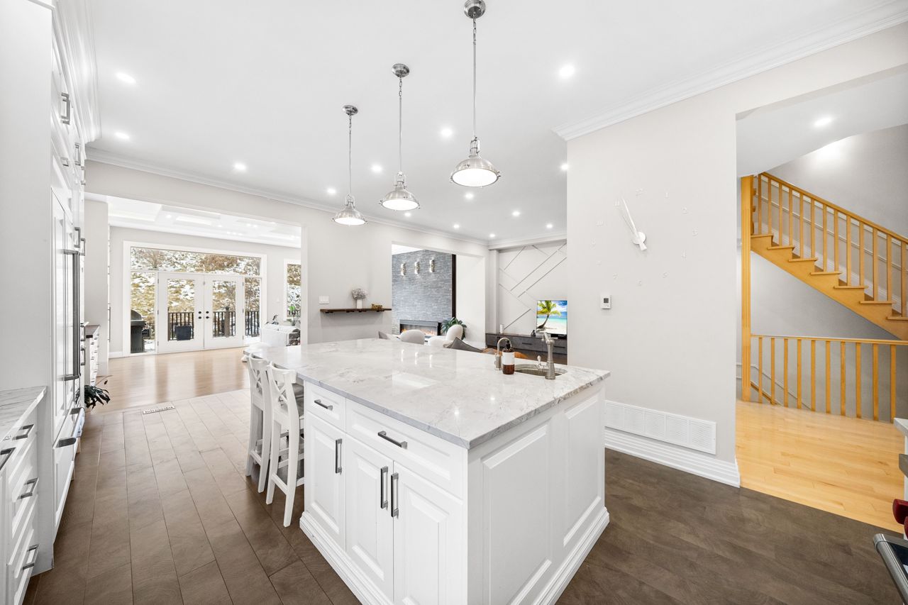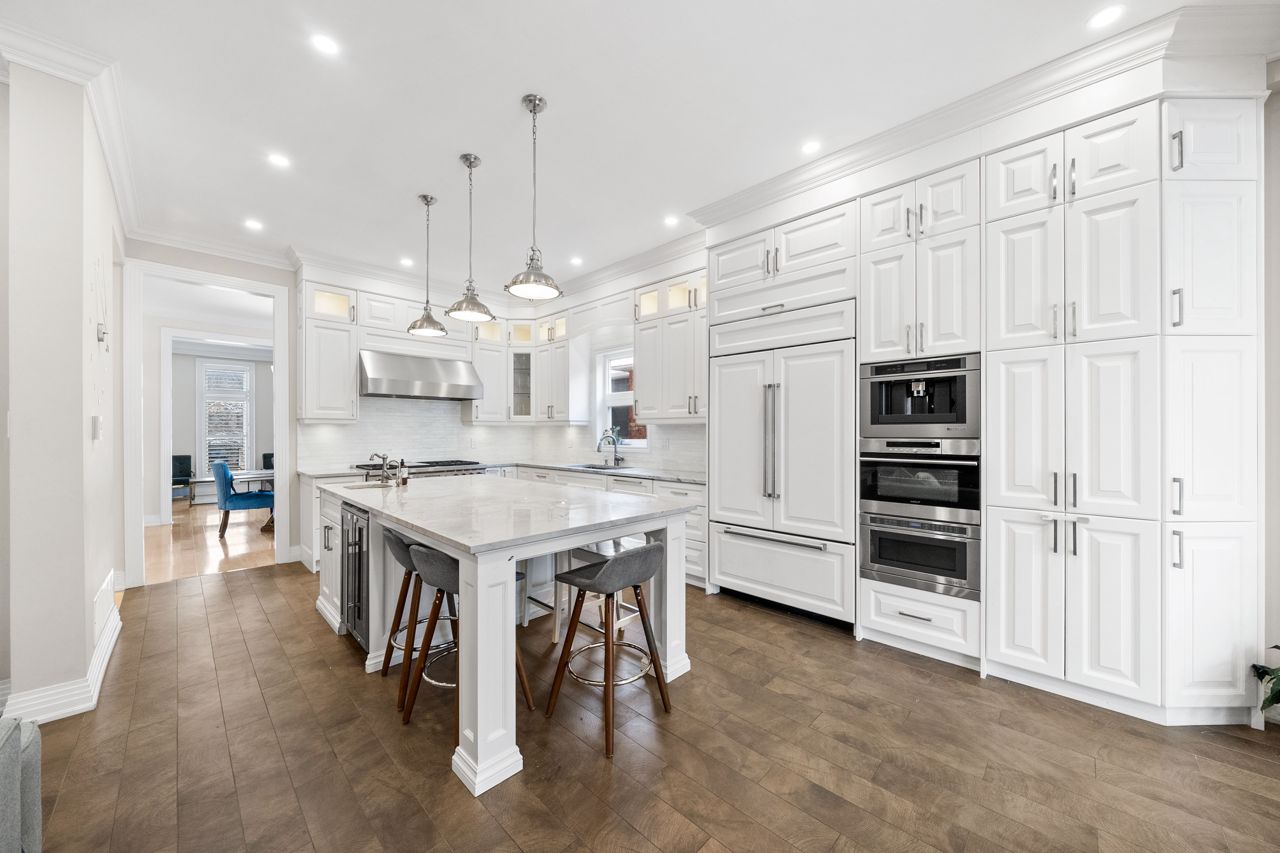 The heart of the home is the designer kitchen, featuring a 6-burner Wolf Gas Stove and built-in Espresso maker. It effortlessly connects to the spacious main floor, ideal for entertaining. Heated floors add comfort, and a walk-out to the backyard provides a direct link to nature.