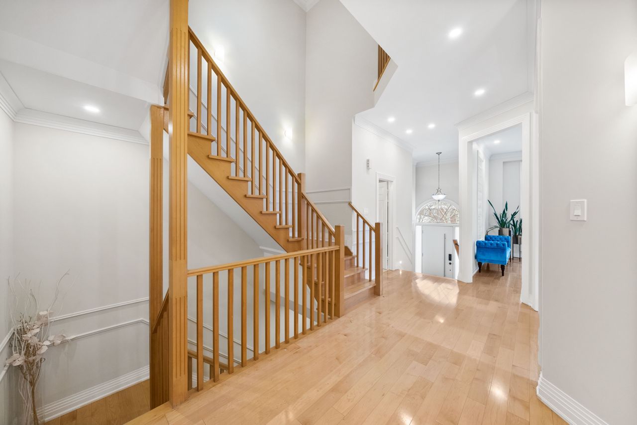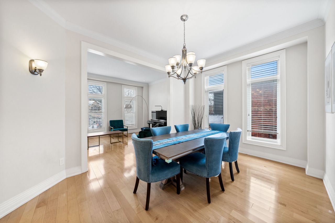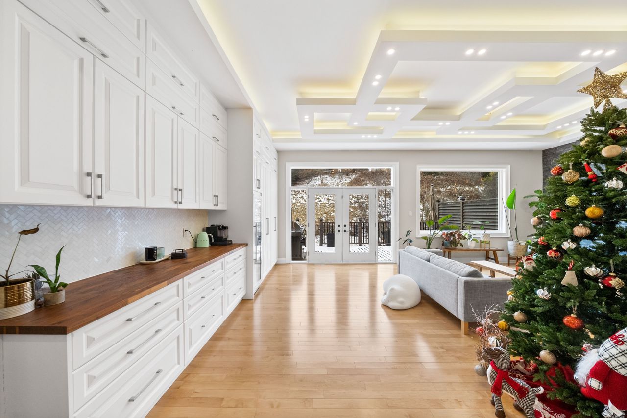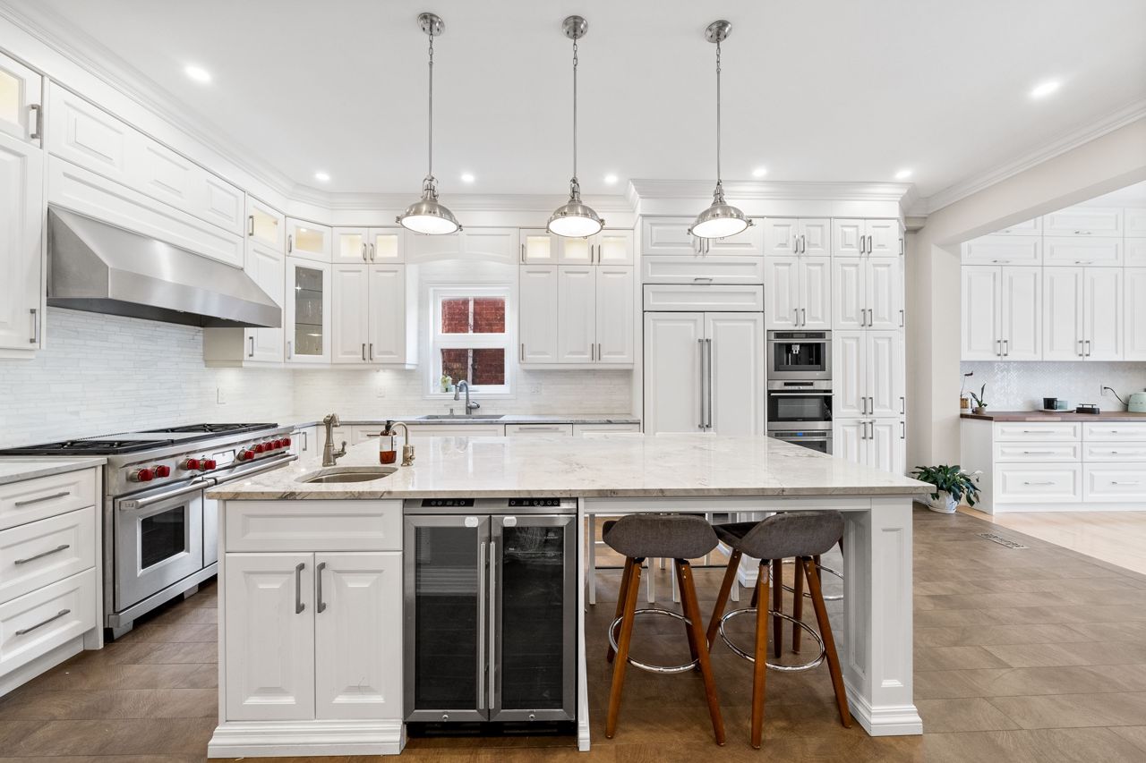 The heart of the home is the designer kitchen, featuring a 6-burner Wolf Gas Stove and built-in Espresso maker. It effortlessly connects to the spacious main floor, ideal for entertaining. Heated floors add comfort, and a walk-out to the backyard provides a direct link to nature.