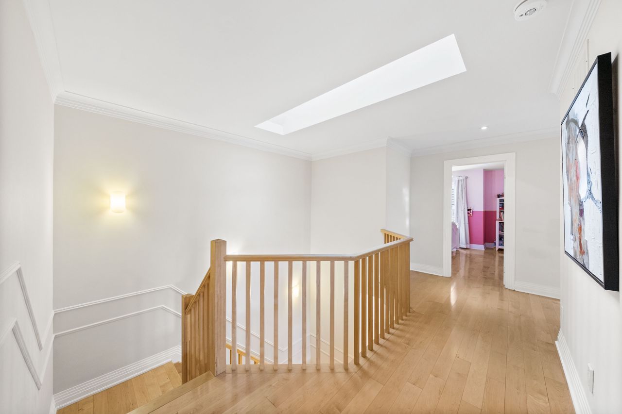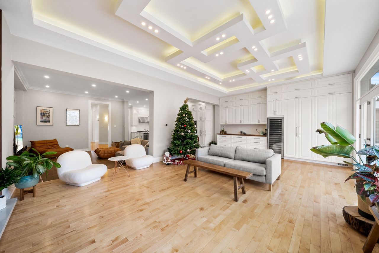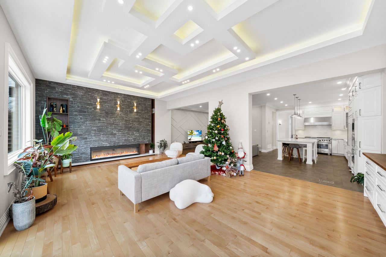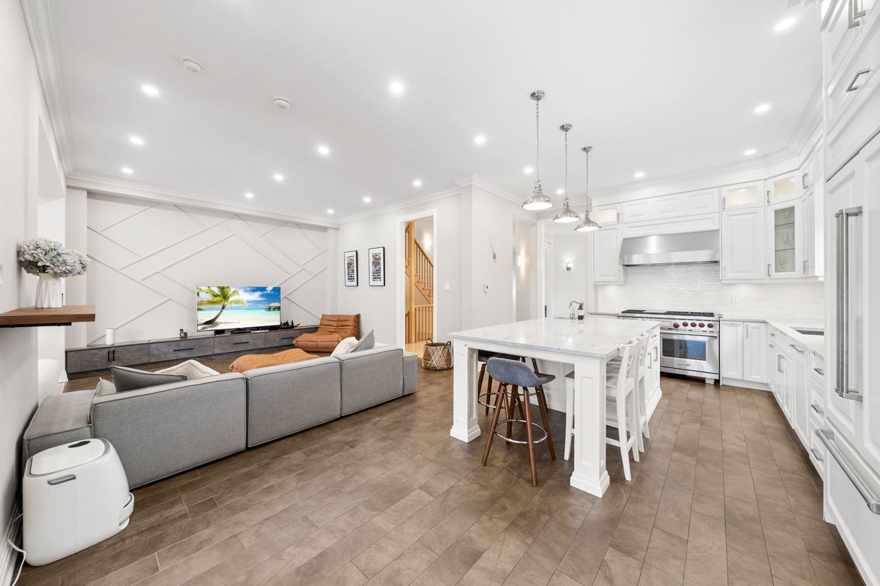 The heart of the home is the designer kitchen, featuring a 6-burner Wolf Gas Stove and built-in Espresso maker. It effortlessly connects to the spacious main floor, ideal for entertaining. Heated floors add comfort, and a walk-out to the backyard provides a direct link to nature.