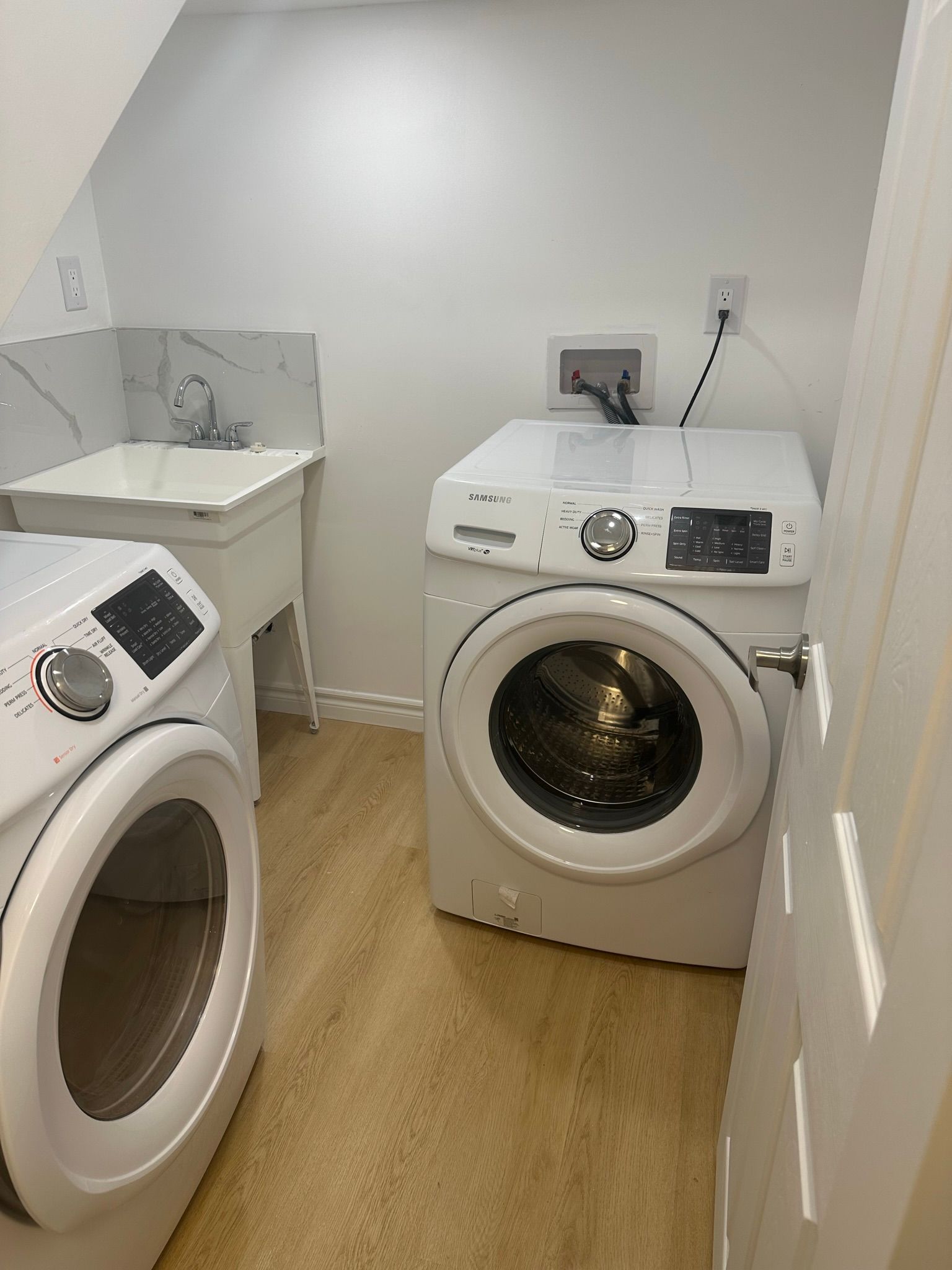 No Seperate Entrance. newly renovated 2 bedrooms basement. Walkable distance to department stores/restaurants. Minutes to 404. No Sidewalk. Move in Ready.Fridge/Washer/Dryer/Light Fixtures