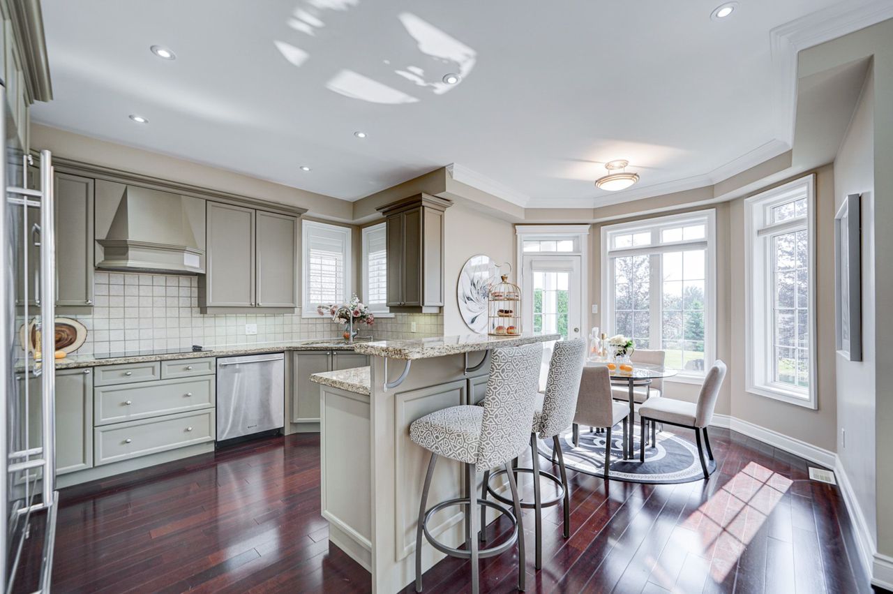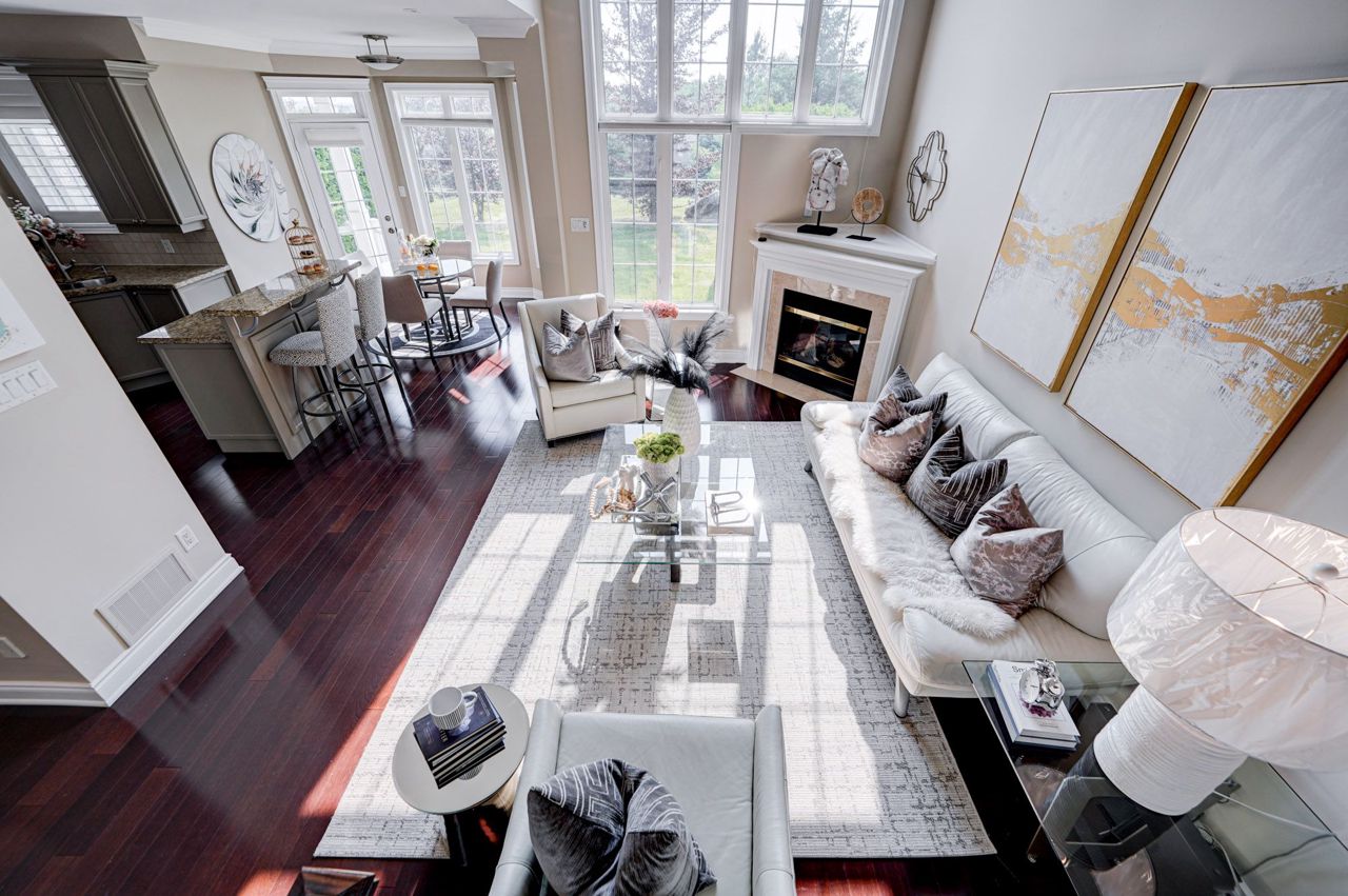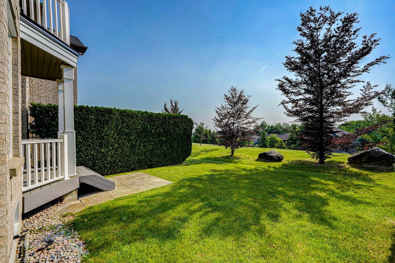 Spacious & Bright 3 Bed 3 Bath Condo Townhouse In High Demand Aurora Estate Community. Exclusive Gated Community Surrounded By Oak Ridges Moraine. Units Linked Only At Garage. Situated On A Hilltop & Panoramic View Of The Neighboring Houses **Pets Permitted**. A Very Peaceful & Tranquil Setting! Hardwood Fl Thru-out Main & 2nd Fl. Pot Lights On Main & 2nd Fl. Crown Molding Thru-out Main & 2nd Fl. Open To Above At Family Room. Upgrade Kitchen & Bathroom With Granite Countertop & Ceramic Backsplash & W/O To Patio. Master Bedroom With W/O To Balcony, W/I Closet & 5Pc Ensuite. Steps To Walking/Cycling Trails, Golf & All Amenities. Must See!2 Garage Heater. Humidifier (Attached To Furnace). Updated Insulation To Newest Government Regulated Standard.