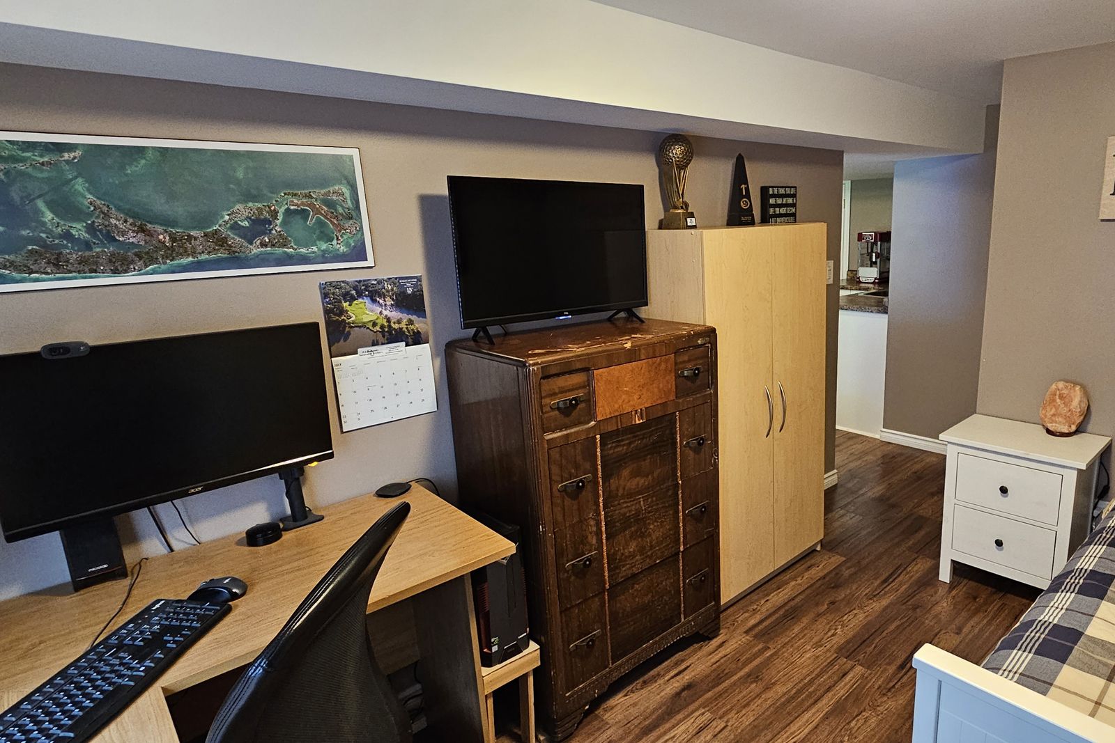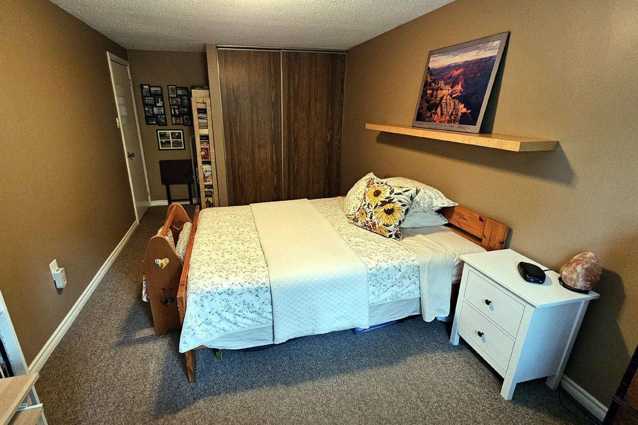 Welcome to this beautiful, move in ready, updated, 3+1-bedroom, 2.5 bath townhouse with towering Maple trees in the backyard! Located in the popular Ardagh Bluffs community of Timberwalk, this home is close to Highway 400, parks, shopping, schools and much more. This unit has been converted from electric heat to gas with the addition of central A/C. The entire unit has been renovated and the basement is nicely finished with a recreation room, bedroom/den and a 3-piece bathroom – a perfect space for extended family or an adult child. Enjoy carefree condo living with the onsite pool, gym, tennis court and recreation centre. Walkout from the basement recreation room and relish a little piece of tranquility right in the city! A great value condo. Must be seen. Simply a 10/10!