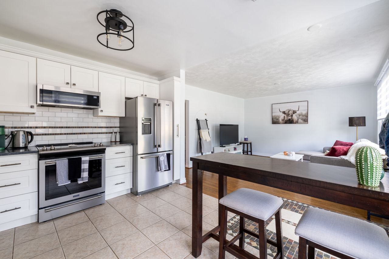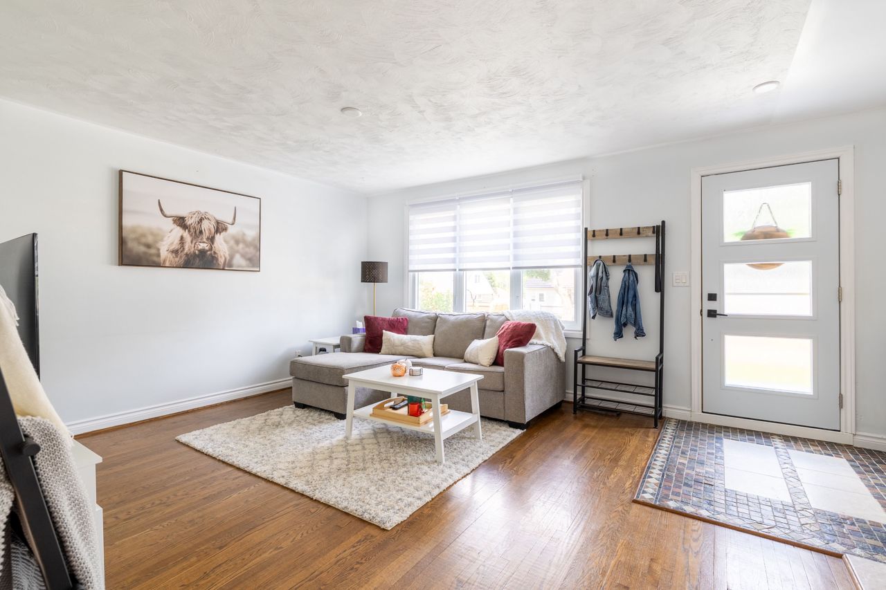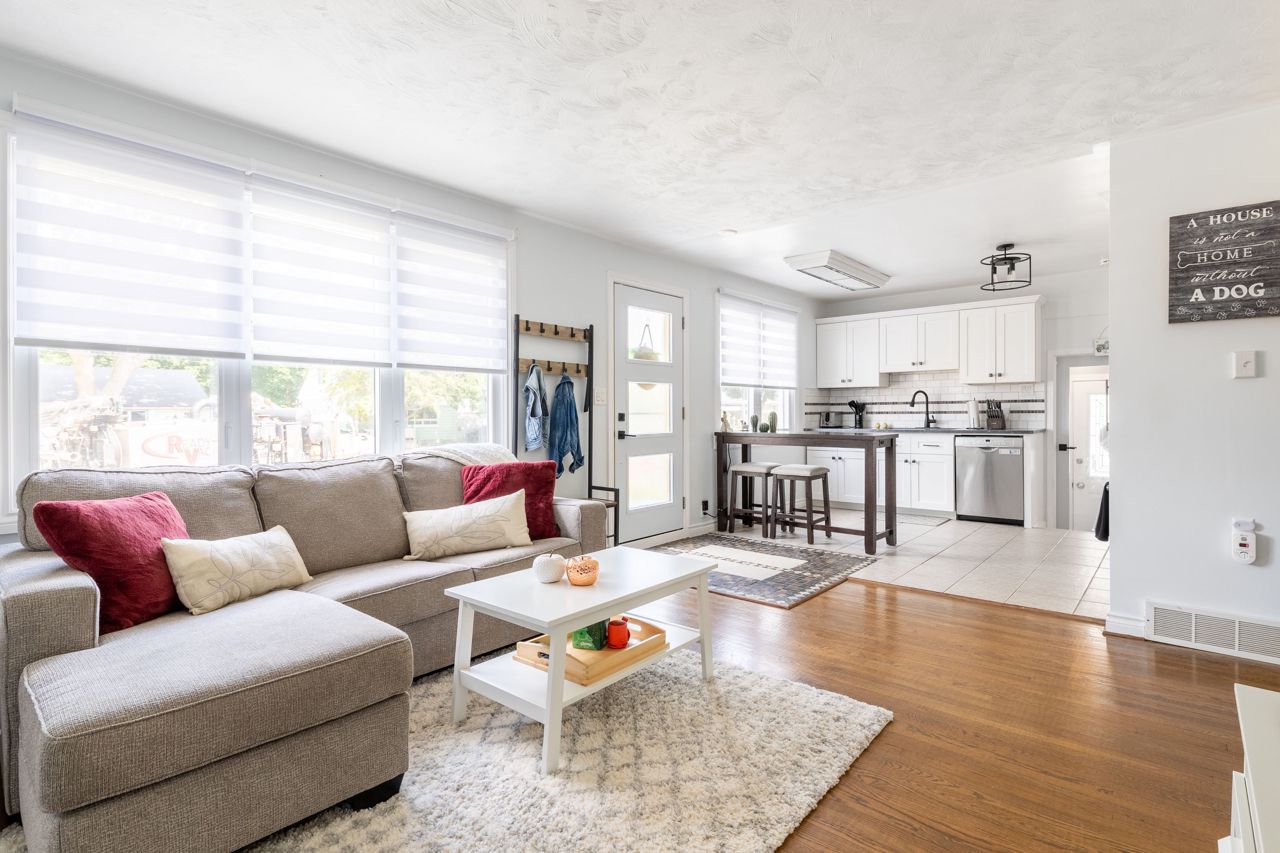 3 BEDROOM PRETTY BUNGALOW WITH UPGRADES GALORE ,MODERN OPEN CONCEPT MAIN FLOOR FRESH, CLEAN AND MOVE IN READY. GOOD SIZED RENOVATED BEDROOMS, SECOND BEDROOM HAS SLIDING GLASS DOORS AND WALK OUT TO A BIG SOUTH FACING BACKYARD, LARGE MODERN WOOD DECK, MATURE SHADE TREES ,BEAUTIFULLY LANDSCAPED WITH A GARDEN SHED FOR AMBLE STORAGE, FIRE PIT GREAT FOR BACKYARD ENTERTAINING, AND FENCED YARD. LARGE LOWER LEVEL HAS A FULLY SEPARATE ENTRACE TO A LARGE RENOVATED 1 BEDROOM BASEMENT UNIT TO POTENTIALLY SUPPLEMENT YOUR BILLS OR PROVIDE FOR A IN-LAW, FAMILY MEMBER, NANNY OR CAREGIVER . NEW 2023 : RENOVATED AND STAINED STAIRS, MODERN DECORATED AND PAINTED THROUGH OUT,LAMINITE FLOORS, DOORS ,LIGHT FIXTURES, BLINDS, BASEMENT BATHROOM RENOVATIONS. UPDATED : WINDOWS,STEEL ROOF,FURNACE AND A/C.