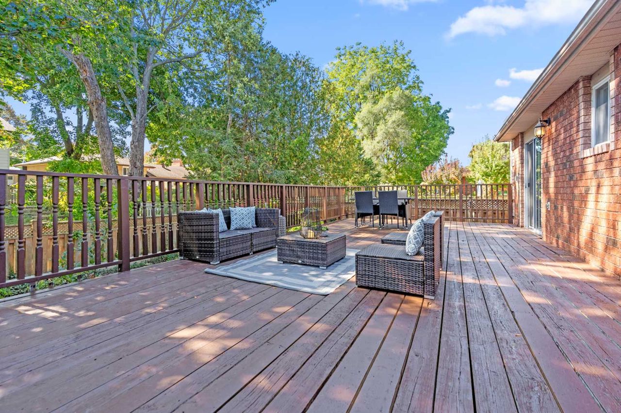 Located On A Desirable East End Street, This Ranch Bungalow Offers 3 Spacious Bedrooms (2 Up, 1 Down), 2 Baths. A Beautiful Landscaped Front And Rear Garden. With A Spacious Eat-In Kitchen Which Has Access To A Walk Out to A Very Large Deck And Landscaped Yard Perfect For Entertaining. New Engineered Hardwood Flooring Throughout The Main Floor, New Pot lights, Master With Semi Ensuite. Upgraded Kitchen Flooring, Central Air & Central Vacuum. Basement Has A Large 4 Piece Bathroom With Soaker Tub. Gas Fireplace In Spacious Basement Family/Entertaining Room. Excellent Location! Close To Schools, Royal Victoria Hospital, Georgian College, Shopping, Hwy 400 & More.Water Softener, And Central Vac. Stove 2015, A/C 2016, Roof 2015, Washer & Dryer 2018, Furnace 2018, Hardwood 2023, Pot Lights 2023.