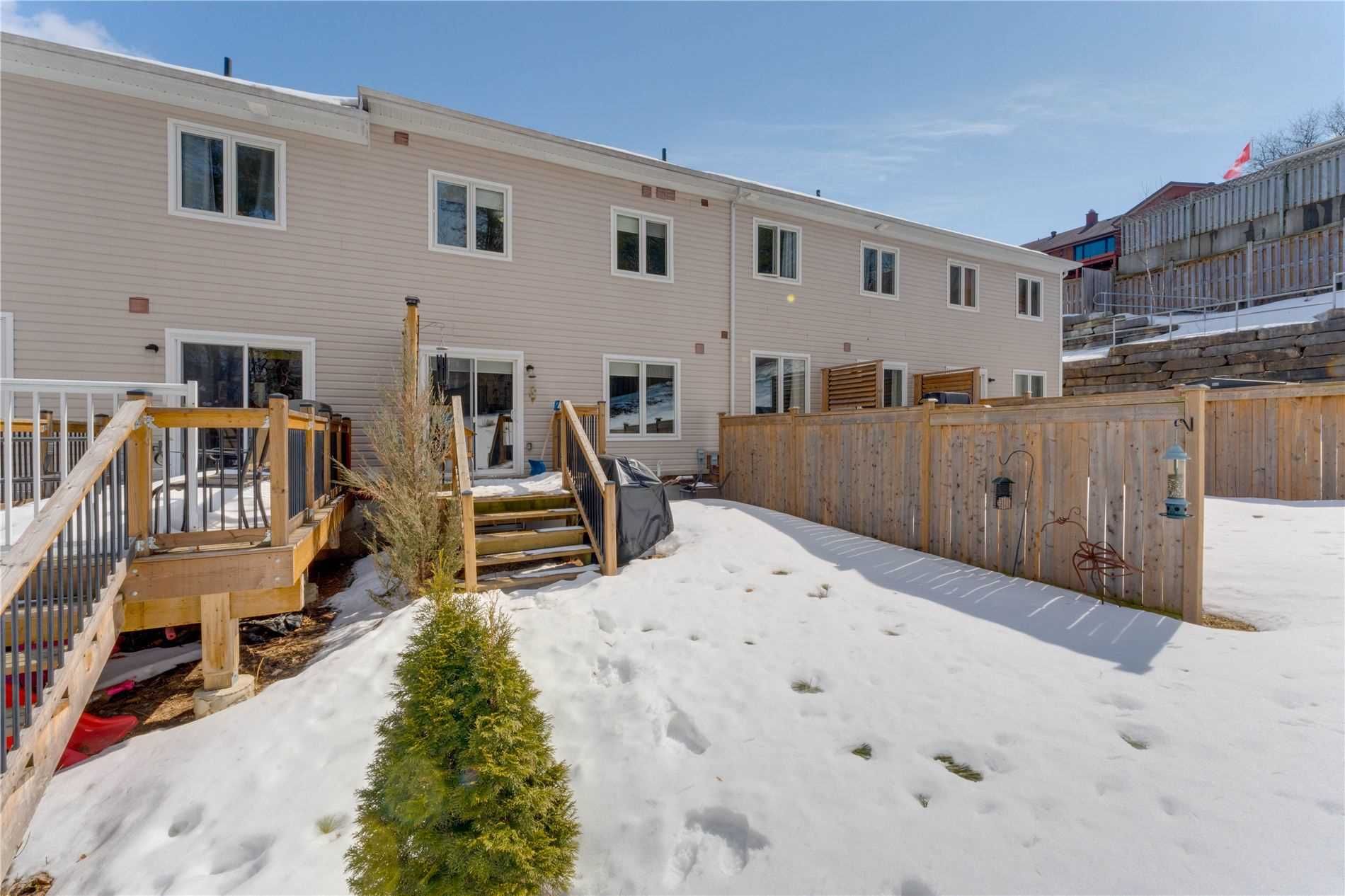 Spacious 3 Bedroom, 2 1/2 Bath Townhouse On A Cul De Sac. Great Location To Walk To The Waterfront, Shopping & Restaurants. Flagstone Walkway Leads To Lovely Covered Front Porch. You Will Also Enjoy The Large Back Yard With A Deck Off The Living Room & Lower Tier Deck As Well. 144 Ft Deep Lot. Partially Fenced Yard & Privacy Panels On Upper Deck. Loads Of Perennials In Front & Back. Stainless Steel Appliances In The Kitchen. Breakfast Bar. Good Sized Eating Area As Well. Spacious Living Room With Patio Doors To The Yard. Great Laminate & Tile Floors. Powder Room On This Level As Well. Upper Floor Laundry Is A Bonus For Sure. Master Bedroom Is Quite Large With Space For A Seating Area As Well. Plus A Fantastic 4 Piece Ensuite & Walk In Closet. 2 Other Good Sized Bedrooms As Well As Main 4 Piece Bathroom. All Appliances Are Included. Single Car Garage & Paved Driveway As Well.