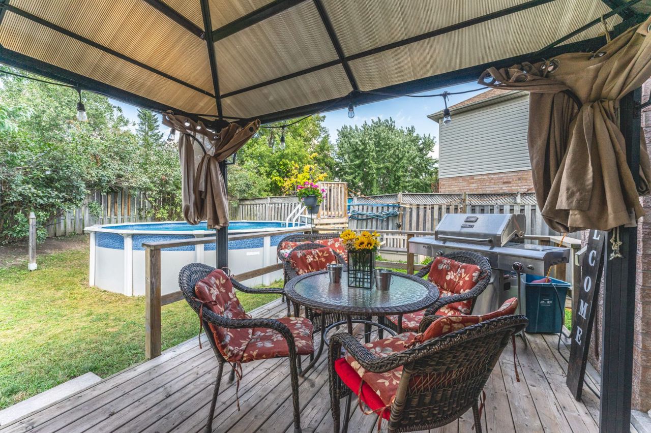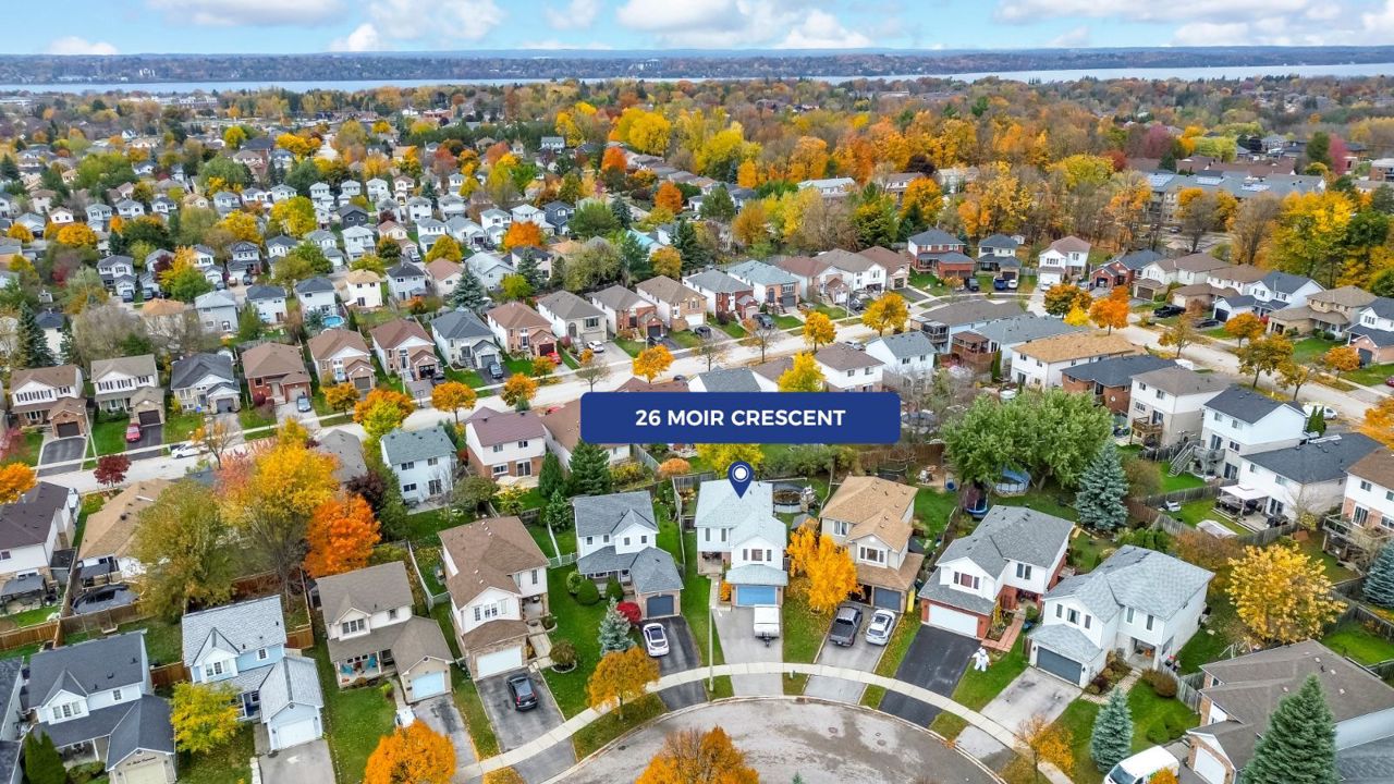 SPACIOUS FAMILY HOME SURROUNDED BY PARKS, TRAILS & LOVERS CREEK! Welcome to 26 Moir Crescent. Discover your new home in a family-friendly neighbourhood, steps from highly-rated schools. Enjoy suburban tranquillity with modern conveniences nearby. Easy highway access simplifies your commute & essential amenities, restaurants & stores are just moments away. You're also conveniently close to downtown & the waterfront. This home offers a paved driveway, a 1.5-car garage & a bright foyer with a 2pc bathroom. H/w floors flow through the large living & dining areas, perfect for entertaining. The eat-in kitchen boasts s/s appliances & granite counters, leading to a sunlit backyard oasis. Upstairs, a spacious family room awaits, along with three bedrooms & a well-appointed bathroom. The backyard is the highlight, with a fenced yard, mature trees, gardens, an inviting above-ground pool & a spacious deck for hosting friends & family. Embark on a new chapter of family living in this #HomeToStay
