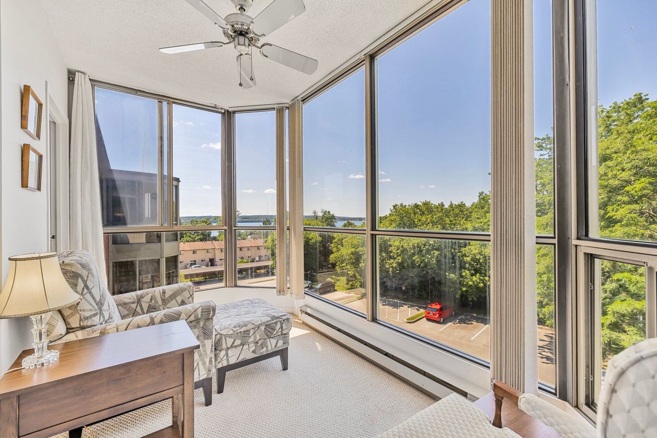 Great opportunity to move into the heart of Barrie with a four season view of Kempenfelt Bay. This South Winds Condo - Monte Carlo unit provides 1275 square feet of living with 2 bedrooms and 2 baths. A solarium with amazing views, and an open balcony off the kitchen, the ideal spot for sipping that morning coffee. Generous sized living/dining room is perfect for hosting friends or family, and the updated kitchen provides a separate breakfast nook, a small den provides a place for an office or work space. The unit also has its own laundry room. The primary bedroom is generous in size with its own entrance to the solarium, ensuite bath and is large enough for even a king size bed. The unit comes with an exclusive parking space and storage locker. The building amenities include a party room, kitchen and roof top terrace on the fourth floor. On the ground level you will find an entertainment room with walk out to yard and bbq, sauna and exercise room. Public transportation is close by and you are walking distance to many amenities including a grocery store, pharmacy, seniors centre, Tim Hortons, Barrie Yacht Club and Johnson's Beach.Offers welcome anytime, please provide 24hrs irrevocable and schedule B. Schedule B and FAQ's found in supplements. Status Cert dated Sept 10 available for review - please have sentriapp.