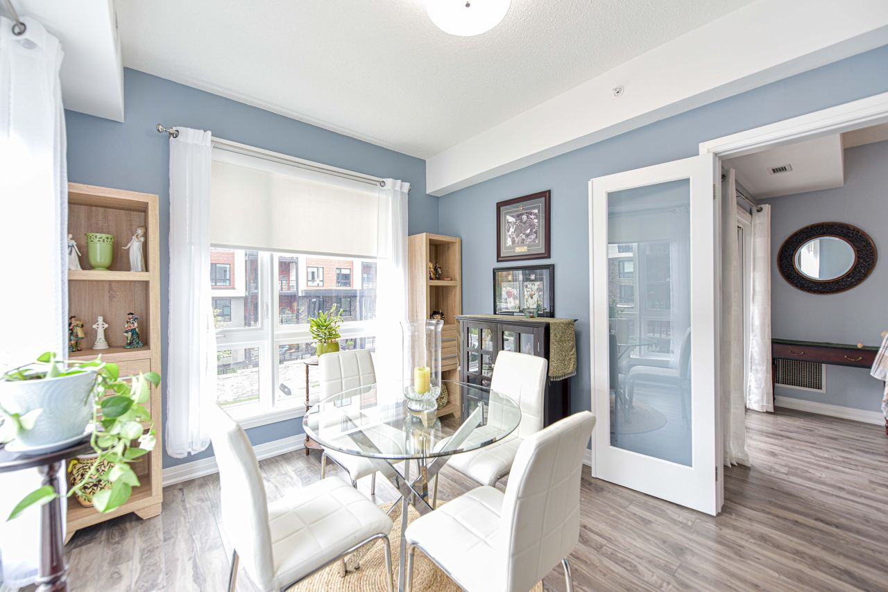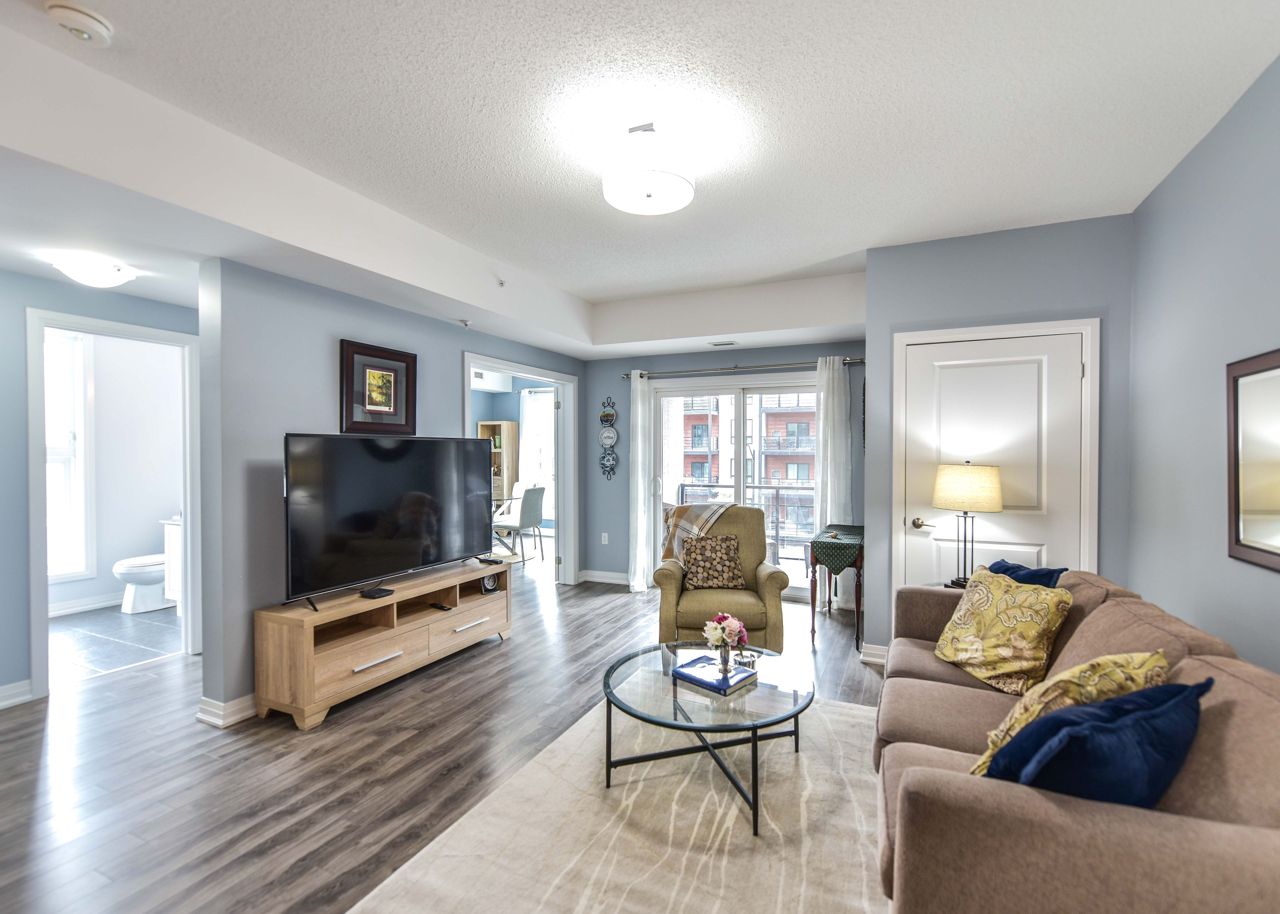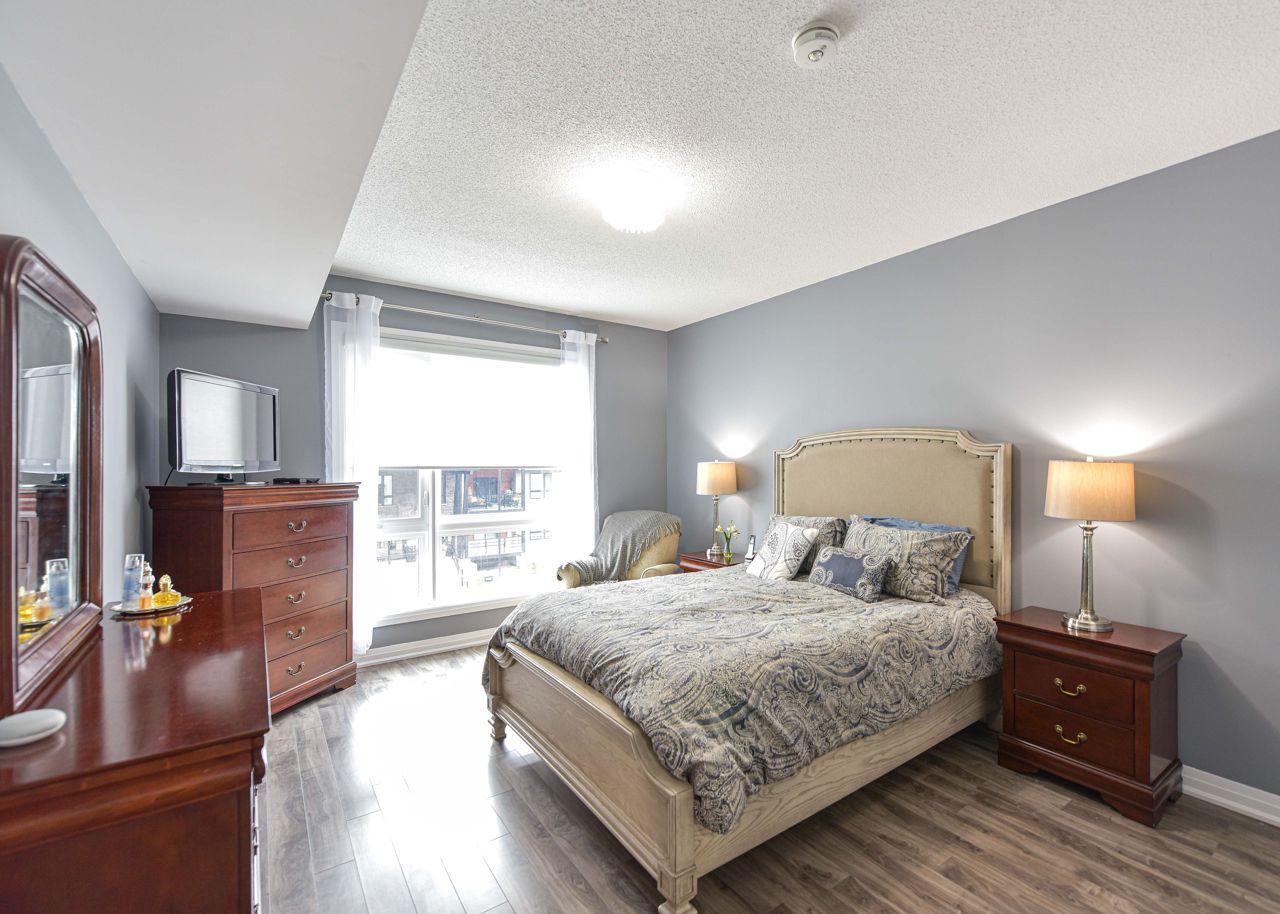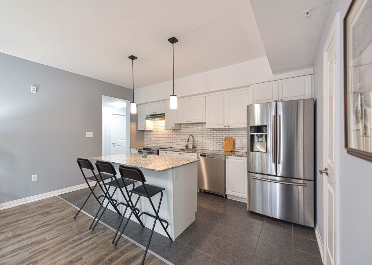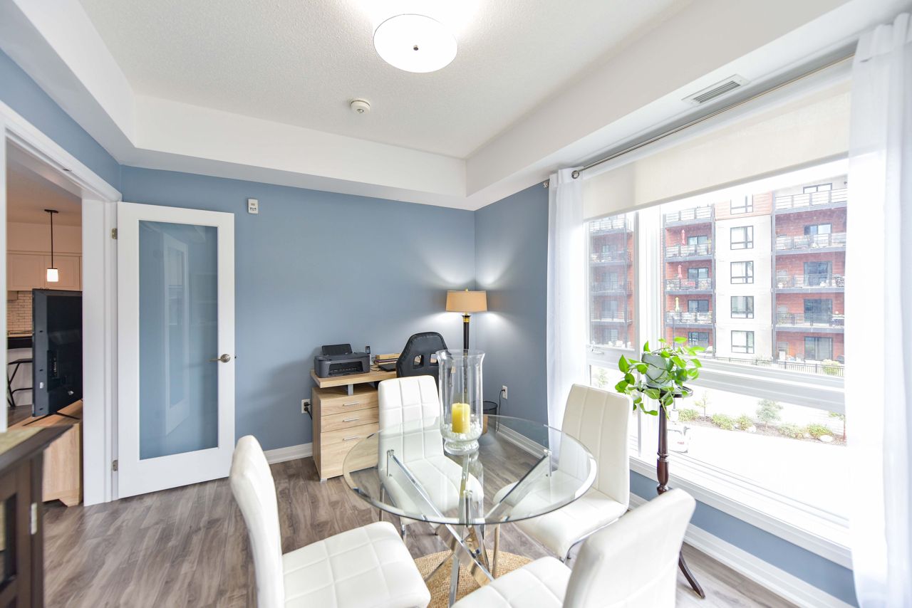 BEAUTIFUL, SPACIOUS & CENTRALLY LOCATED "THE GALLERY CONDOMINIUMS" IS THE RIGHT MOVE. LOCATION: For the commuter, Essa & Hwy 400 -10 minutes to Go Station. NEARBY: Zehrs & Rona within walking distance & minutes drive to major restaurants, coffee shops, downtown & waterfront. FOR THE OUTDOOR ENTHUSIAST: Start or end your day walking through a bonus 14 acres of environmentally protected land & trails adjacent to your home. FLOOR PLAN & FEATURES: Modern & spacious open concept 1244 sq. ft. corner unit is exceptionally bright owing to additional windows. 2 bedrooms + office/tv/dining or bedroom (you choose), 2 full baths (primary with ensuite) & large laundry with ample storage . The chef is always part of the action with an entertaining island, pantry, granite counters & stainless appliances. Carpet free = easy maintenance. Underground parking & storage. Also yours to enjoy is a gorgeous roof-top terrace overlooking the City & water views to read, soak in the sun or simply relax.