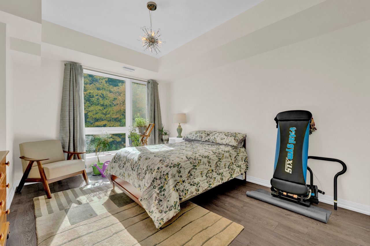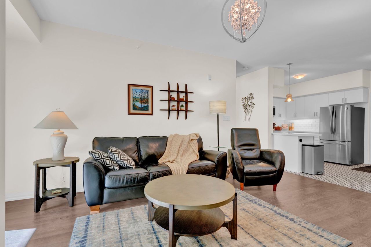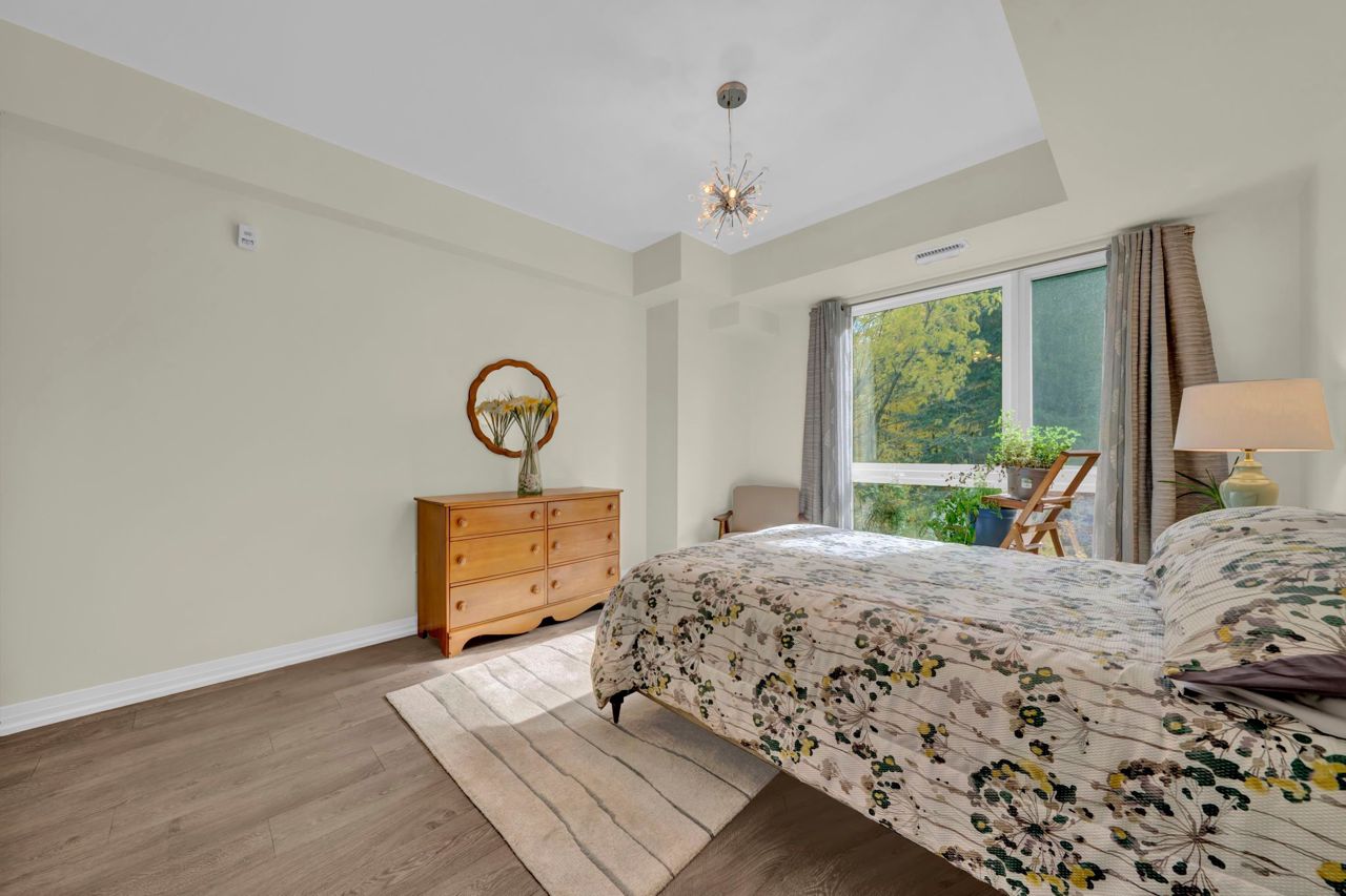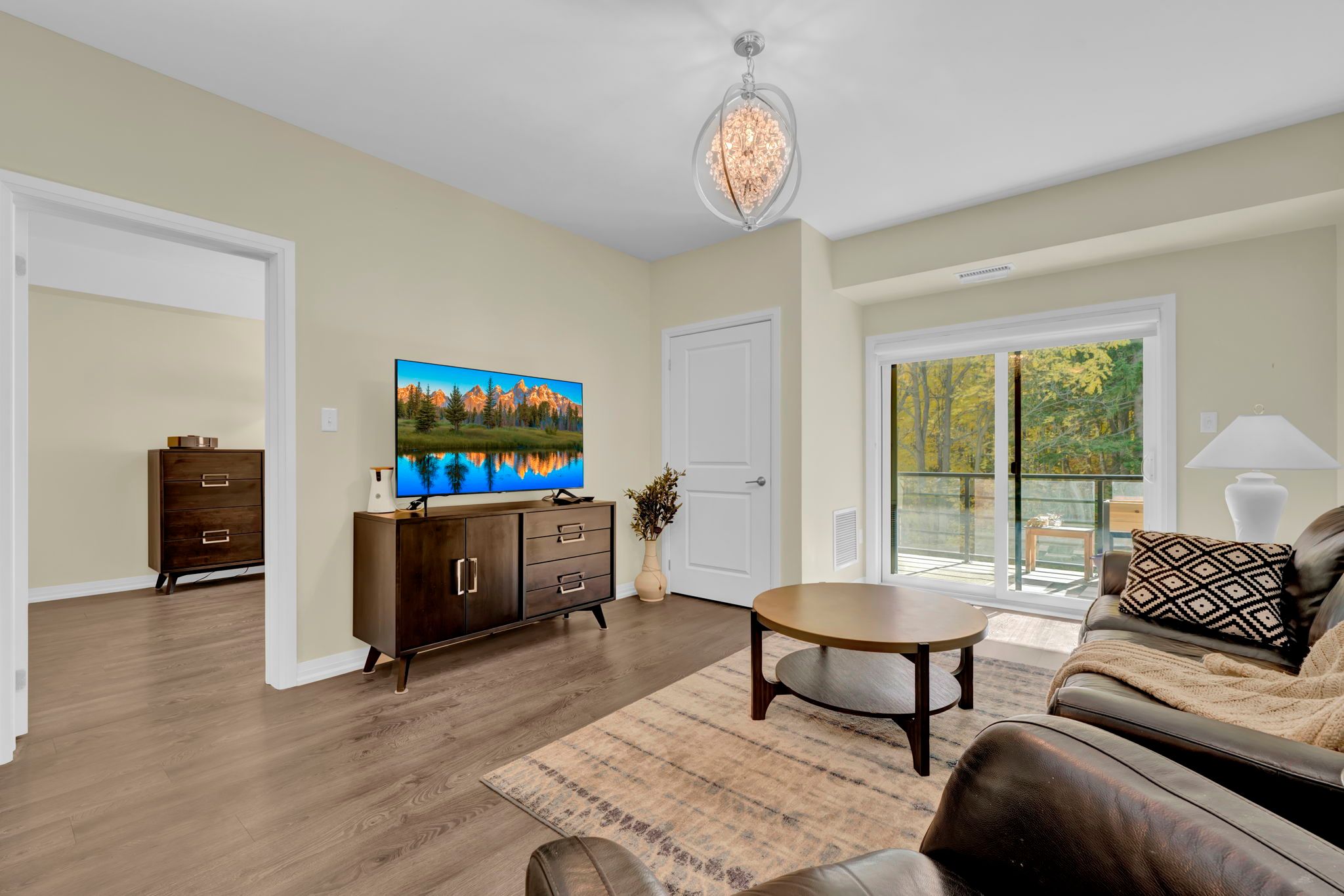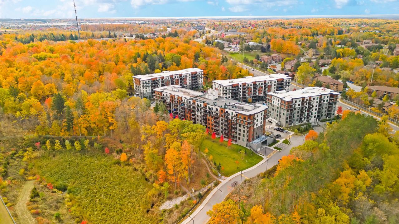 Looking for a luxurious condo that integrates art culture? Look no further than The Gallery Condominiums in Barrie! This art-inspired complex consists of 4 mid-rise buildings backing onto 14 acres of environmentally protected land with walking trails, boardwalks and lookouts, and a communal rooftop terrace overlooking Barrie. Don't miss out on this move-in-ready, spacious 2 bedroom, 2 bathroom condo with an oversized balcony that looks over the park, featuring custom upgrades including a high-end Bosch washer & dryer set, newer stainless steel Samsung appliances (French door with bottom freezer refrigerator, smooth-top convection oven, over-the-range microwave, and dishwasher), custom tile in the foyer/kitchen/dining areas, and upgraded light fixtures. Amenities include: Building security system, lobby, elevators, landscaped gardens, community rooftop terrace (Building 302), onsite superintendent, underground parking, visitors parking, wheelchair accessible, and barbeques allowed!Furnace and A/C includes a water sensor for preventative maintenance. Water filtration system is on rental contract with Reliance along with the Water Tank. Sliding door Hunter Douglas blinds will stay on the property on closing.