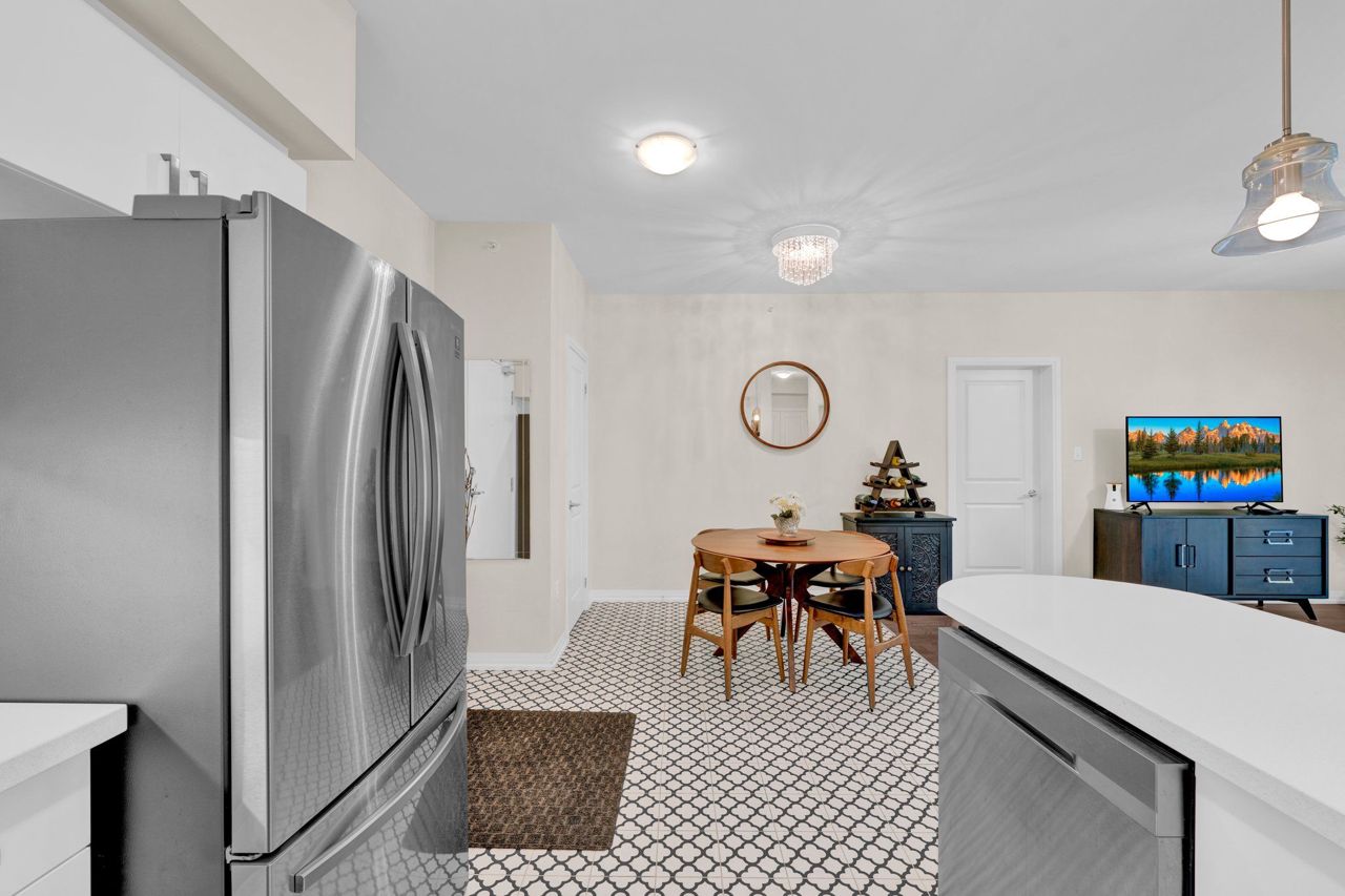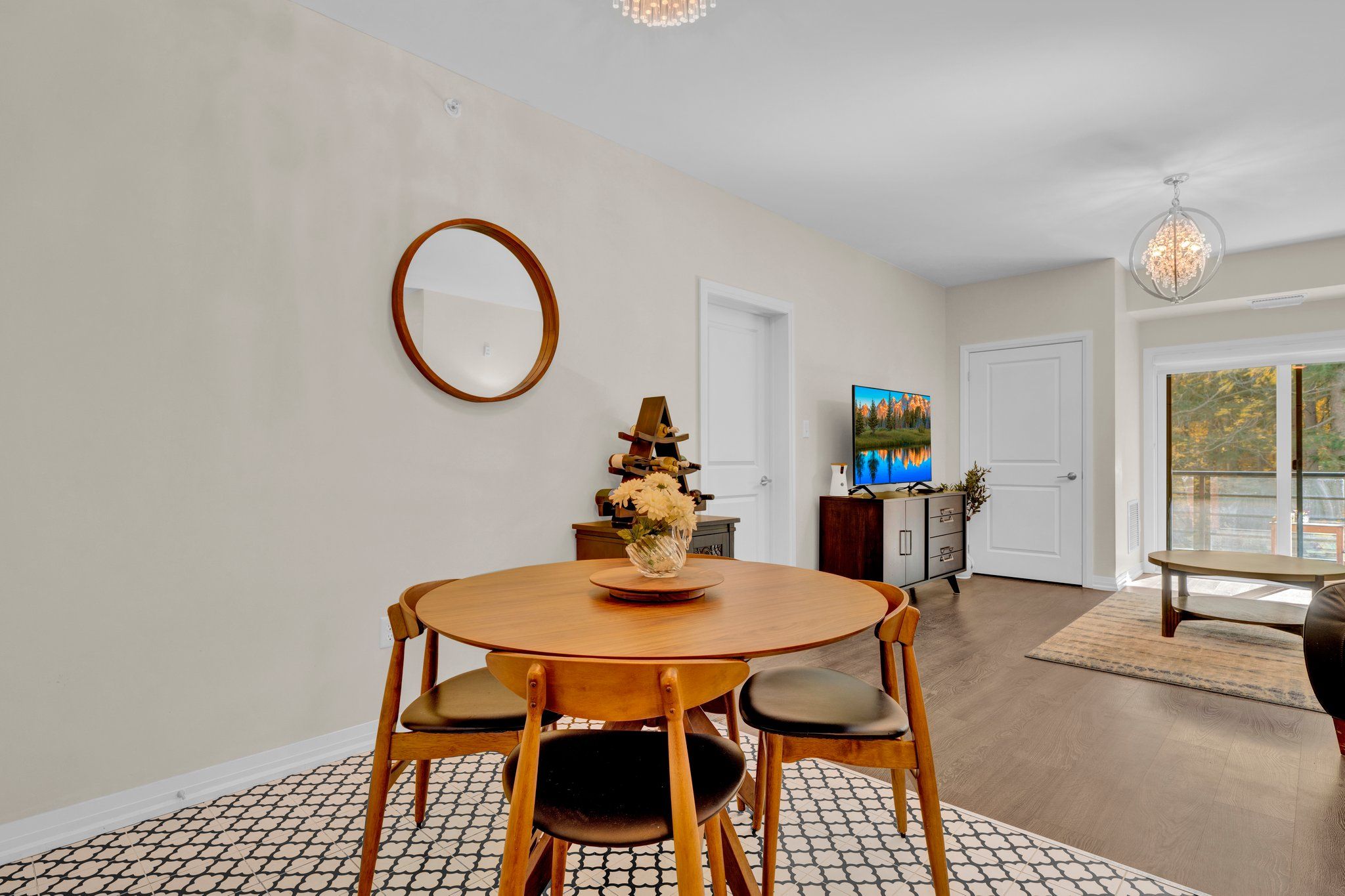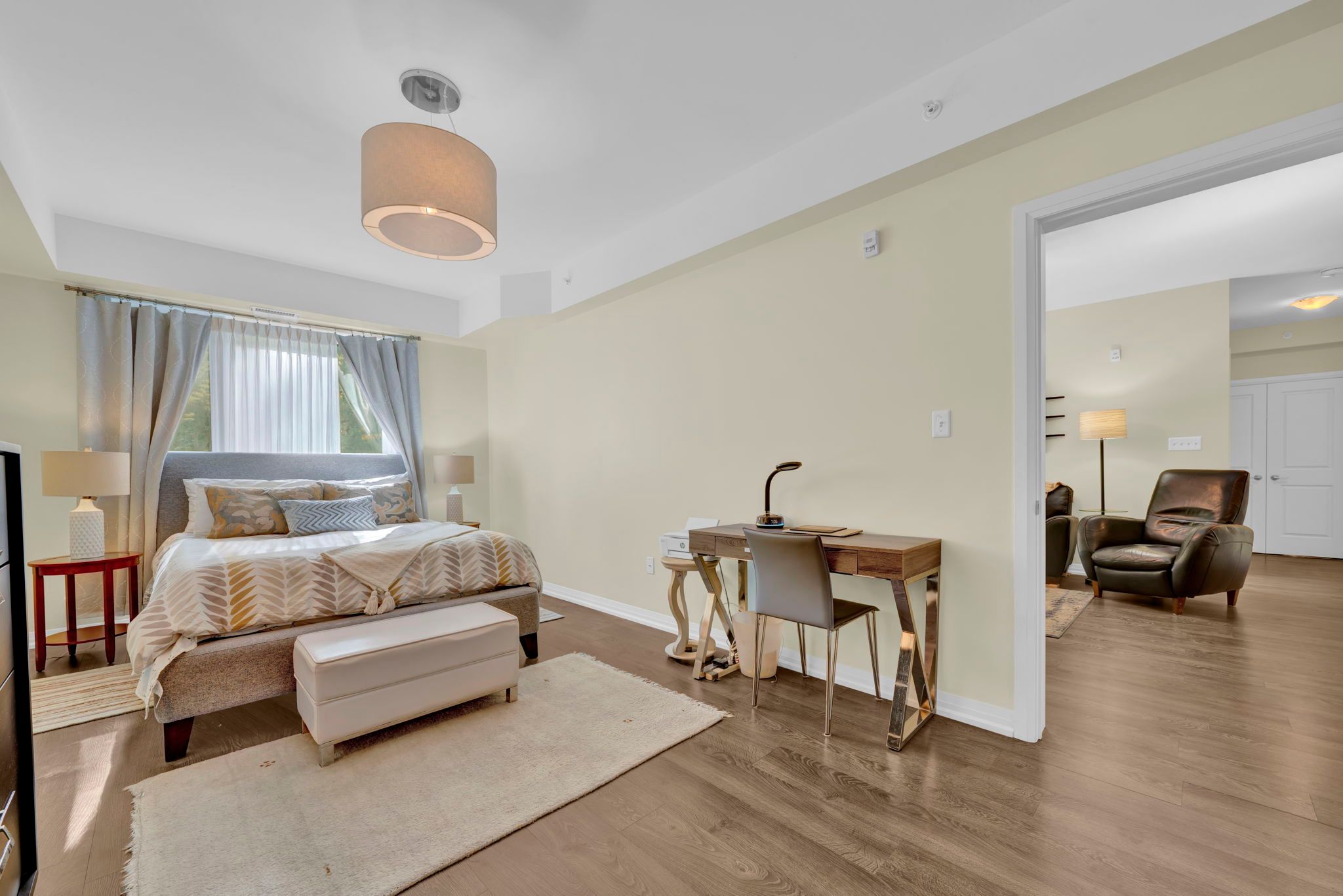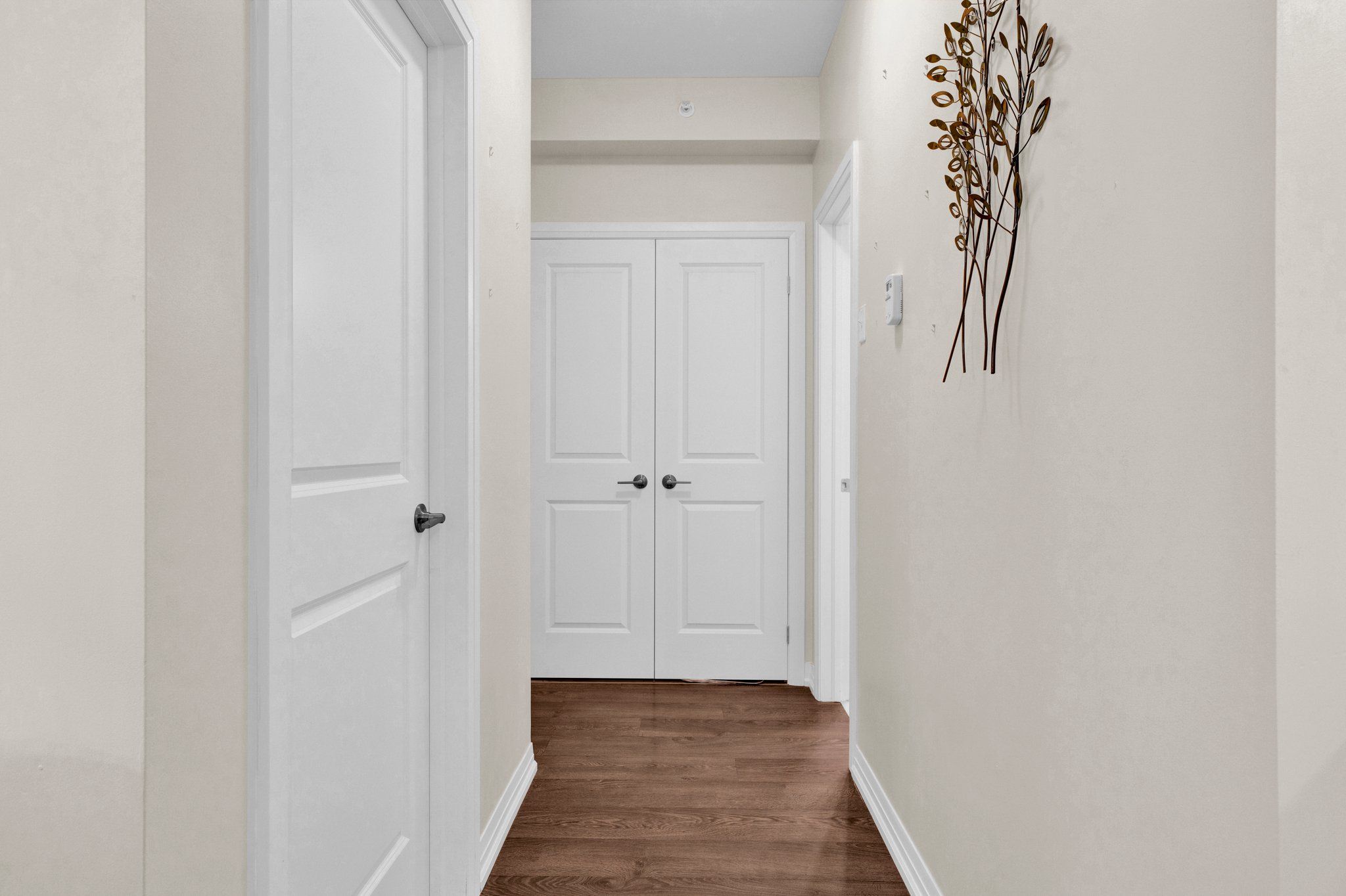 Looking for a luxurious condo that integrates art culture? Look no further than The Gallery Condominiums in Barrie! This art-inspired complex consists of 4 mid-rise buildings backing onto 14 acres of environmentally protected land with walking trails, boardwalks and lookouts, and a communal rooftop terrace overlooking Barrie. Don't miss out on this move-in-ready, spacious 2 bedroom, 2 bathroom condo with an oversized balcony that looks over the park, featuring custom upgrades including a high-end Bosch washer & dryer set, newer stainless steel Samsung appliances (French door with bottom freezer refrigerator, smooth-top convection oven, over-the-range microwave, and dishwasher), custom tile in the foyer/kitchen/dining areas, and upgraded light fixtures. Amenities include: Building security system, lobby, elevators, landscaped gardens, community rooftop terrace (Building 302), onsite superintendent, underground parking, visitors parking, wheelchair accessible, and barbeques allowed!Furnace and A/C includes a water sensor for preventative maintenance. Water filtration system is on rental contract with Reliance along with the Water Tank. Sliding door Hunter Douglas blinds will stay on the property on closing.