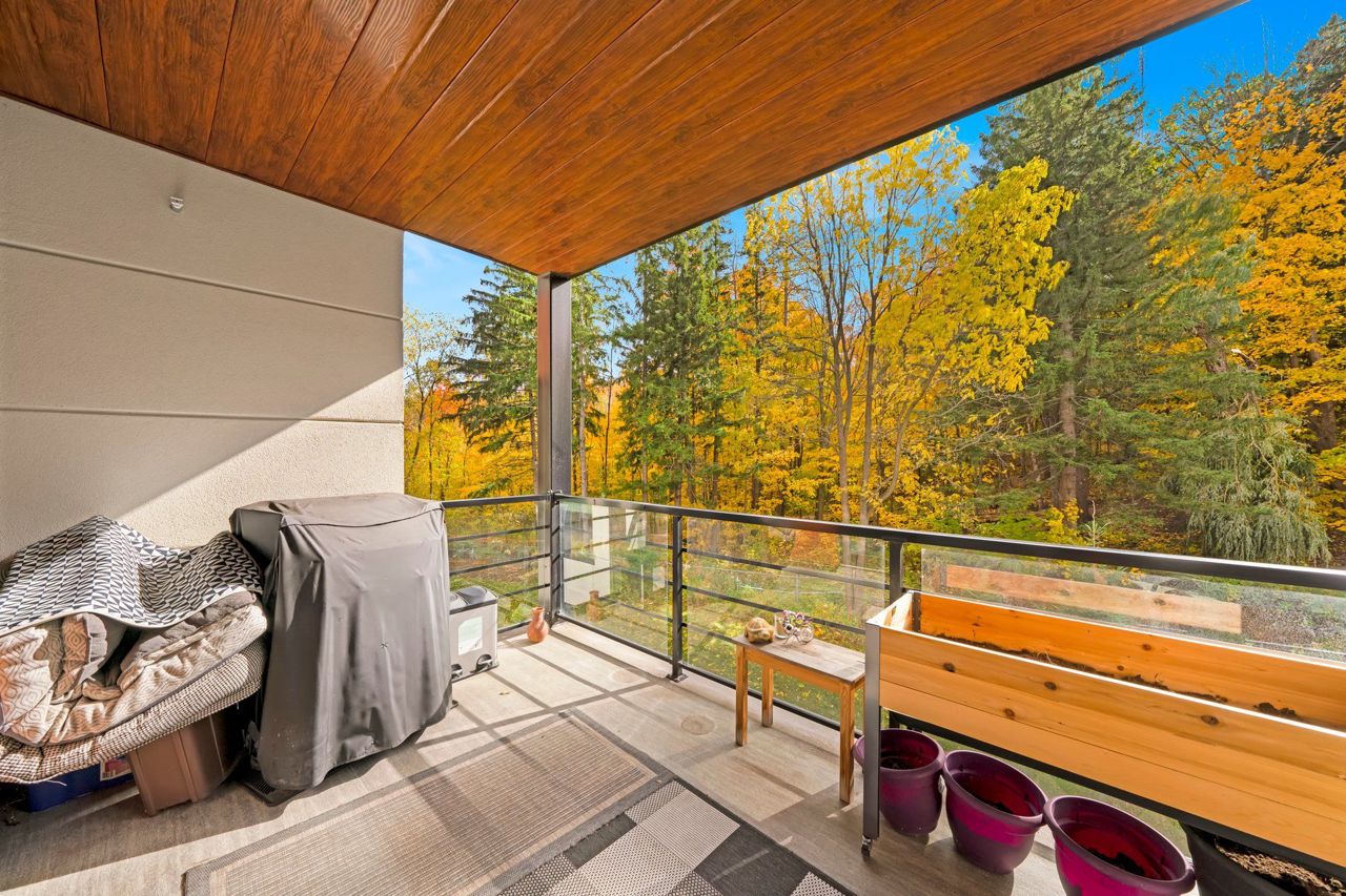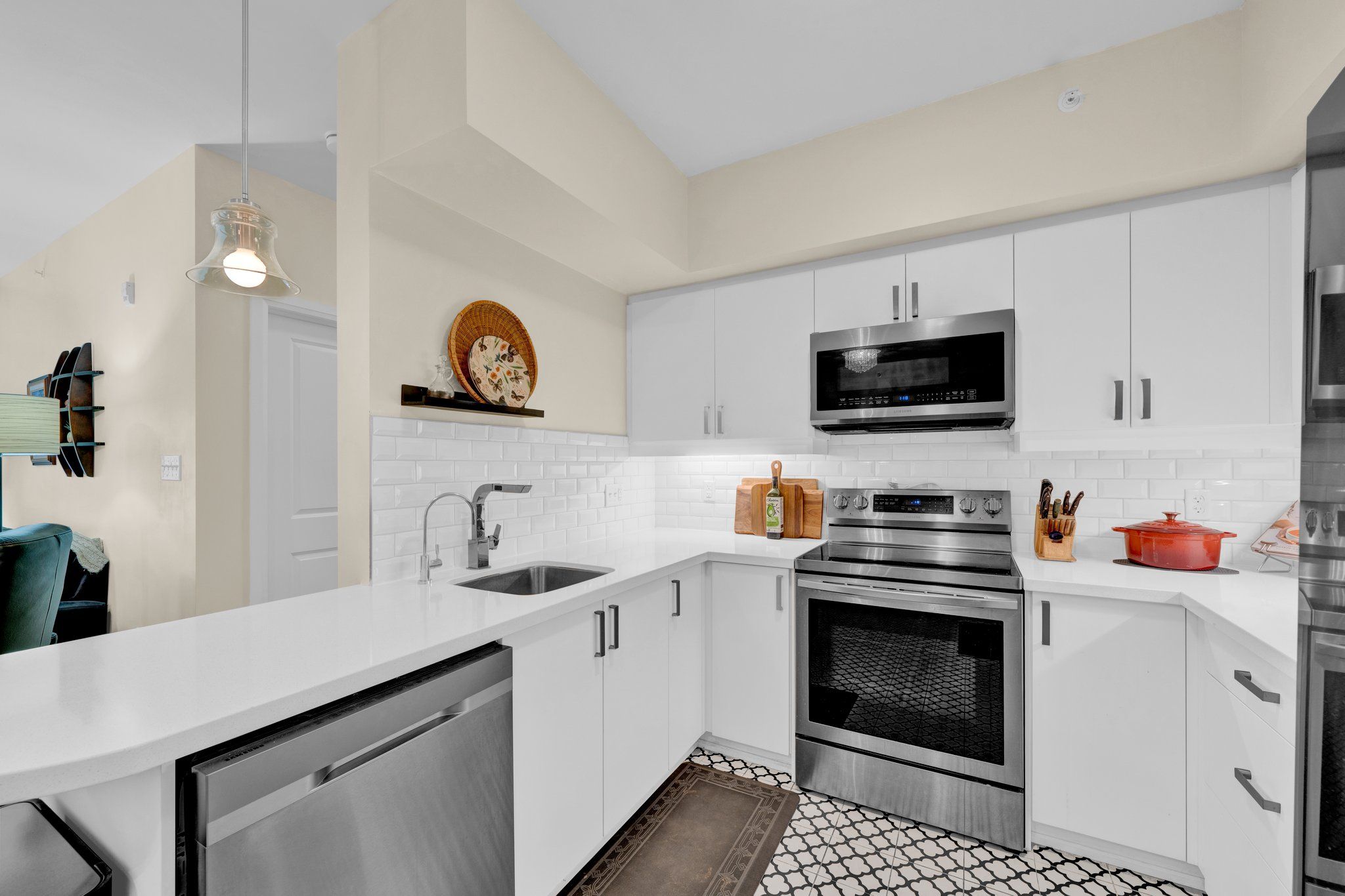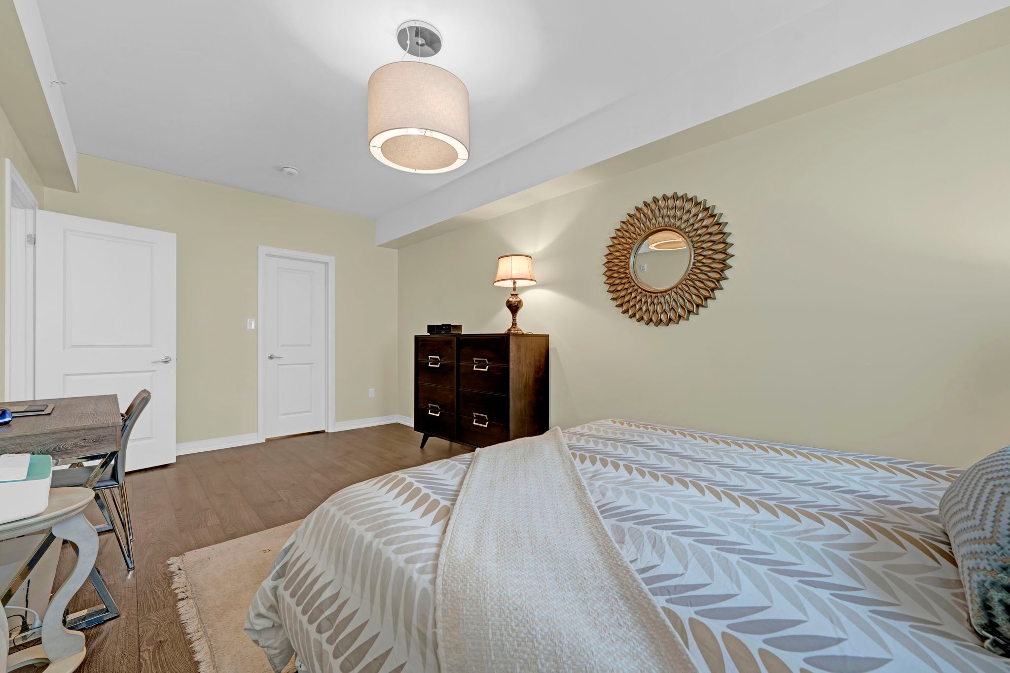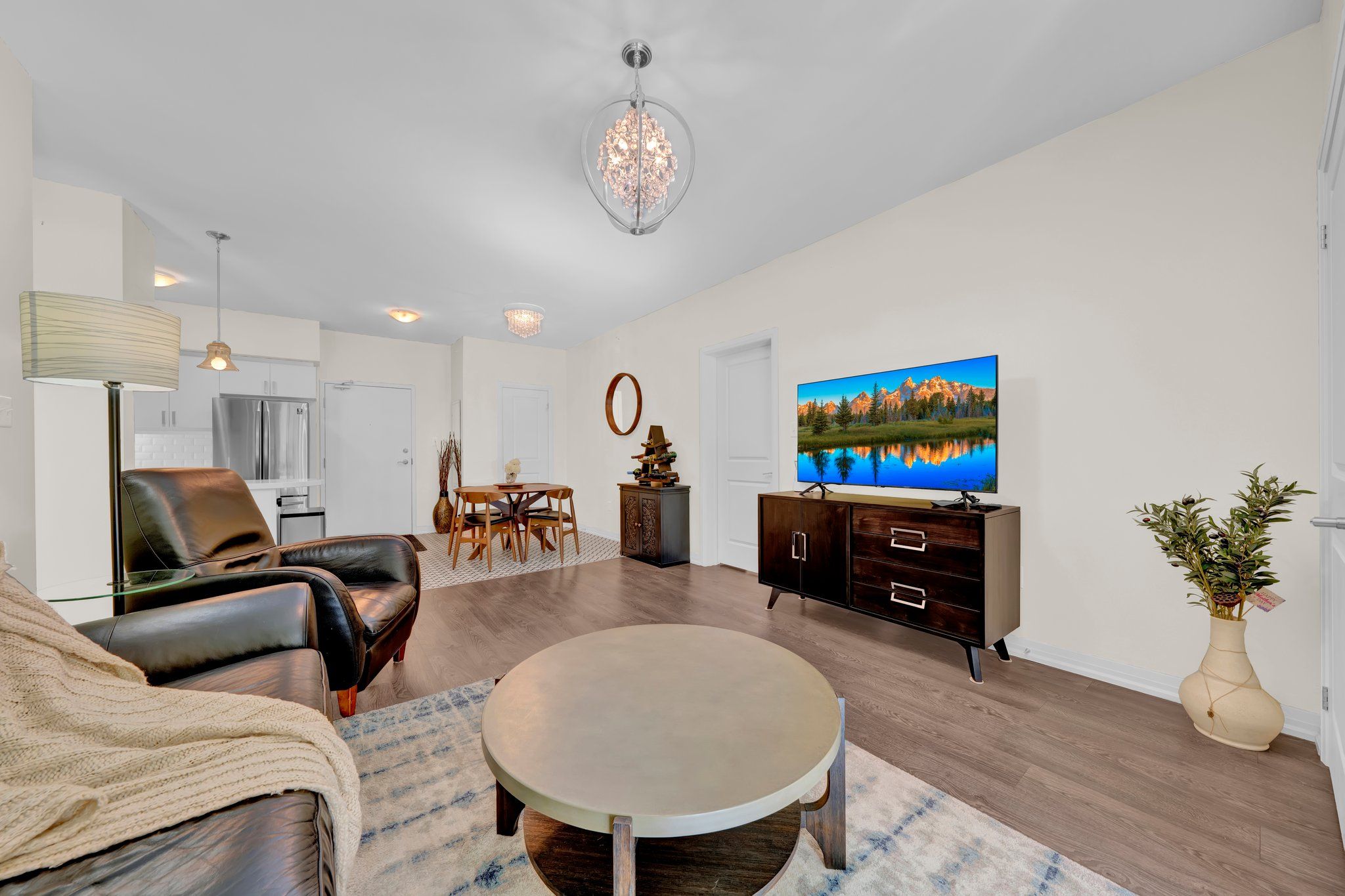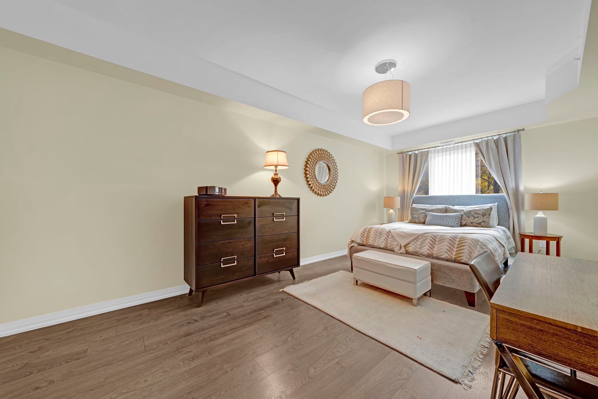 Looking for a luxurious condo that integrates art culture? Look no further than The Gallery Condominiums in Barrie! This art-inspired complex consists of 4 mid-rise buildings backing onto 14 acres of environmentally protected land with walking trails, boardwalks and lookouts, and a communal rooftop terrace overlooking Barrie. Don't miss out on this move-in-ready, spacious 2 bedroom, 2 bathroom condo with an oversized balcony that looks over the park, featuring custom upgrades including a high-end Bosch washer & dryer set, newer stainless steel Samsung appliances (French door with bottom freezer refrigerator, smooth-top convection oven, over-the-range microwave, and dishwasher), custom tile in the foyer/kitchen/dining areas, and upgraded light fixtures. Amenities include: Building security system, lobby, elevators, landscaped gardens, community rooftop terrace (Building 302), onsite superintendent, underground parking, visitors parking, wheelchair accessible, and barbeques allowed!Furnace and A/C includes a water sensor for preventative maintenance. Water filtration system is on rental contract with Reliance along with the Water Tank. Sliding door Hunter Douglas blinds will stay on the property on closing.