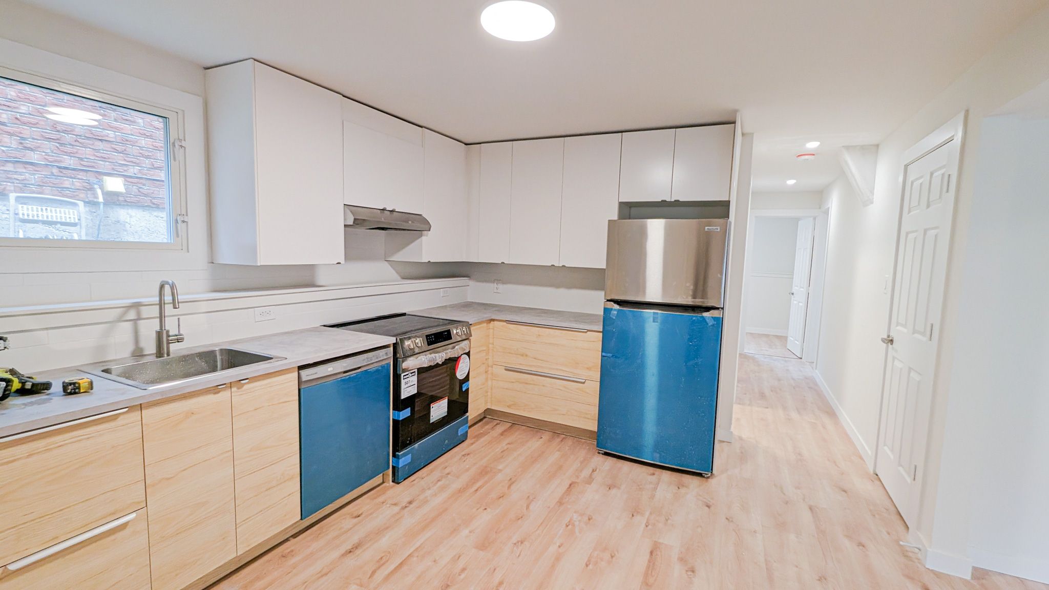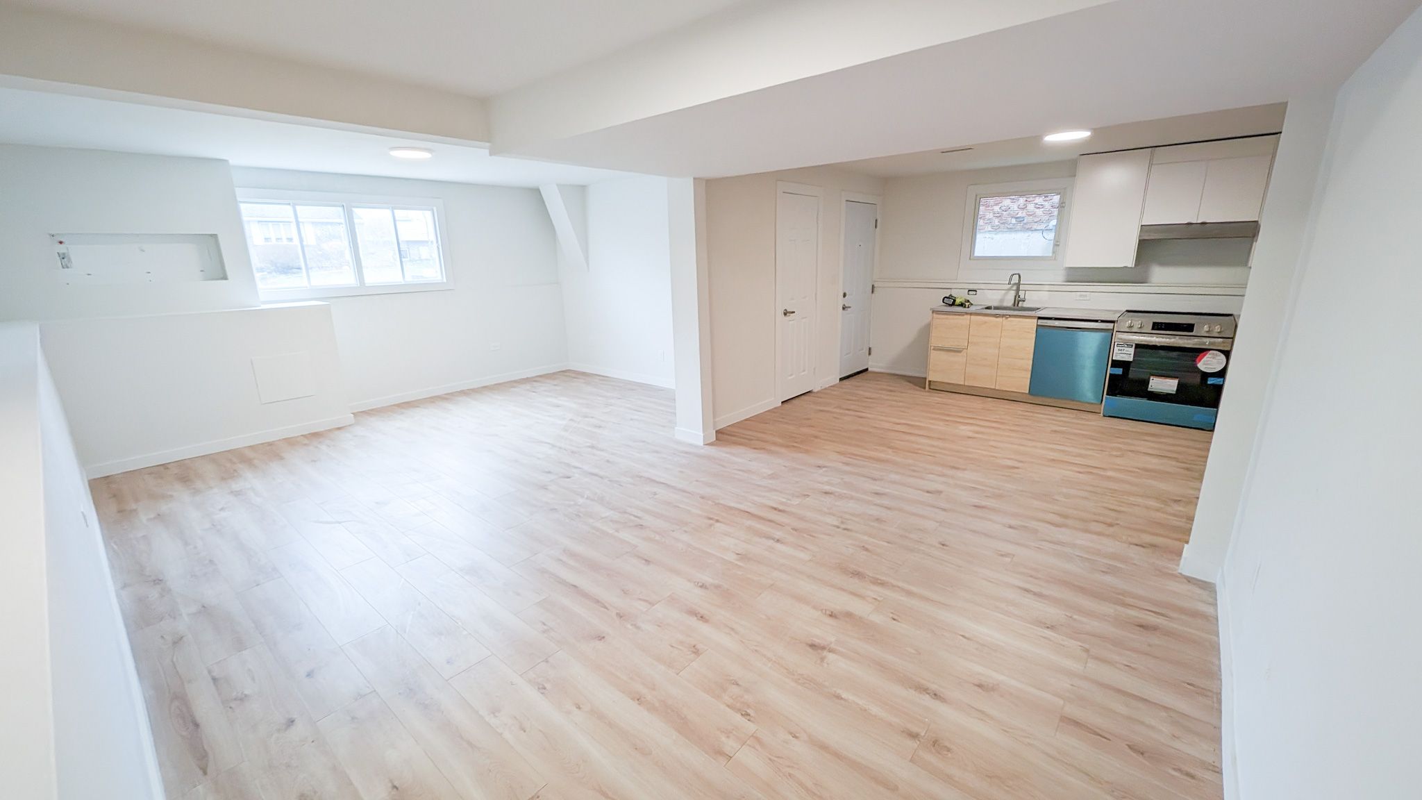 NEWLY renovated lower unit - Above Ground Large Windows, Spacious Two Bedroom. 1 Min walk to bus stop line 1B. Great School area, safe & quiet neighbourhood. Bike ride to the Go station, Rec center and Downtown shops. Prestigious figure of high demand Allandale community area with no houses at back, driveway parking.Brand New Stainless Steel kitchen appliances. Brand New washer/dryer. 8 1/2 FEET ceiling. Two driveway parking spot - tandem parking. ALL interior brand new.