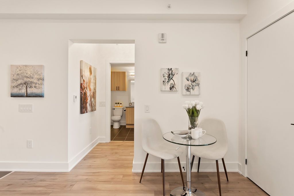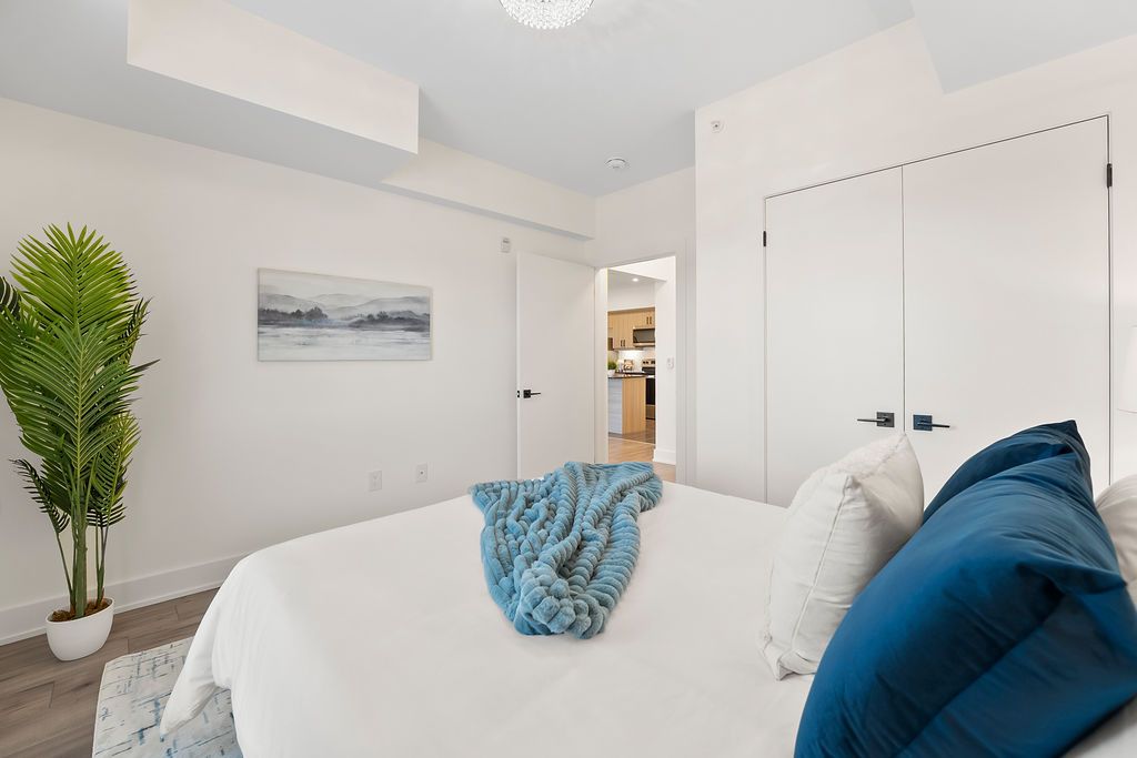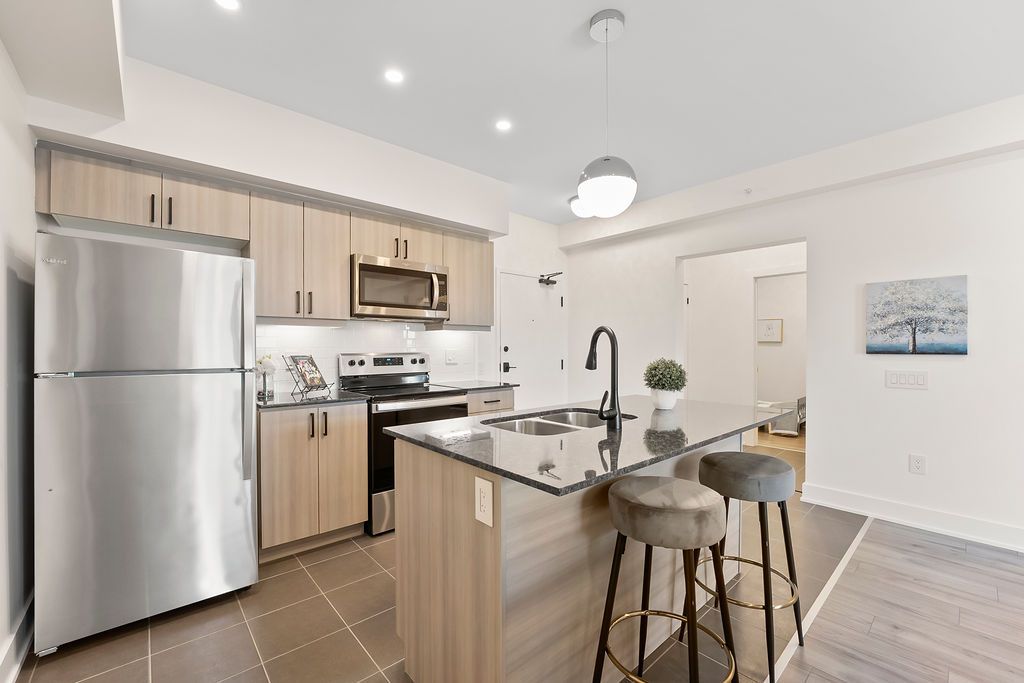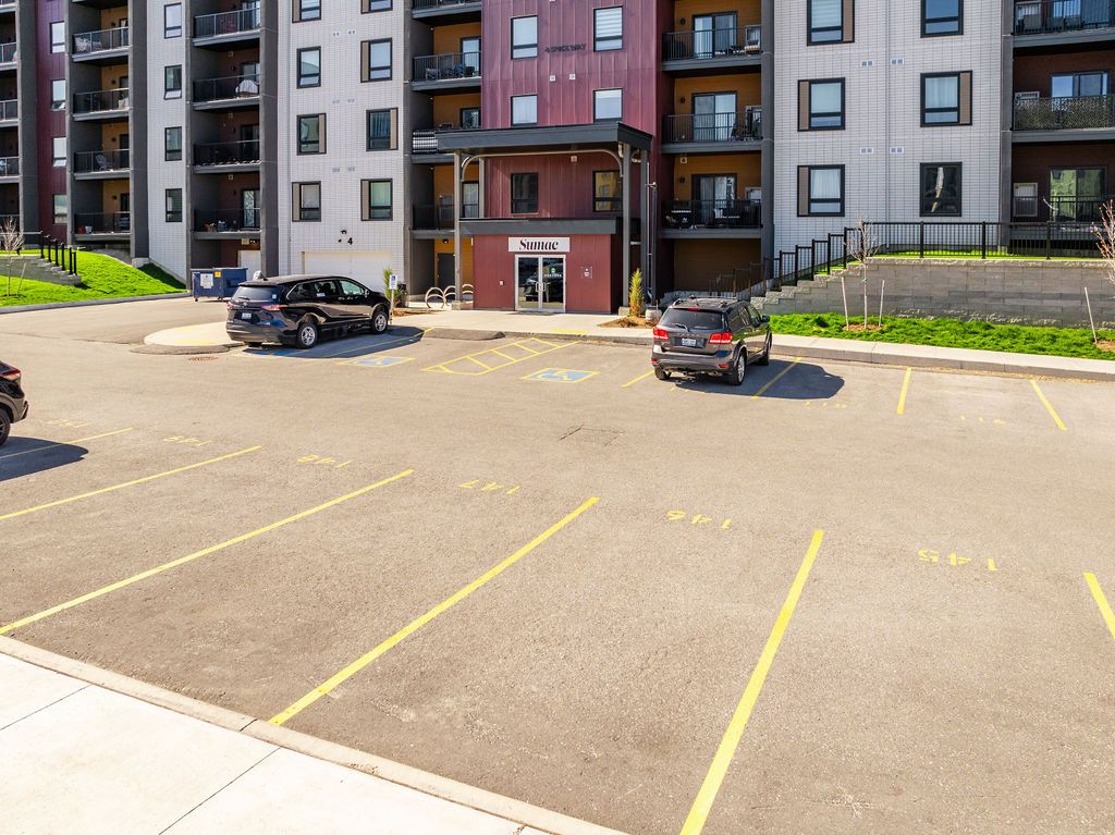 Stunning! This gorgeous condo suite, located in the coveted Bistro 6 community in southeast Barrie, combines the best of luxury and practical living. You'll fall in love with 800 sq. ft. of bright and open living space featuring a den that provides a versatile space a bedroom, an office, storage, or a walk-in closet, perhaps? Thoughtfully and extensively upgraded, this lovely suite boasts 9 smooth ceilings, premium flooring throughout, pot lights in kitchen and living area, sparkling light fixtures, and superior trim and doors. The bright, modern kitchen features an impressive island, backsplash, tri-colour valence lighting and stainless steel appliances including an over-the-range microwave. Indulge in granite countertops, soft-close cabinet hinges, brand new Moen fixtures, and chic finishes within the bathroom and kitchen. With in-suite laundry and a walkout to your private balcony with gas BBQ hook-up, convenience and relaxation await you. Imagine being steps away from exciting amenities such as the communal spice kitchen and BBQ area, fully equipped gym, and basketball court. You'll appreciate the quick walk to the GO Station, and minutes drive to shopping, restaurants and Hwy 400. Look no further to experience condo living at its absolute finest! Schedule a showing today.
