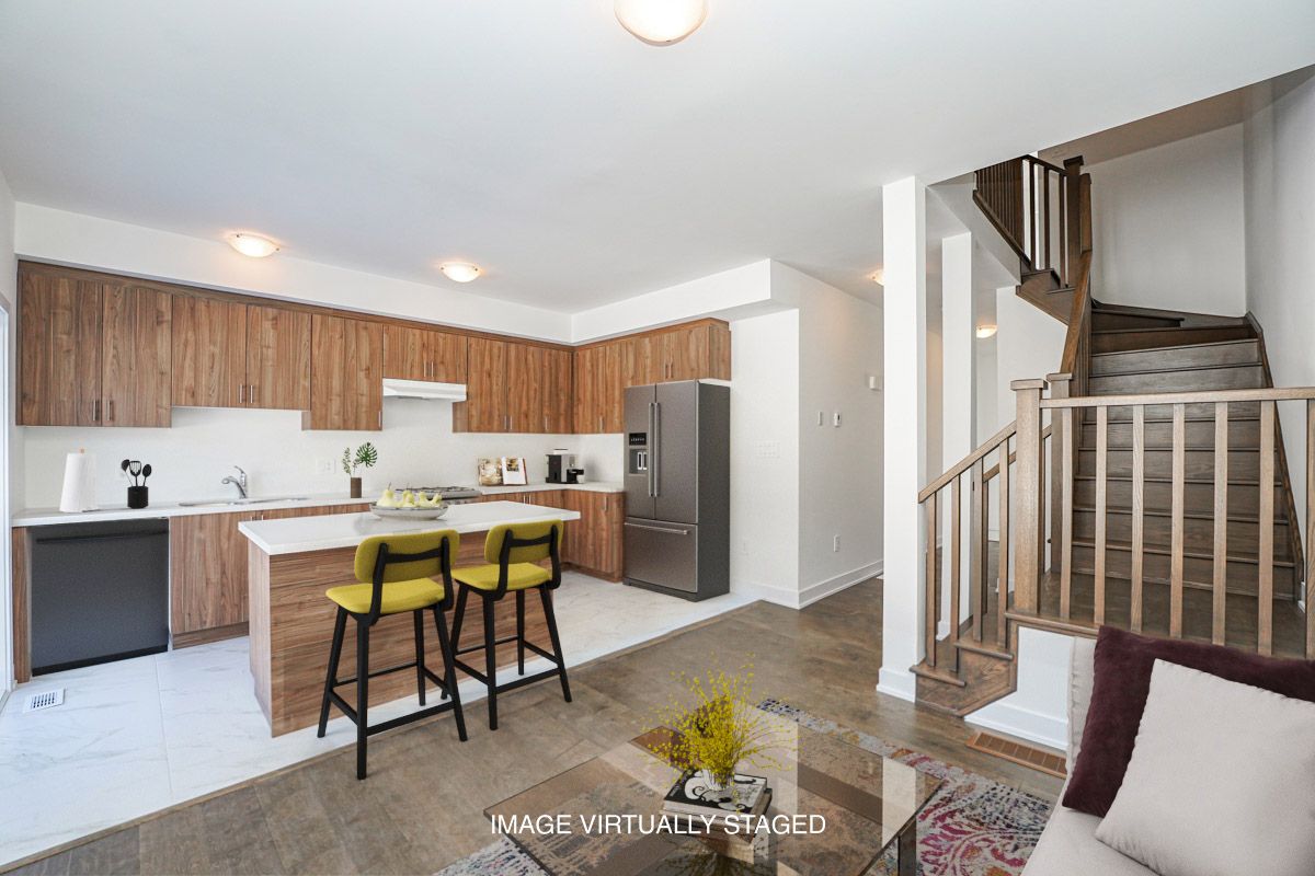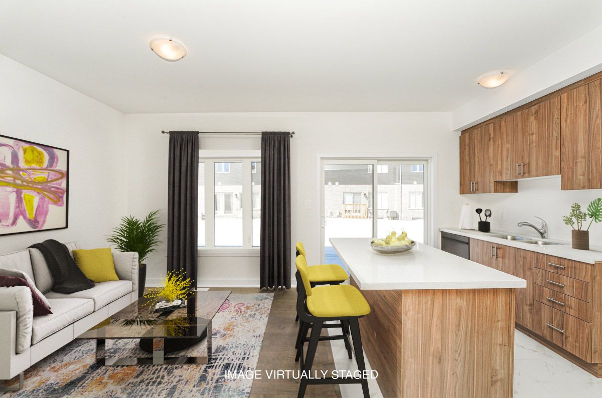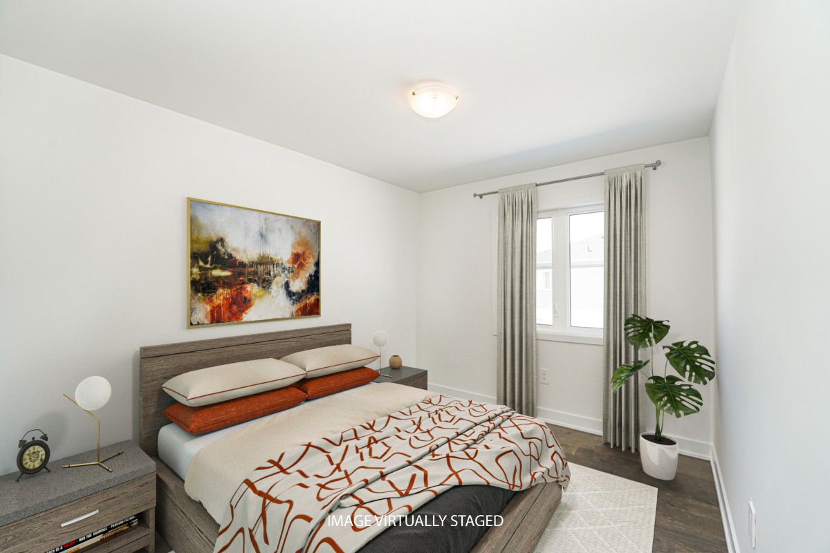Welcome To This Brand New 3 Bedroom 2.5 Bath 2-Storey Freehold Townhouse In Southeast Barrie At The Yonge & Go Development. This Lovely Home Features 9 Foot Ceilings, Upgraded Hardwood Flooring Throughout Main & Upper Levels. Modern Eat-In Kitchen With Stone Countertops & Walk-Out To Backyard. Open Concept Great Room With Tons Of Natural Light. Hardwood Staircase To The Second Level Which Offers Laundry, Large & Bright Primary Bedroom With Walk-In Closets & 4Pc Ensuite, 2 Additional Bedrooms, And a main 4Pc Bath. 1 Car Garage. Driveway Fits 1 Car. Conveniently Located Close To Go Station, Schools, Parks, Shopping, Transit, Restaurants & Hwy 400. Property is Virtually stagedProperty And Room Dimension Provided By Bradley Homes. Buyer to verify all information