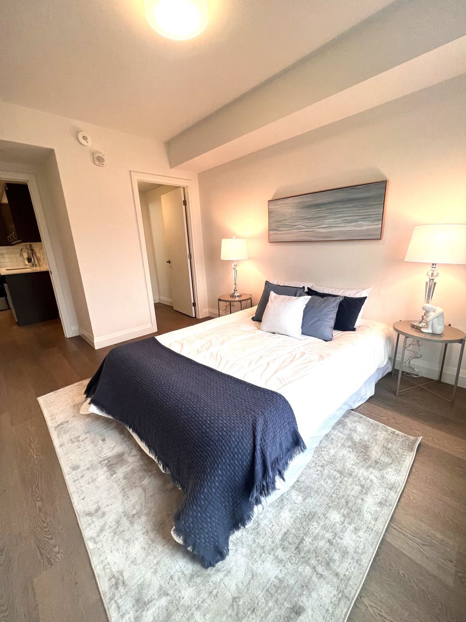 Lake front living at its best! Check out this big and bright two bedroom condo on Little Lake in Barrie. Open concept living / kitchen area makes this an entertainers dream. The kitchen is equipped with upgraded appliances, hood vent and a functional eat-at island. Extra large outdoor patio with a direct view to the lake. Check out the amenities including a rooftop terrace, overlooking the lake, gym, party room, pet spa, games room, security guard, 2 parking spaces and more. Fantastic building with lots of community activities. Small Pets welcome.2 parking included in lease.