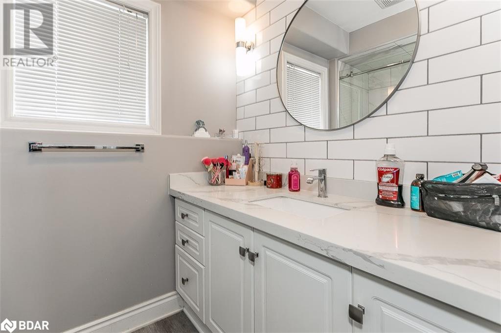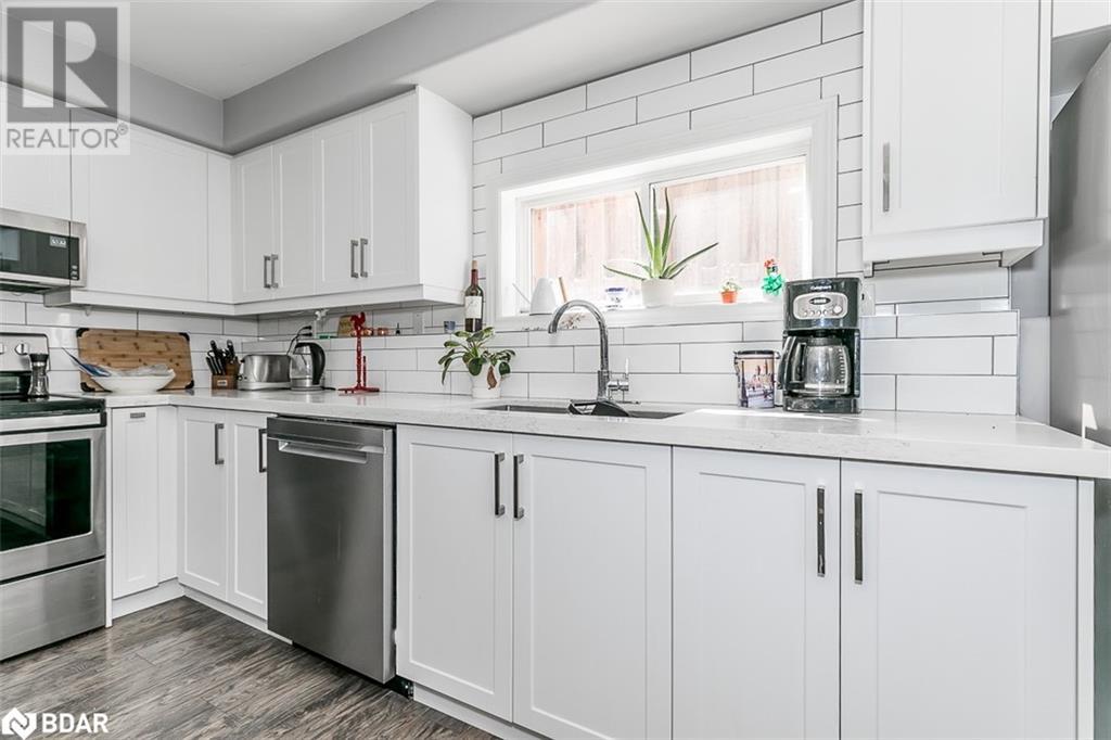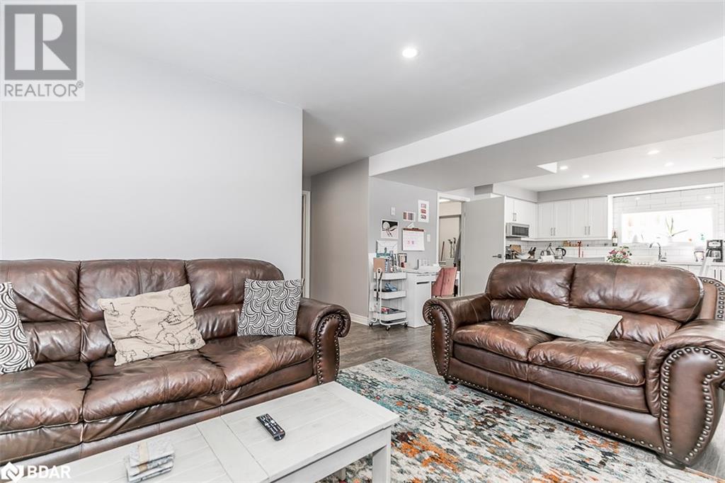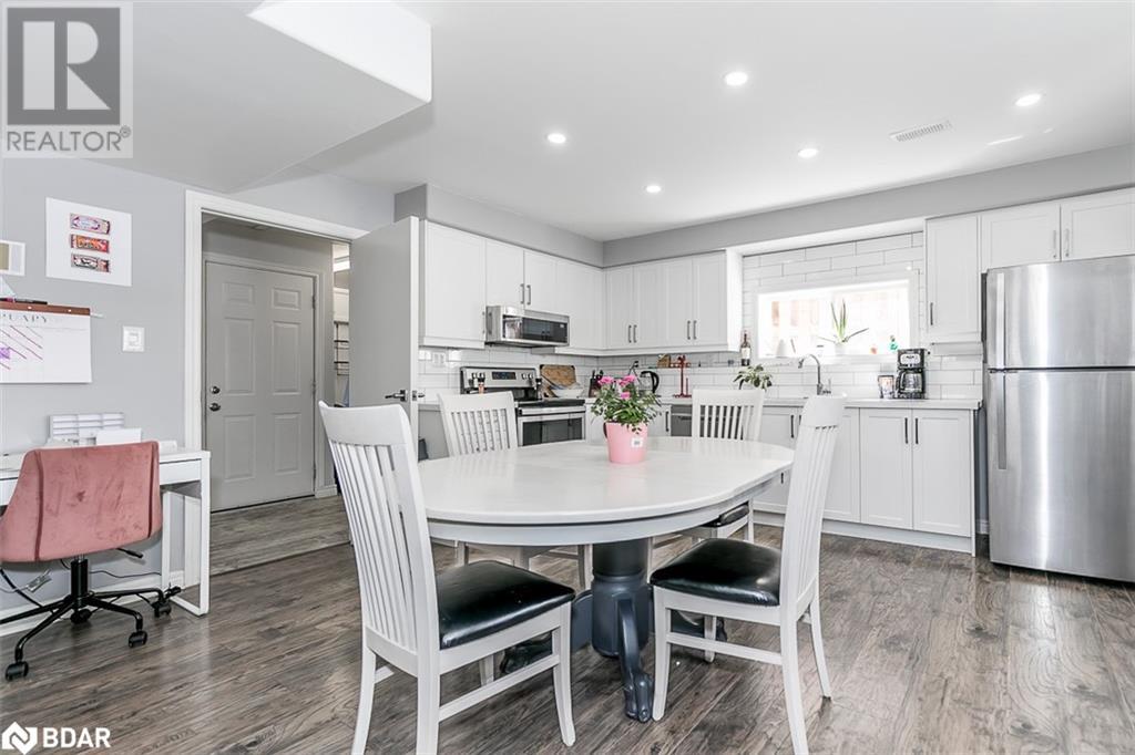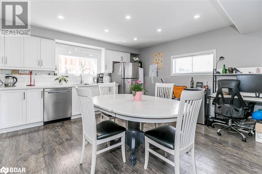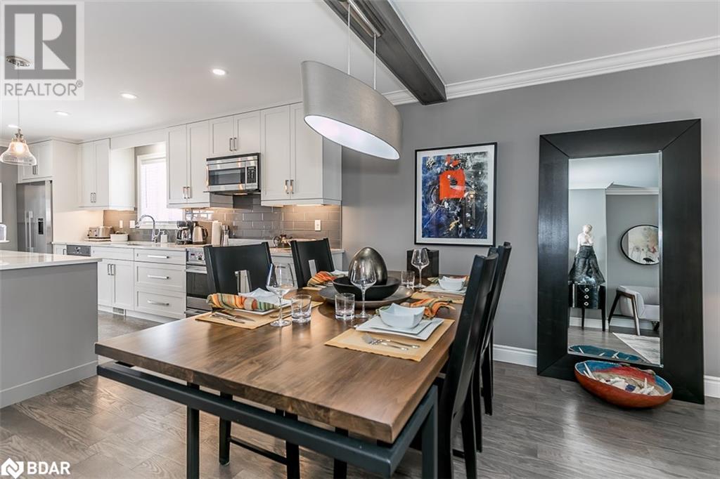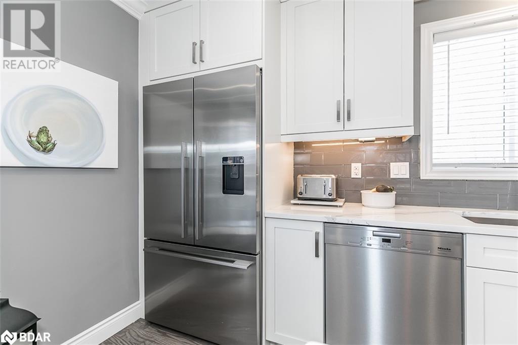 Stunning and updated 2274 sqft home with inlaw suite and separate entrance. Custom kitchen with quartz countertops, high end stainless steel appliances, and large island with bar stools. Open concept living and dining area create a bright and inviting entertainment space. Exquisite finishings include over-sized baseboards, engineered hardwood flooring, pot lights, and exposed beam. 2 bedrooms including a large primary suite with updated ensuite. Renovated basement is ideal for in-laws with separate kitchen, bathroom, bedroom, and laundry. Large deck off kitchen o/looking fully fenced yard with newer landscaping. A Private Oasis in the City. Shingles (2018) with 50 year warranty. Sought after location close to schools, Barrie Country Club, Sports Dome, Community Centre, Georgian Mall, Georgian College, RVH, and quick access to highway 400. (id:22211)