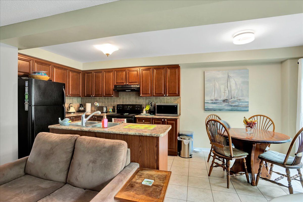 Charming 3-bed townhome in sought-after South End Barrie. 1500+ sq ft, hardwood & tile on main floor, open concept kitchen with island & breakfast nook, leading to deck & beautiful yard. Spacious master with full ensuite & soaker tub. Recent upgrades: new roof, shingles, downspouts (2022), high-efficiency furnace (2018), Corian kitchen countertops (2022), bathroom sinks & vanity tops (2022). Fenced yard, convenient breeze-way door to garage. Garage with high ceilings & storage shelves. Excellent opportunity to own a well-maintained property in a prime location. Don't miss out!