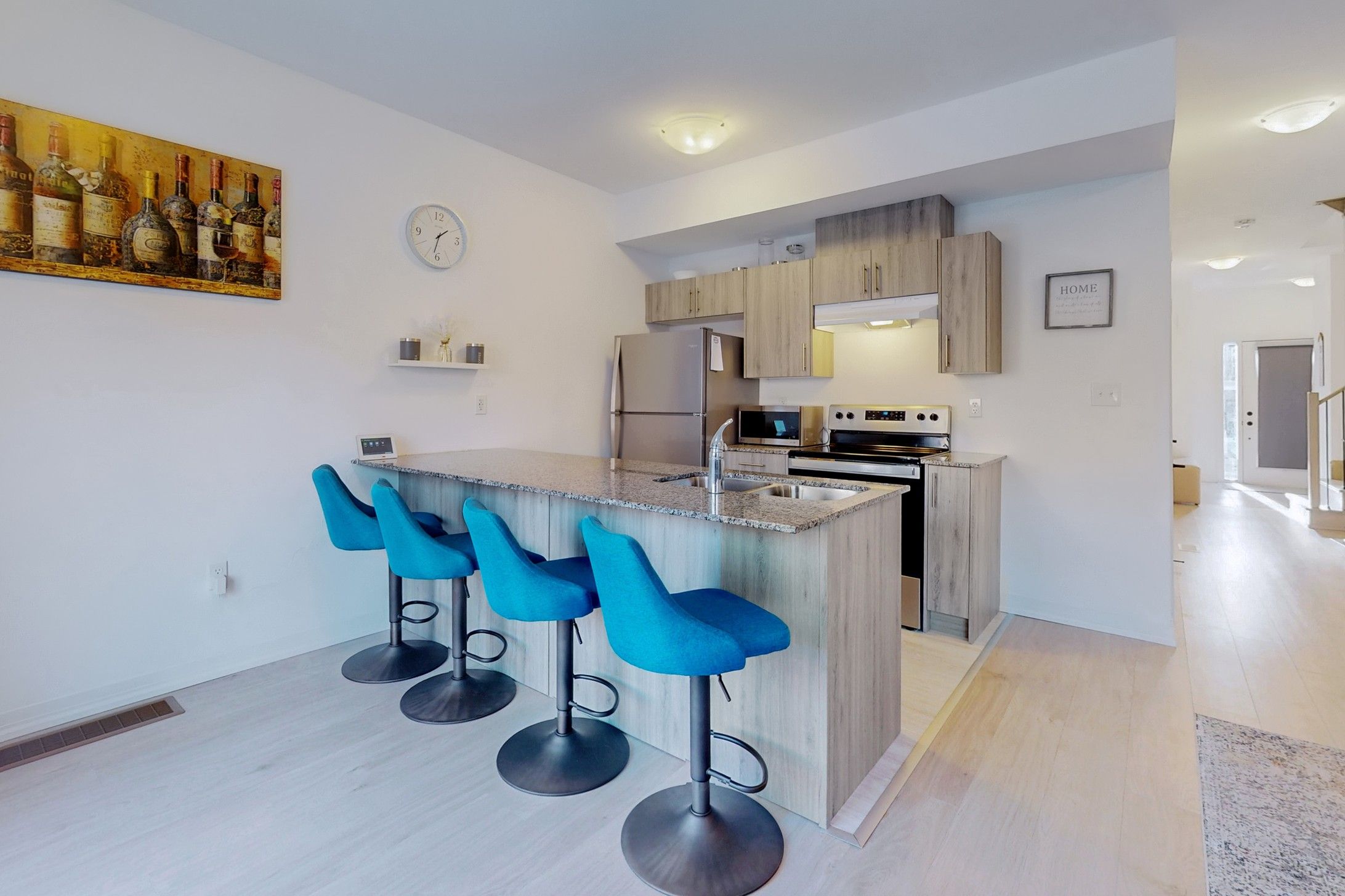 Short or Long Term Rent, Fully Furnished, Price - all inclusive! Beautiful Sun Filled Bright Open Concept Layout 1291 Sq Feet Unit 2 Story, 3 Bed, 3 Bath, Townhouse Modern Kitchen With Granite Counter, Direct Entry From Garage, Brand New Appliances, Master Bedroom 4 Piece Ensuite, Laundry On Second Floor, Basement Is Unfinished With Large Window, Just Minutes Away From Go Transit, Waterfront, Shopping, Schools, Hwy, Downtown Barrie.Direct Entrance From Garage.