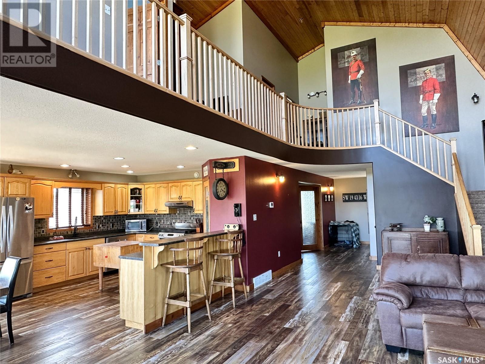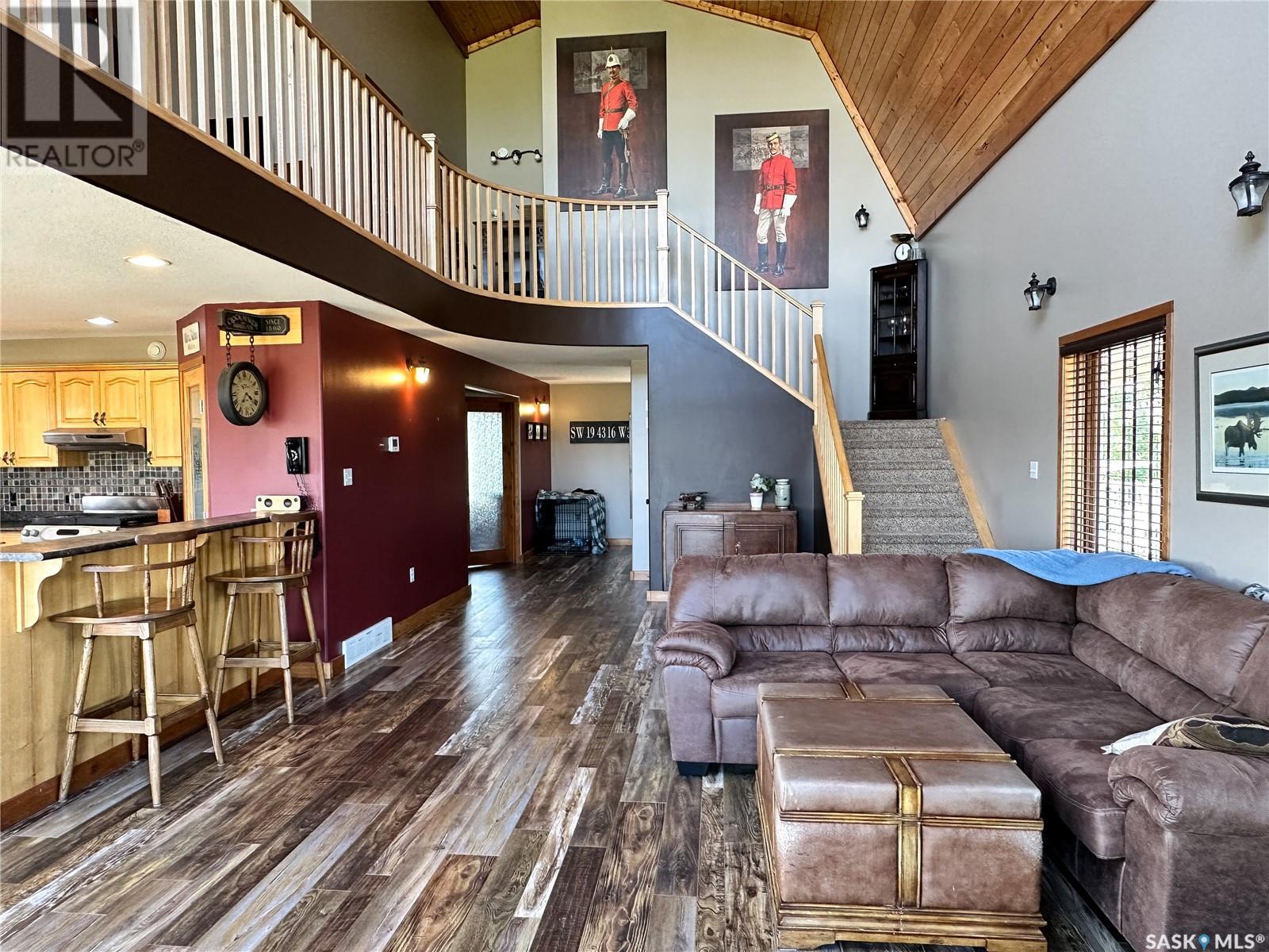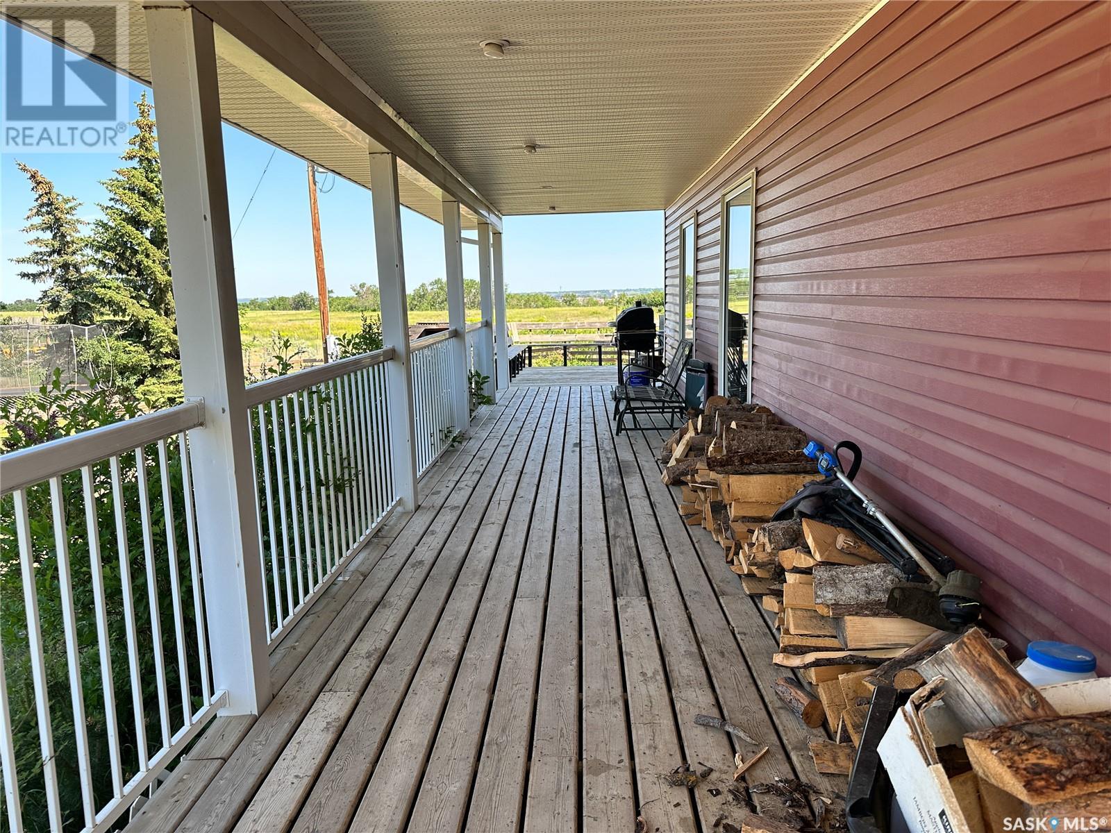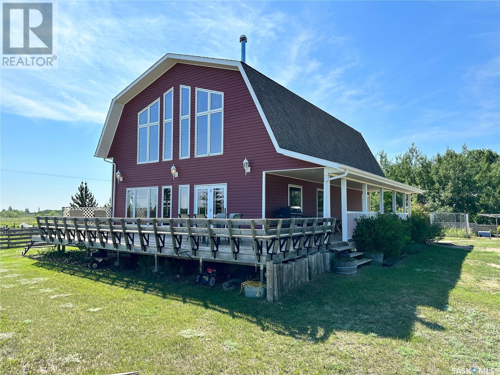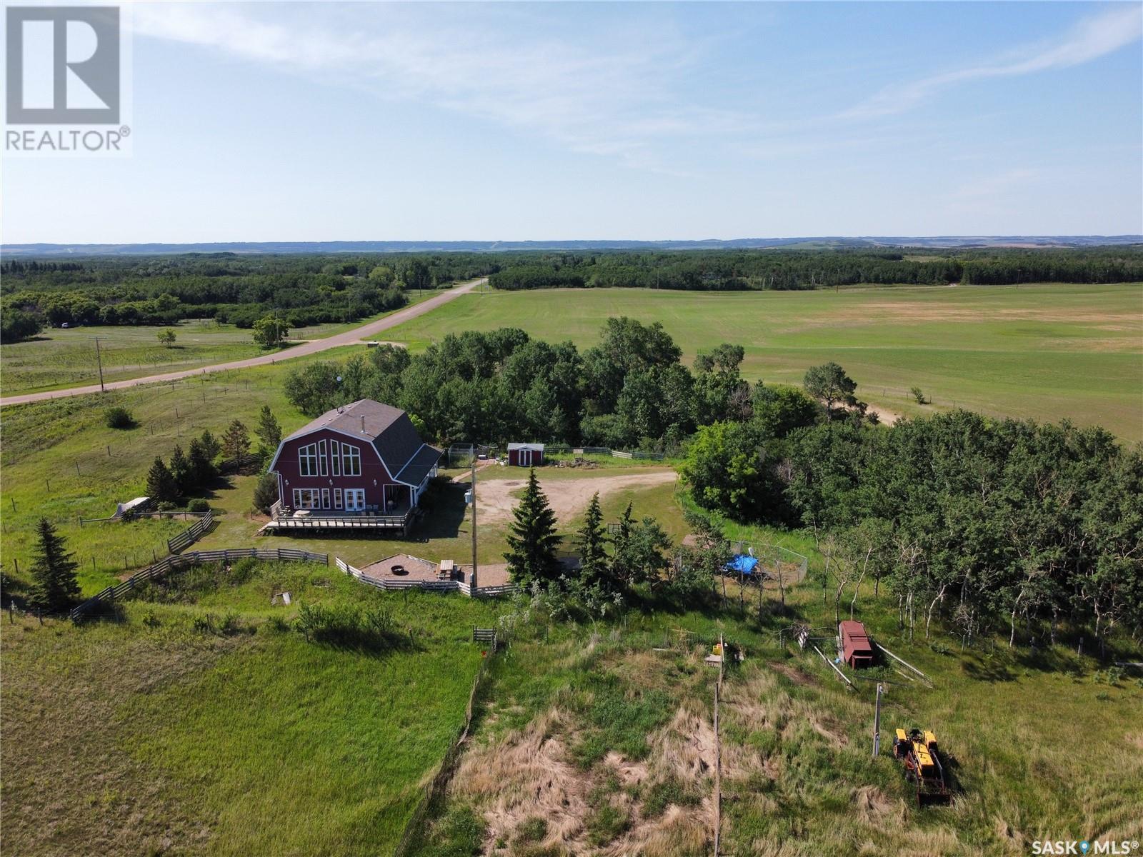 Wow!! Check out this gorgeous, one of a kind acreage just minutes from town! Located just South of Battleford, this property is extremely unique as it is still within the town limits! There is a total of 129.37 acres with some pretty amazing views overlooking the town and to top it off access to the river as well! The house was built in 2005 and definitely is a show stopper. It is a 2-storey home but the ceiling is vaulted over the living room giving it that wow factor you might be looking for. The main floor consists of a den, a 3-piece bathroom with laundry, a huge living room open to the living room and kitchen and large dining room. The living room has a gorgeous wood stove complete with stone work going all the way up to the second level, it really is amazing. The kitchen has a ton of storage complete with a pantry and stainless steel appliances which all remain. Head on upstairs where you get an amazing view out the large windows overlooking the beautiful land and you will find 3 bedrooms and a full bath which is a great size and is connected to the master bedroom. The master bedroom was placed at the front of the house overlooking the land, a perfect place to end your day. The basement has a great start, it is framed, drywalled, and there are rough ins for a bathroom, it just needs your personal touch! Your kids will love the rock climbing wall down there, so cool!! The basement foundation is top quality ICF and the house is 2 x 6 construction with 1" styrofoam insulation underneath the siding so you know it will be an efficient home. Head on outside to the wrap around porch that every acreage needs, where you can sit and relax in the peace and quiet. There is a barn with power to it and 4 watering bowls in the corrals! Because the house is still located in the town there is garbage pick up right at the road, bonus!! You really need to see this amazing property in person!! Call today to check out this gorgeous acreage and start living the life you deserve! (id:22211)