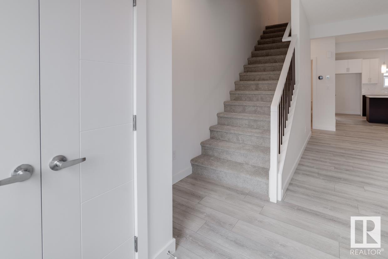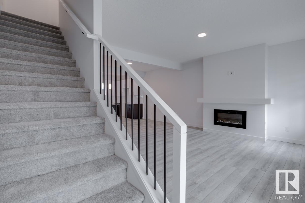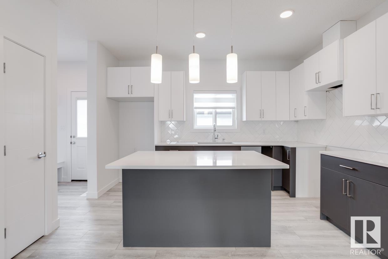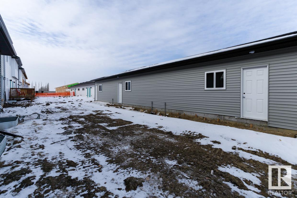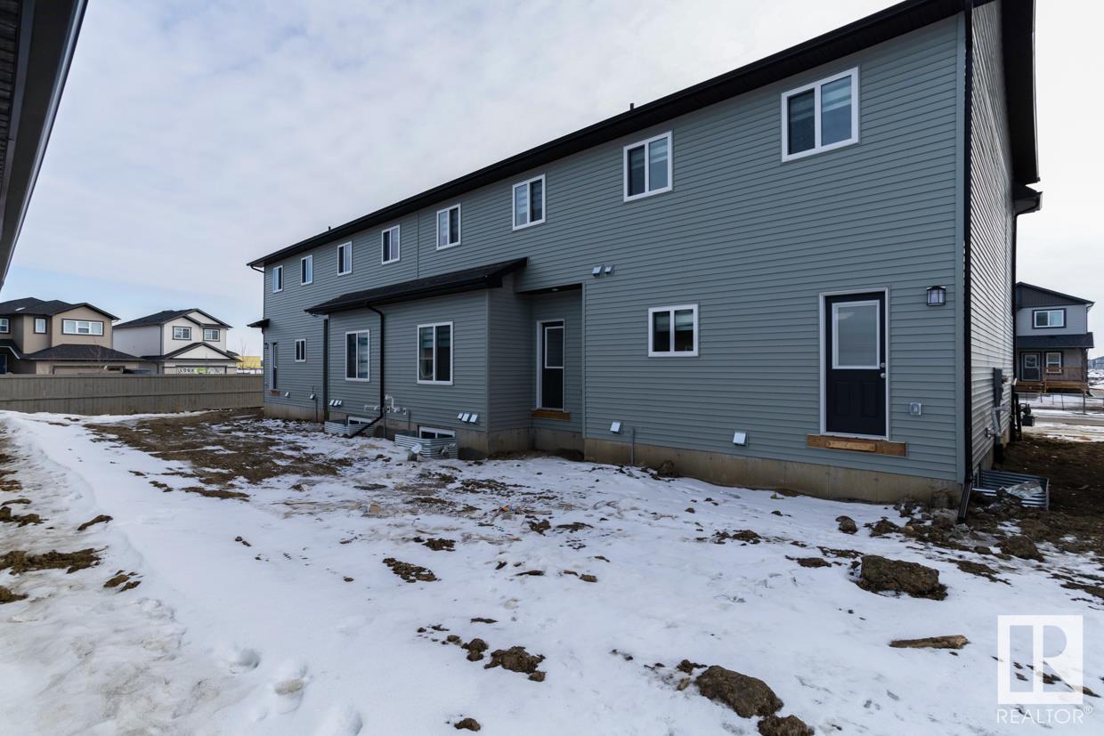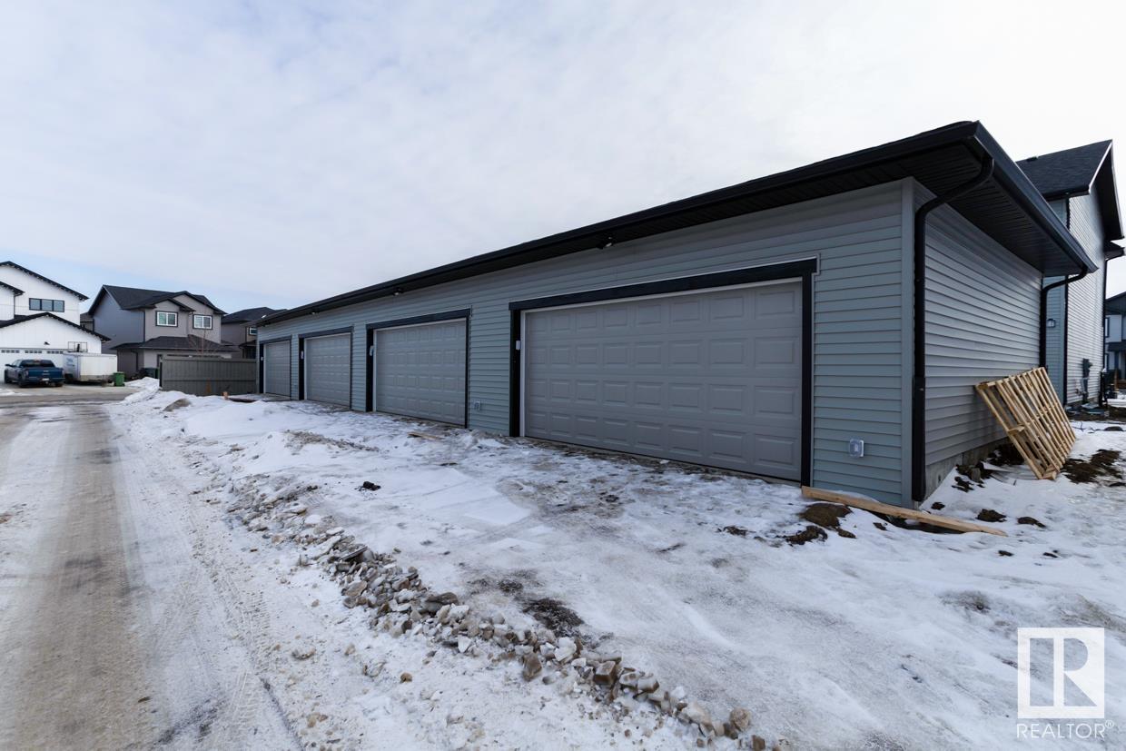 END UNIT! NO CONDO FEES! Attached Single Family Home. This is Look Master Builder Edmonton newest build to Ruisseau. This 2-story home has 1320 sqft with 3 bedrooms, 2.5 baths and a detached double garage (22x22). This main floor has an open concept; large kitchen/eating nook that features; stone counters, an island with an eating bar, full height herringbone backsplash, & appliance credit. Living room is large and is great for entertaining, features a linear electric fireplace with mantel. Upstairs you will find a large primary master bedroom with an walk-in closet/en-suite, 2 more bedrooms, a 4-piece bathroom, & laundry room complete the second level. Other features include; 10 x 10/76rear concrete patio INCLUDED, landscaping INCLUDED, Stone counters throughout, 9 ceilings on the main floor, double drywall on common wall, HE furnace, and built-ins. (id:22211)