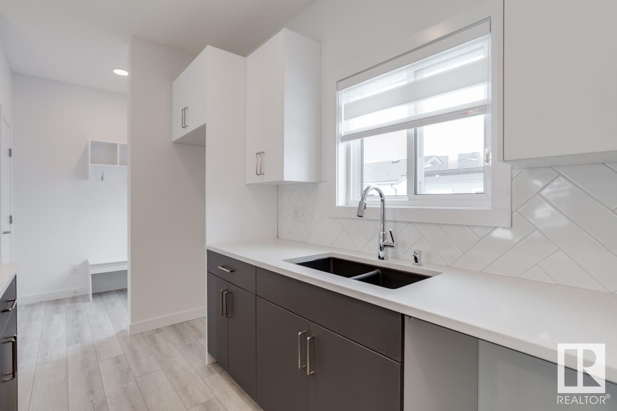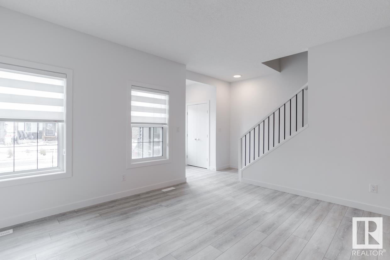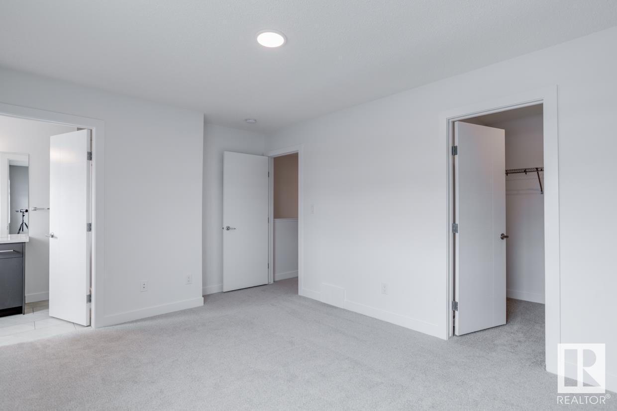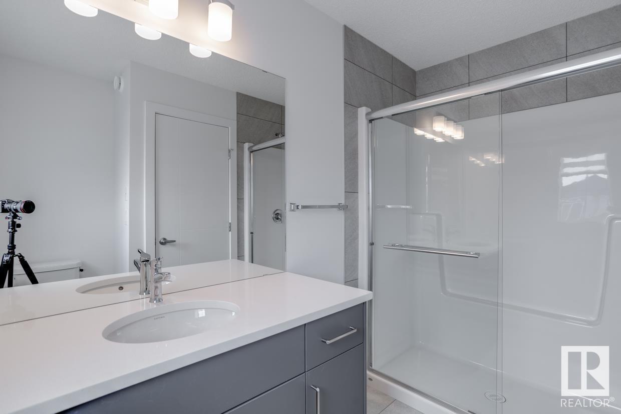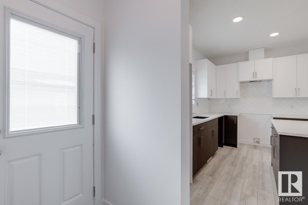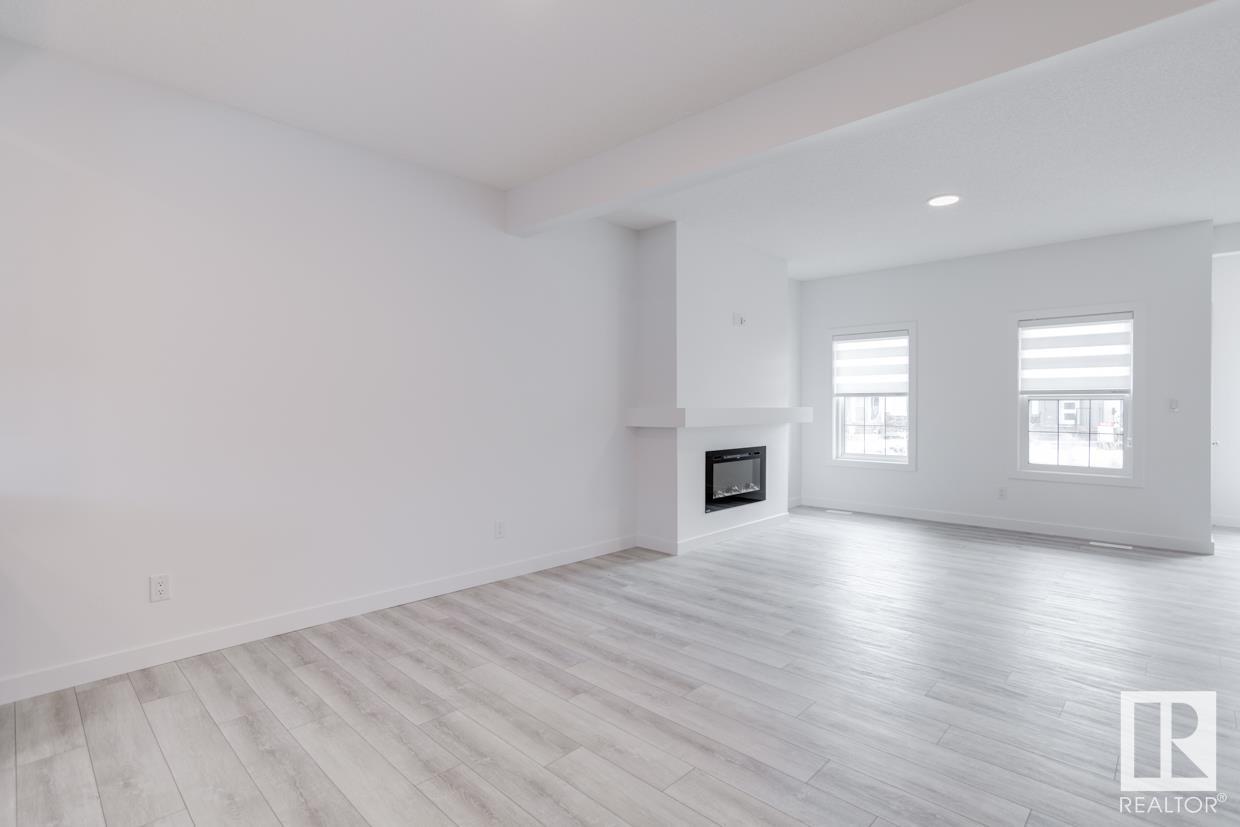 END UNIT! NO CONDO FEES! Attached Single Family Home. This is Look Master Builder Edmonton newest build to Ruisseau. This 2-story home has 1320 sqft with 3 bedrooms, 2.5 baths and a detached double garage (22x22). This main floor has an open concept; large kitchen/eating nook that features; stone counters, an island with an eating bar, full height herringbone backsplash, & appliance credit. Living room is large and is great for entertaining, features a linear electric fireplace with mantel. Upstairs you will find a large primary master bedroom with an walk-in closet/en-suite, 2 more bedrooms, a 4-piece bathroom, & laundry room complete the second level. Other features include; 10 x 10/76rear concrete patio INCLUDED, landscaping INCLUDED, Stone counters throughout, 9 ceilings on the main floor, double drywall on common wall, HE furnace, and built-ins. (id:22211)