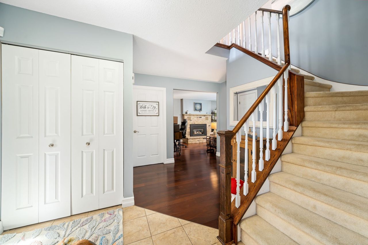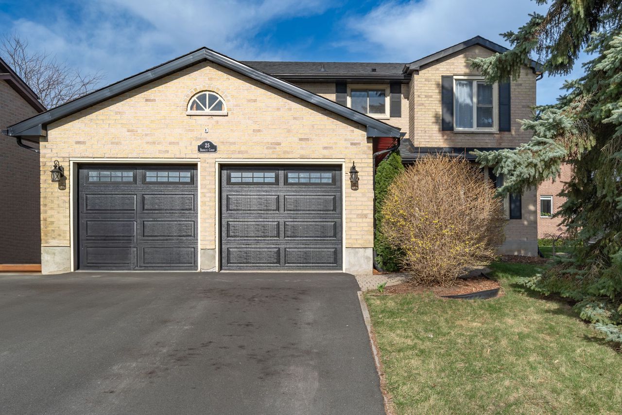 Welcome/Bienvenue to 25 Brimley Court, Belleville. Solid two-storey brick home located in one of Belleville's most sought-after neighbourhoods. Upon entering, you're greeted by an elegant staircase leading to the upper level. The main floor features a convenient powder room, a laundry room with outdoor access, a formal living room with a gas fireplace, and a spacious patio door opening onto the back deck. The kitchen includes a space for cozy breakfast nook set beneath expansive windows overlooking the backyard, and flows seamlessly into the formal dining room and a second living area. Upstairs, you'll find three bedrooms, a full bathroom, and a generous primary bedroom complete with an ensuite bath, walk-in closet, and additional pantry closet. The partially finished basement offers a rec room with new flooring, storage area, and a large unfinished space ideal for extra bedrooms, a workshop, or additional storage, with all mechanicals easily accessible. Not to forget the attached 2 car garage and the fenced in backyard. This home is ideally suited for large families seeking space and comfort in a prime Belleville location. Could it be your/Est-ce que ca pourrait etre votre Home Sweet Home?
