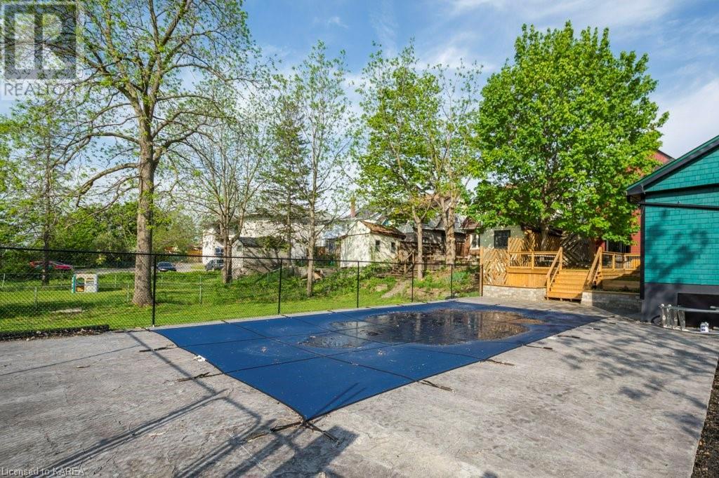 This newly renovated 2 Storey home in the heart of Belleville along the Moira River has received many improvements. It now has an open concept main floor with a new kitchen, new kitchen window, new tile and hardwood flooring on the main level, an additional main floor 2 piece powder room, LED potlights, enlarged primary bedroom, freshly painted, new siding on house and garage, garage renovated, new lining in the pool with new stamped concrete area and newly landscaped. The garage is an oversized single car garage that fits two cars. Close to walking trails, library, shopping and city bus route. (id:22211)