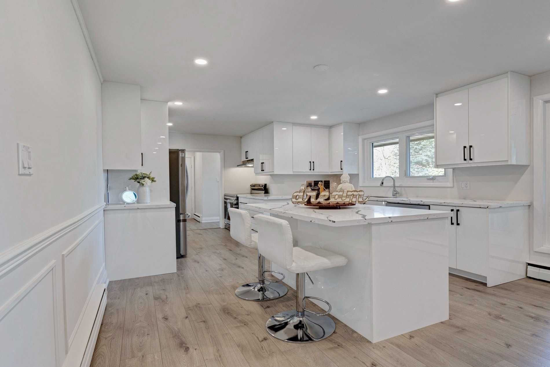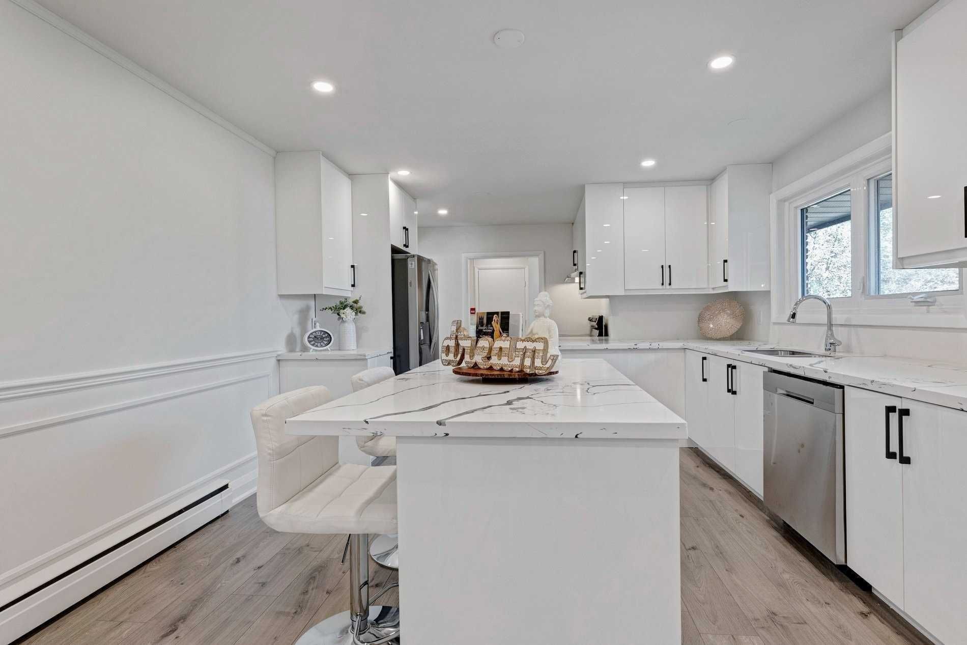 Wow!! Come Check This One!! Upper Level Only!! Upgraded Corner Lot Detached With Lot Of Natural Light!! This Beautiful Gem Welcome You With Huge Living Room With Picture Window/Stoned Gas Fireplace/Por Lights, Nice Size Dinning Room, New Chef's Dream Kitchen With Granite Counter Tops/ Stainless Steels Appliances/ Centre Island Open To Family Room With Second Fireplace To Enjoy With Your Family, Master Bedroom With Closet/2Pc Bathroom, Other 2 Bedrooms Are Good Size As Well, Huge Back With Deck And Covered Area. Perfect For Boat House, Double Driveway With Ample Parking.Brand New Stainless Steels Appliances Includes Fridge, Flat Stove, Rangehood, Built In Dishwasher, White Washer And Dryer. Perfect For Large Family. Close To Public Transit, Via Rail Station, Public School, Ymca & Much More.