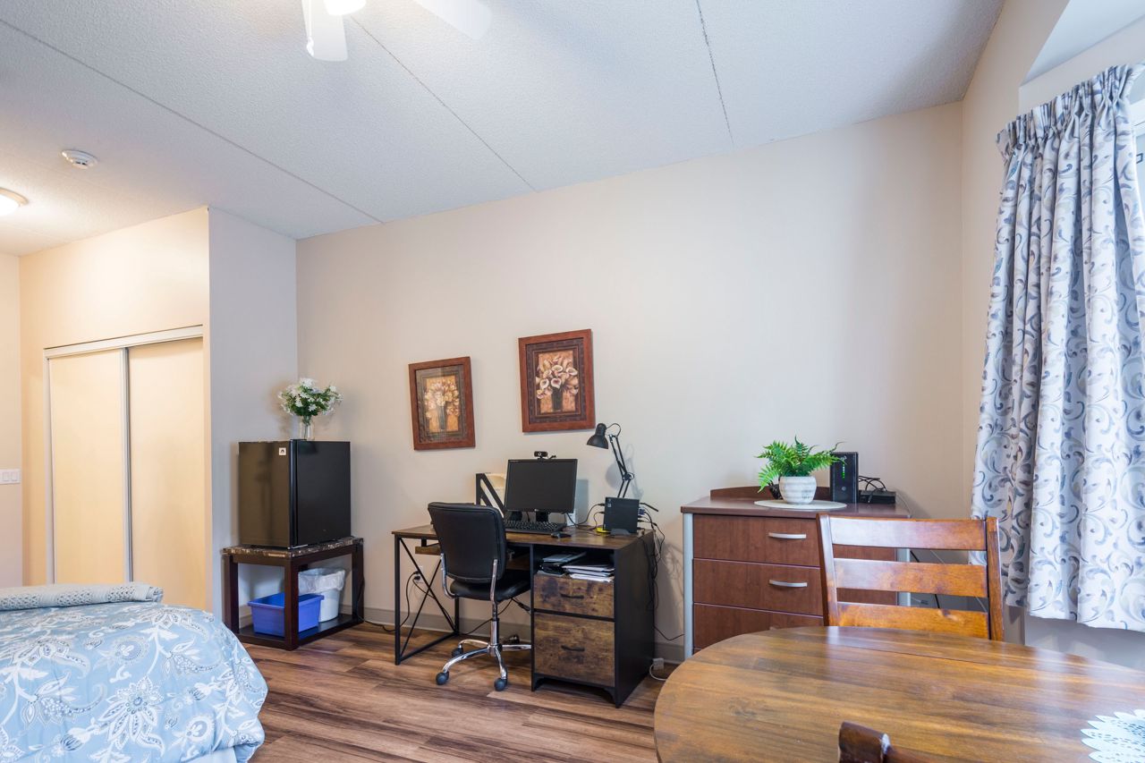 Welcome to your new home in an esteemed retirement community! This charming bachelor apartment offers a blend of comfort and convenience, perfect for a low-maintenance lifestyle. The open and inviting layout of the apartment maximizes both comfort and functionality, providing a cozy living area ideal for relaxation. Included in your lease are a variety of services designed to enhance your daily life. Enjoy professional housekeeping once a week, ensuring a clean and welcoming environment. Delight in three nutritious meals each day. Fresh linens and towels are provided regularly, so you always have what you need. A caring and attentive nurse is on staff to support your health and wellness, and a range of daily activities is available to keep you engaged and entertained. This community offers a supportive environment where you can maintain your independence while enjoying a full suite of amenities and services.