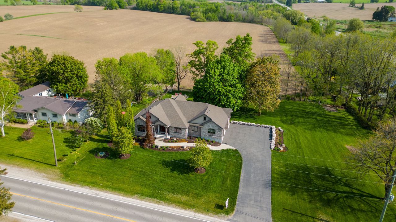 29 Washington St E is a beautiful custom-built sprawling bungalow located in the Village of Washington, Ontario. It offers the perfect opportunity to move just outside of the city while still being conveniently located within 30 mins of Waterloo. With its 3+1 bedrms, 3 full bathrms, & over 3000 sqft of living space, this home provides ample room for comfortable living. Situated on just under an acre lot, the property backs onto a peaceful farm field, offering a serene & picturesque setting. One of the highlights of the outdoor space is a custom-built fire pit. As you enter the home, you'll be greeted by a bright & open-concept layout. The living rm features vaulted ceilings & a stunning custom stack stone gas fp, creating a cozy & inviting atmosphere.The living room seamlessly flows into the kitchen & breakfast area, which boasts a walkout to the upper deck. The custom millwork throughout the main level adds a touch of elegance. The partially finished provides additional living space.Offering the best of both worlds, combining conveniences w/the serenity of country life. Whether you're looking to escape the hustle & bustle or seeking a peaceful retreat, still being within easy reach of amenities & city attractions.