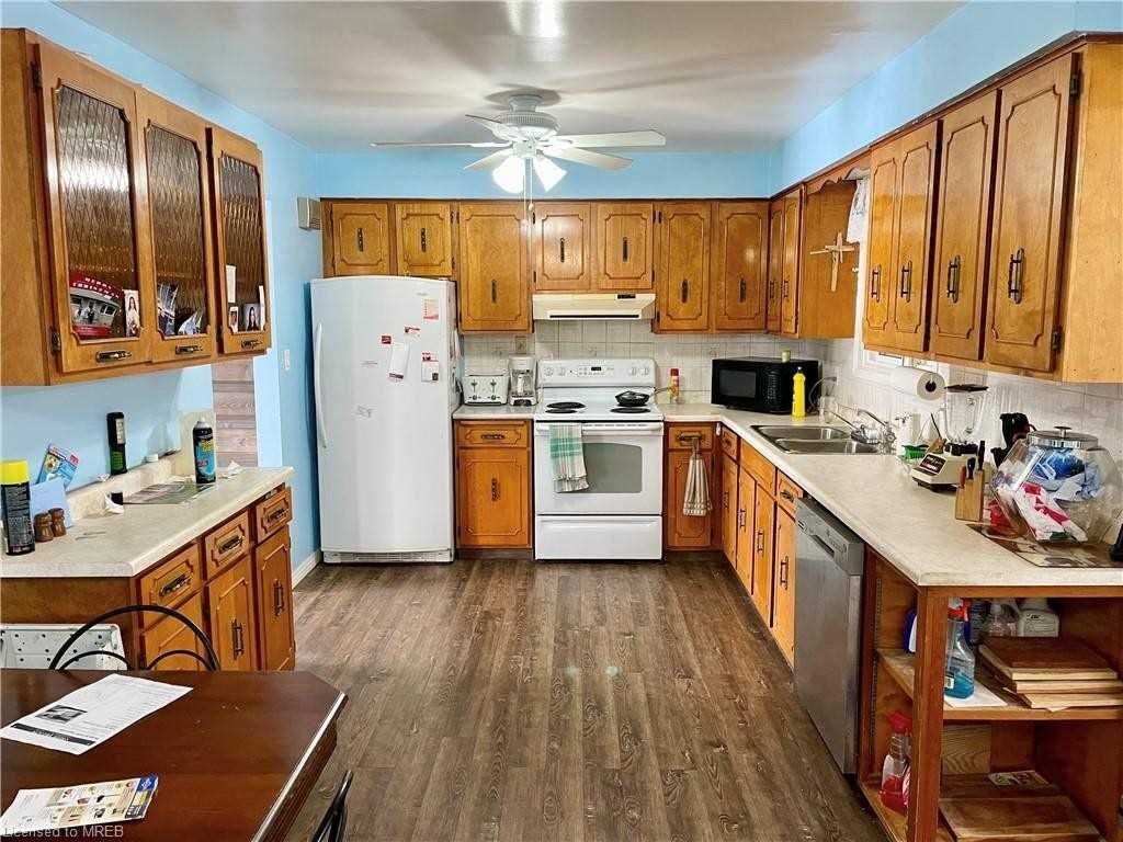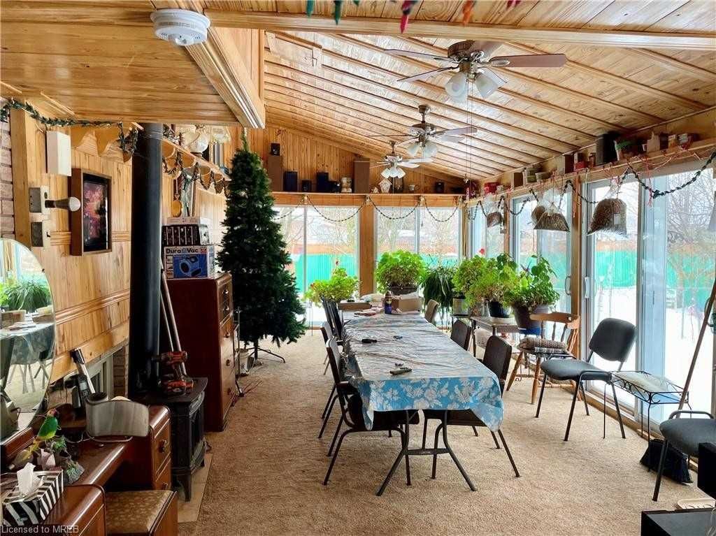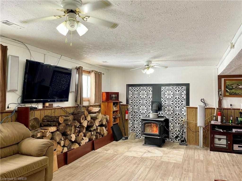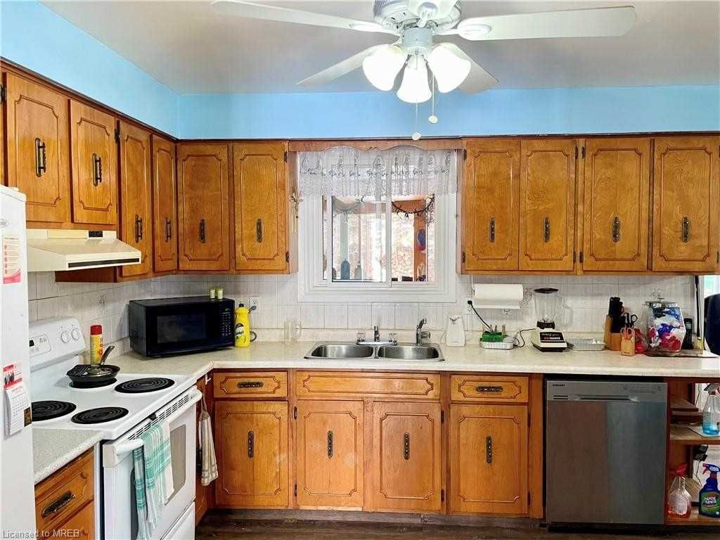 Well Kept Home. Features A Large Lot With 10 Car Driveway And A Double Car Garage With 220 Volt Outlet. There Are About 25 Mature Fruit Trees, A Large Heated Solarium, Oversized Kitchen And A Solarium Style Dining Room. There Is A Large Rec Room With Wood Burning Stove And A Full Washroom. The Basement Is Finished With An Additional Bedroom. Nicely Kept Home.Includes Fridge, Stove, Washer & Gas Dryer, 100-Amp Circuit Breaker, Cac, Garage Door Opener, And Ceiling Fan.