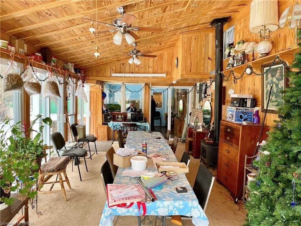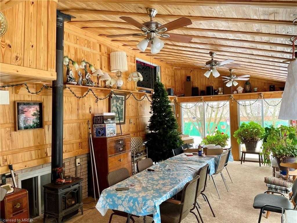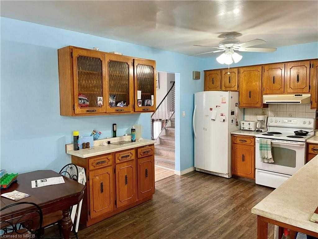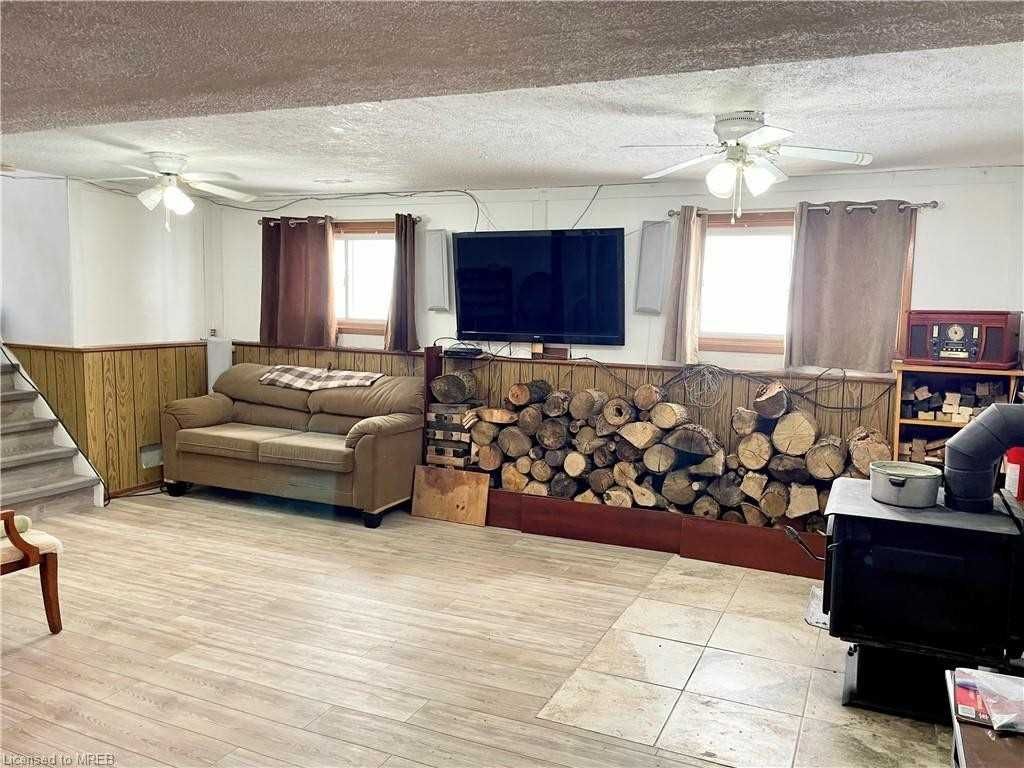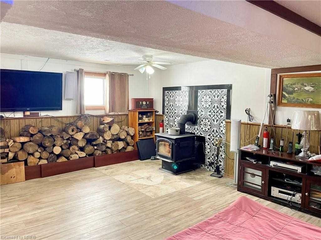 Well Kept Home. Features A Large Lot With 10 Car Driveway And A Double Car Garage With 220 Volt Outlet. There Are About 25 Mature Fruit Trees, A Large Heated Solarium, Oversized Kitchen And A Solarium Style Dining Room. There Is A Large Rec Room With Wood Burning Stove And A Full Washroom. The Basement Is Finished With An Additional Bedroom. Nicely Kept Home.Includes Fridge, Stove, Washer & Gas Dryer, 100-Amp Circuit Breaker, Cac, Garage Door Opener, And Ceiling Fan.
