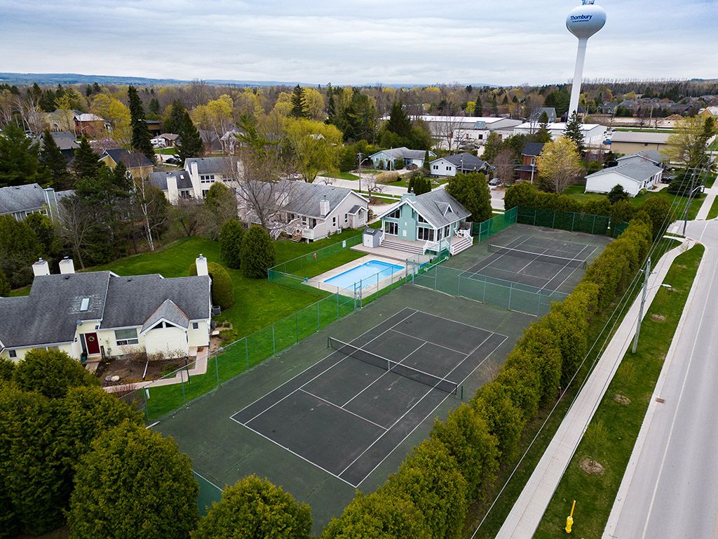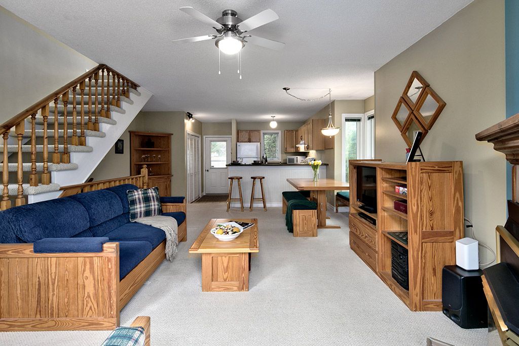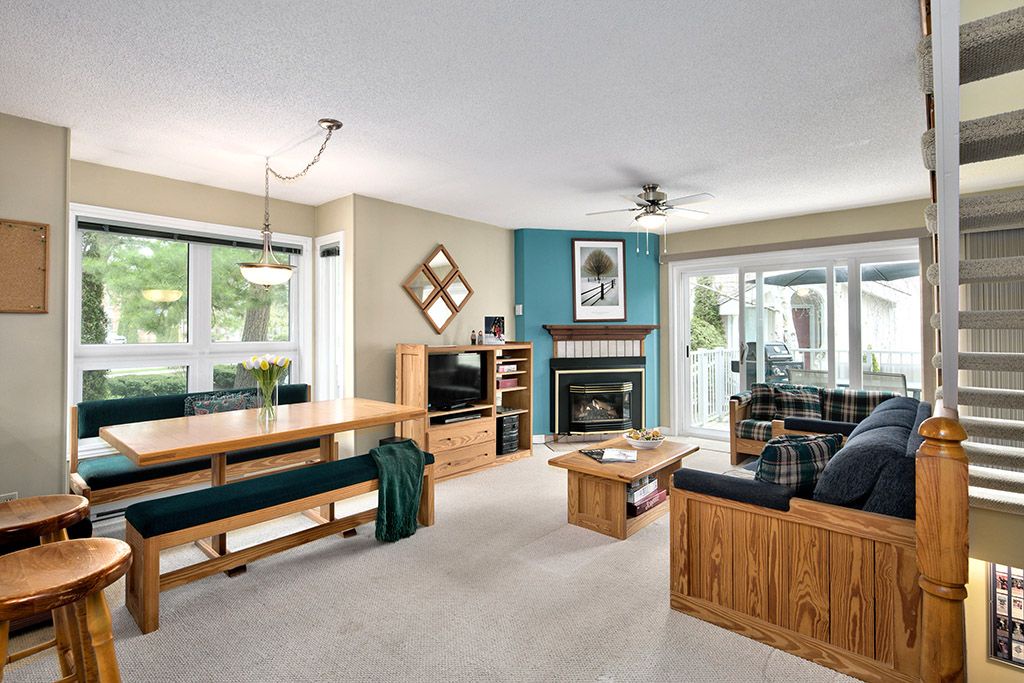 Charming End Unit Townhouse in Rankins Landing Thornbury- Pool season is here-Enjoy this resort like life style including out door pool, tennis courts and welcoming clubhouse. This Bright and sunny end-unit townhouse in the sought-after Rankins Landing community offers the perfect blend of lifestyle and location ideal for full-time living, a weekend ski retreat, or a peaceful year-round getaway. Step inside to a bright, open-concept main floor, where the living room, dining area, and kitchen flow effortlessly together anchored by a cozy fireplace for those après-ski evenings. Step outside to your spacious private balcony perfect for summer BBQs, morning coffee, or evening wine under the trees. With 2+1 generously sized bedrooms and 2 full bathrooms, there's plenty of space for family and guests. The finished lower level offers a versatile rec room and laundry area ideal for movie nights or storage after a day on the slopes or trails. All tucked into beautifully landscaped grounds surrounded by mature trees. Walkable to downtown Thornbury, where boutique shops, farm-to-table dining, cozy cafés, and the library await. Just minutes from Georgian Bays sparkling shores, the marina, scenic hiking and biking trails, wineries, apple orchards, and Blue Mountain skiing this is the lifestyle you've been dreaming of. Condo fees include: Common elements, Ground maintenance & landscaping, Property management, Cable TV & internet, Roof maintenance, Snow removal Whether you're looking for a permanent home, seasonal retreat, or investment opportunity this townhome delivers it all. Home comes fully furnished
