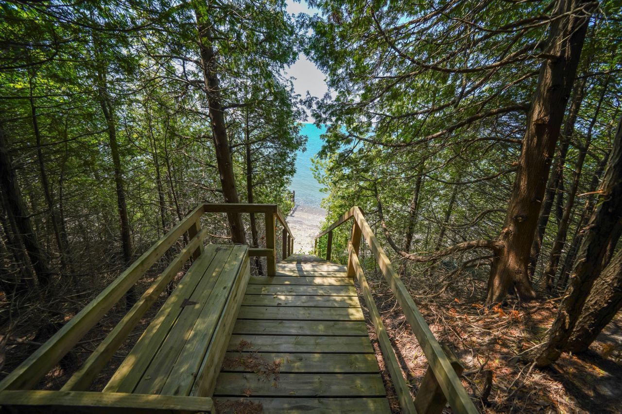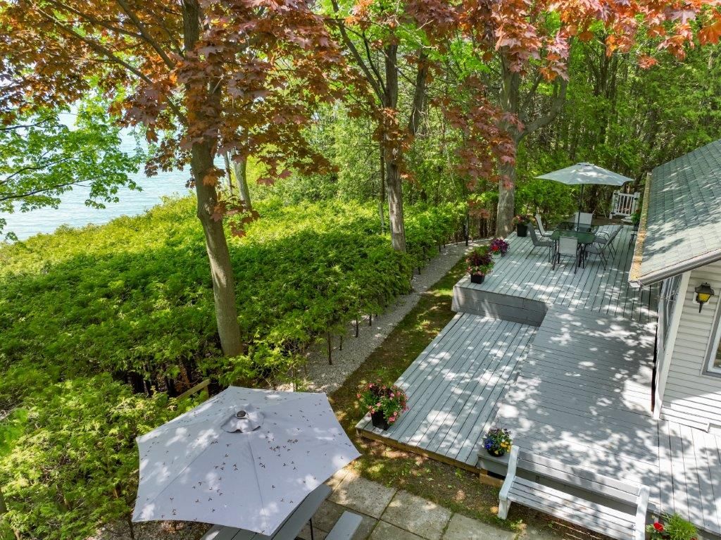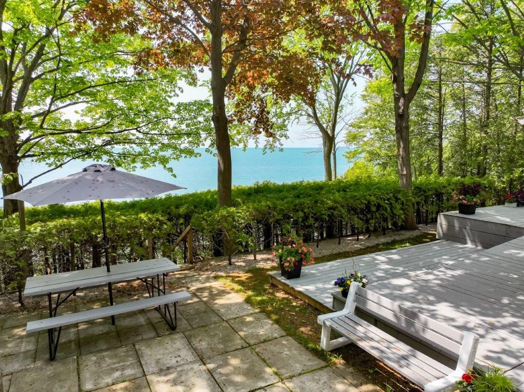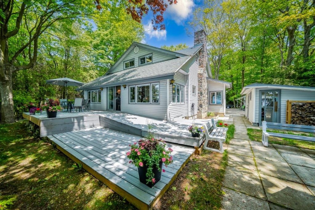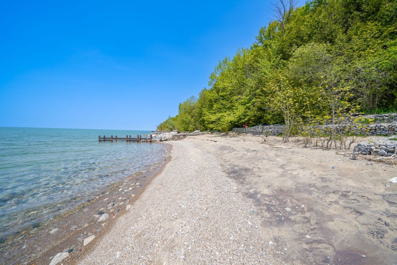 Spectacular sunsets, stunning views over Lake Huron on beautiful Sandy Bayfield beach. Sounds of waves, gentle on your mind. No other place you would rather be. Year-round well built, waterfront home, just over 1600 sq ft Original custom flr to ceiling stone fireplace complements the spacious living rm. The beautiful view of the Lake is seen from everywhere. Front porch family/sun room allows you to appreciate these special views. Huge second-floor loft area could easily be converted to two additional lrg bedrs & full en suite, now a wonderful great room just to gather. Imagine a full second floor balcony to add to this possible vision. Municipal gas for the furnace & municipal water + low taxes… Hard to beat that with waterfront homes. Easy living. Separate workshop with huge potential for a Bunky plus a bonus, full two bedr trailer for extra family & guest to use or just to tour around with. Would be an easy rent-able space. This place is perfect for many dreams to come true.Back up Generator. Wood burning insert. Gas furnace. Large two bedroom trailer. Newer washer and dryer. Upgraded windows. Outdoor stone fireplace. Septic pumped last year. Newer deck (only needs railing). (Kitchen appl as is) Satellite dish