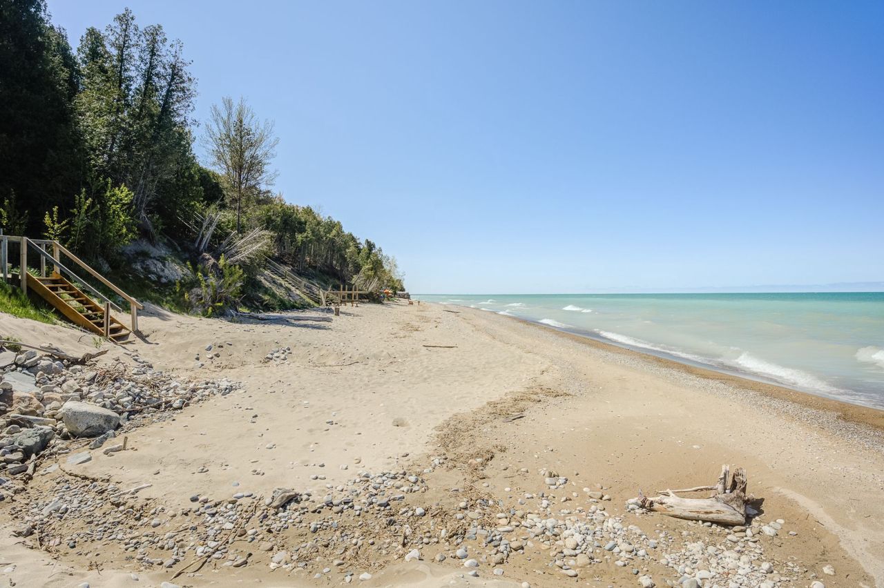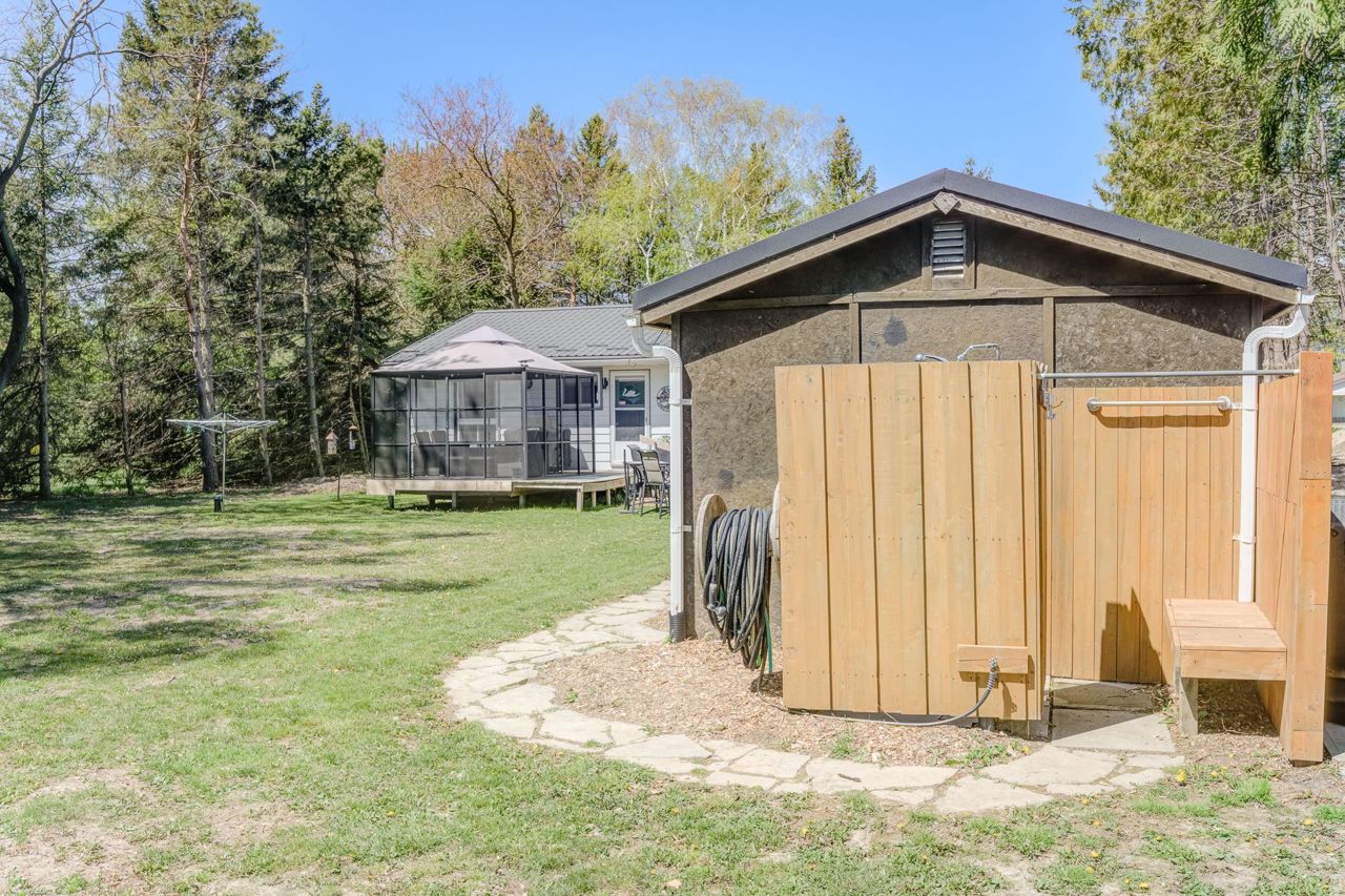Fantastic opportunity to own a beautiful, totally renovated, open concept, turn key cottage or home! Just move in!!! All furniture, shelving, lighting, window coverings etc are included! Situated in a perfect location, between Bayfield and Grand Bend, this stunning home is under a two minute walk from a lovely beach, complete with a gently sloping water access . Working remotely? Want a vacation home? This home is perfect, as it is ideal as a summer home, or year round living! Some updates include a new kitchen (2022) with gorgeous cabinets, counter-tops, soft-close drawers, convenient island and built-in stainless steel dishwasher and microwave. This freshly painted, maintenance free, gem, also has new and elegant light fixtures, 3 good sized bedrooms, and a recently renovated, stylish, contemporary bathroom, as well as luxury vinyl flooring throughout. Other upgrades include newer windows (2016) and a steel roof (2021). Entertain friends on the spacious front or rear deck or gazebo.Furniture, Lights, Fans, Shelves, Gazebo, Window Coverings,