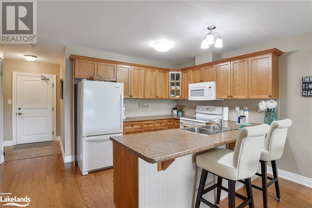 Welcome to 10A Kimberley Street, Unit 403! This beautiful condo is perfect for anyone looking for a bright and comfortable downtown living experience. With bright open concept living space, this one-bedroom plus den condo offers plenty of room to call home.The unit features pristine condition hardwood floors, a generous kitchen and living area, and stunning views from the 4th floor. You'll also have access to a variety of amenities including an underground parking space, a party room, gym, car wash, and workshop.This convienient condo is located in the heart of downtown Bracebridge, a wonderful community with plenty of shops, restaurants, and entertainment options at your fingertips. The building is well maintained and features secure entry with an elevator for easy access. Don't miss out on this opportunity to own at Legends, and get living the easy life! Schedule your showing today and make this condo your new home. (id:22211)
